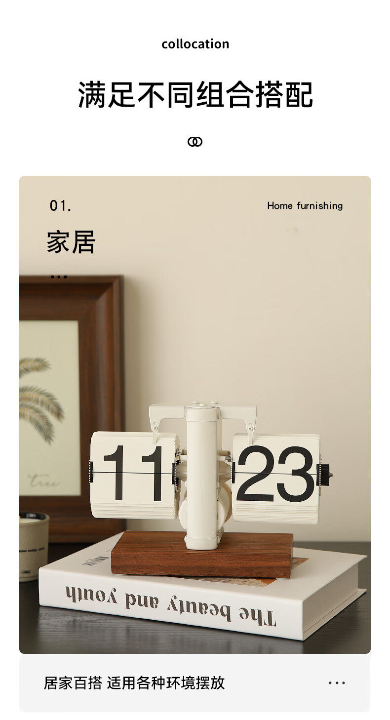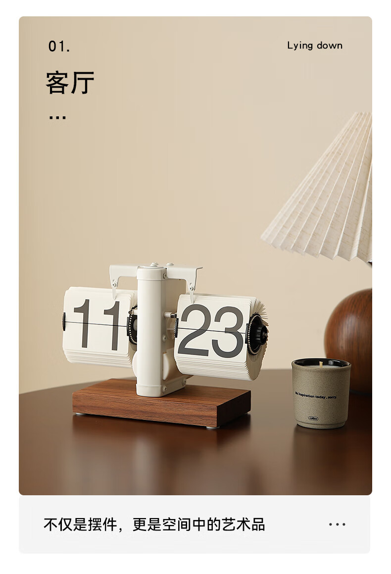 Yuli automatic page-turning clock desktop ornaments retro mechanical watch pendulum table-style technological sense digital electronic clock ornaments matte blue wood base clock