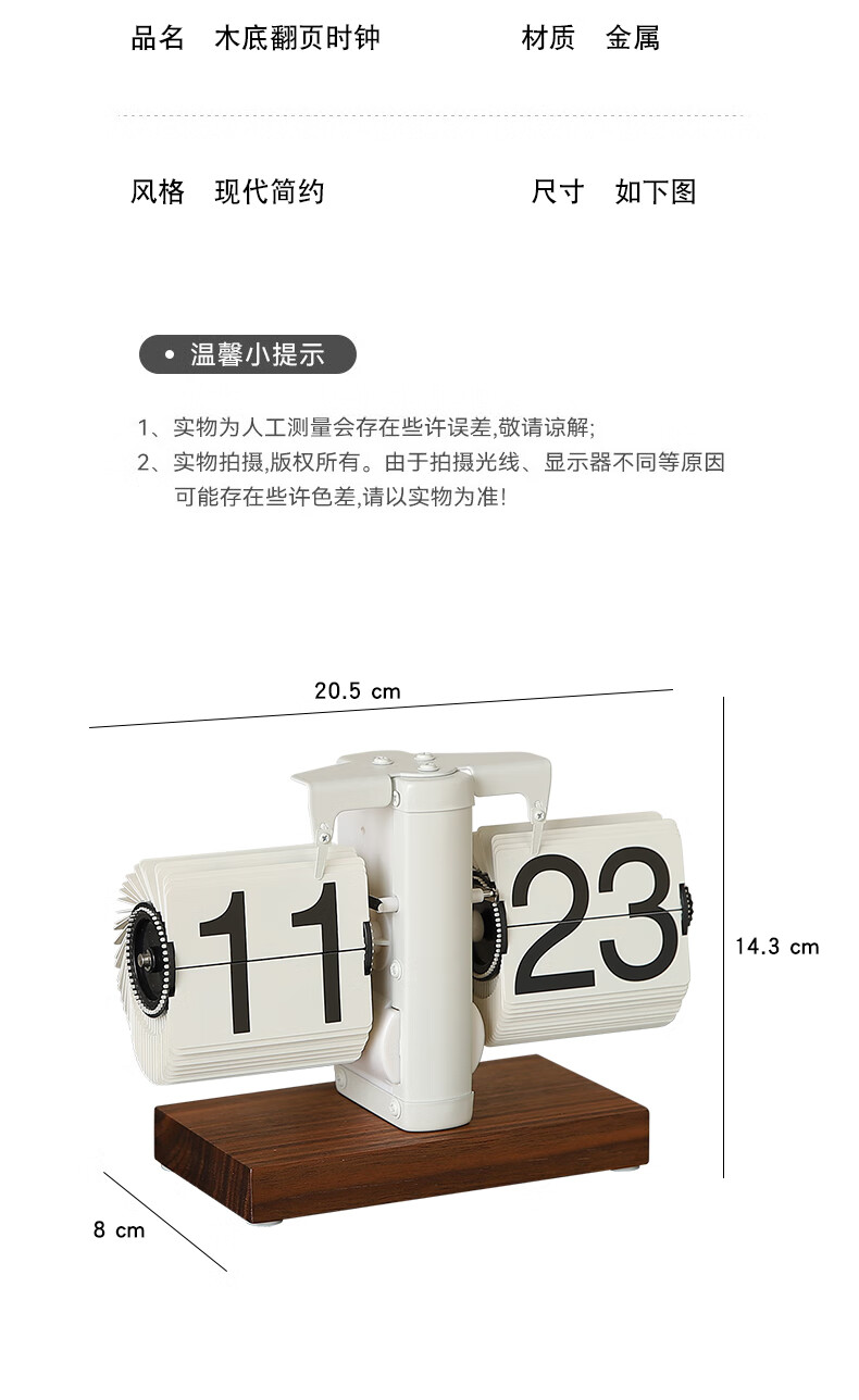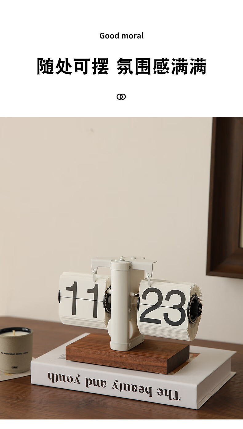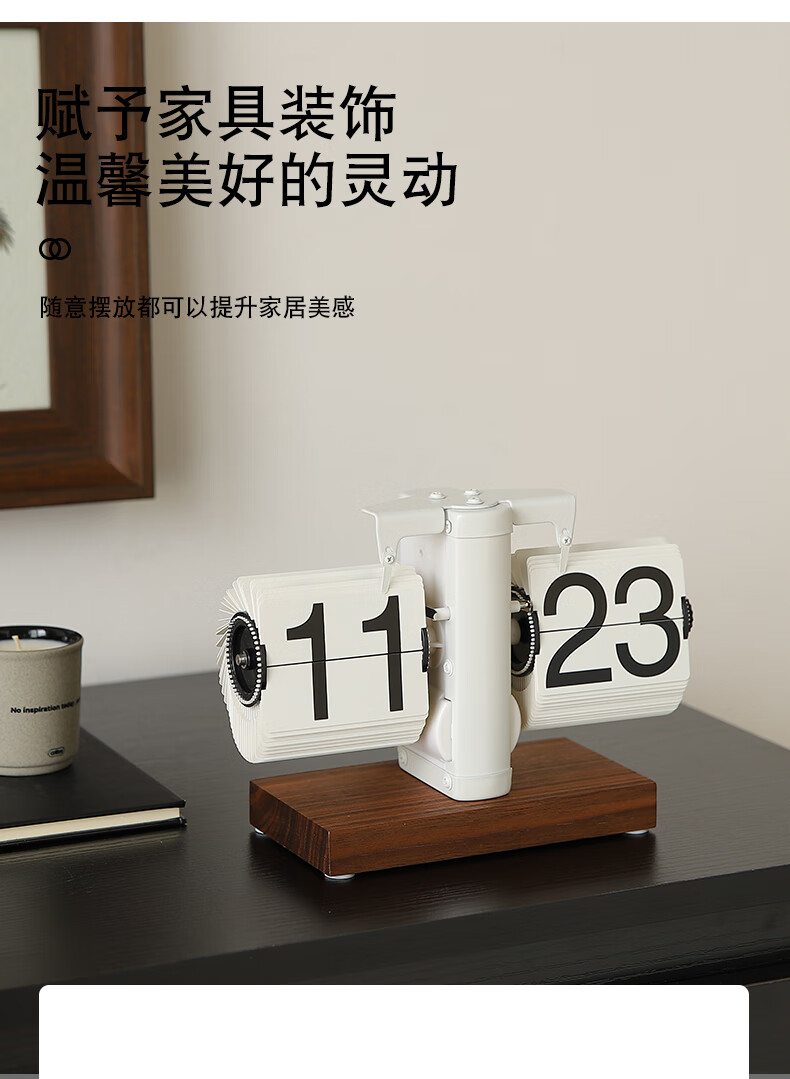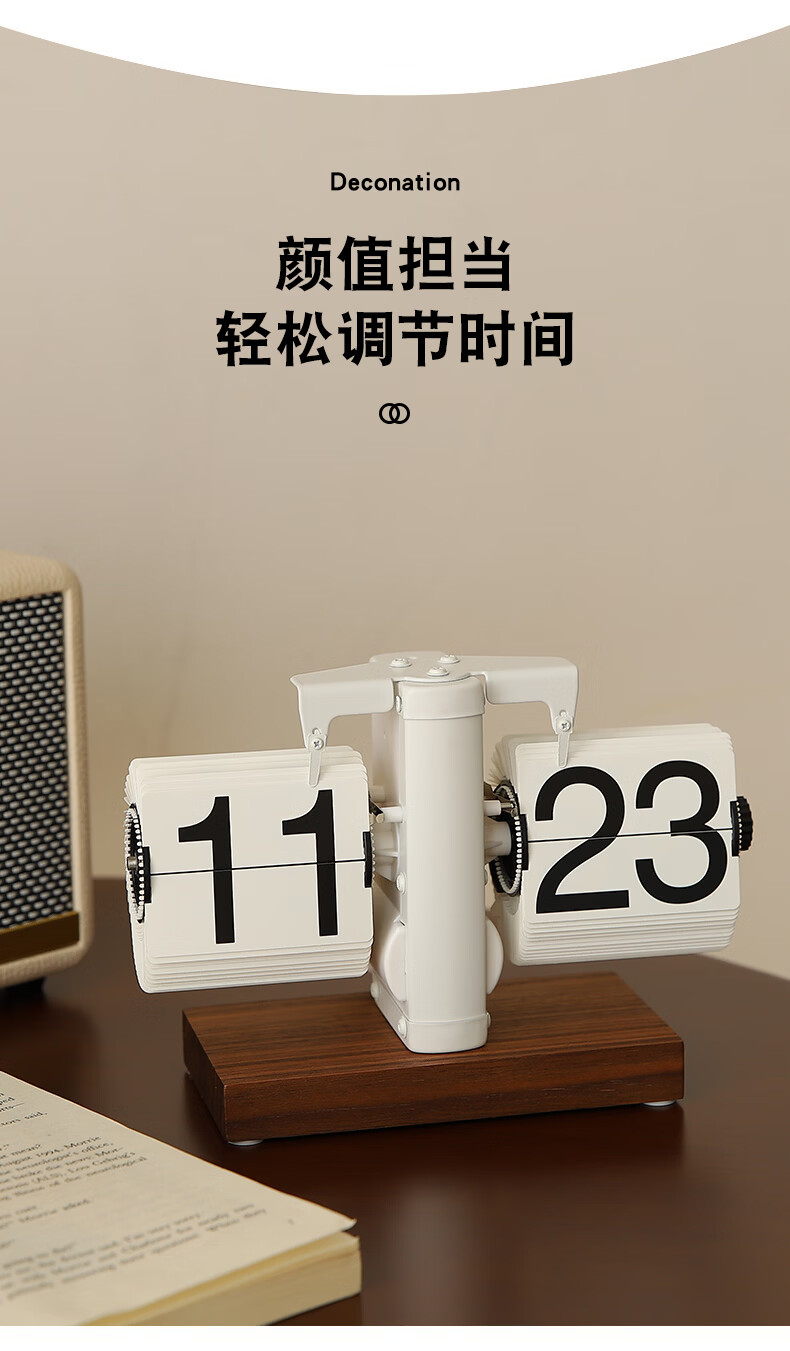 Yuli ancient mechanical automatic page turning clock desktop ornaments table pendulum table clock living room TV cabinet light luxury decoration matte white wood base clock