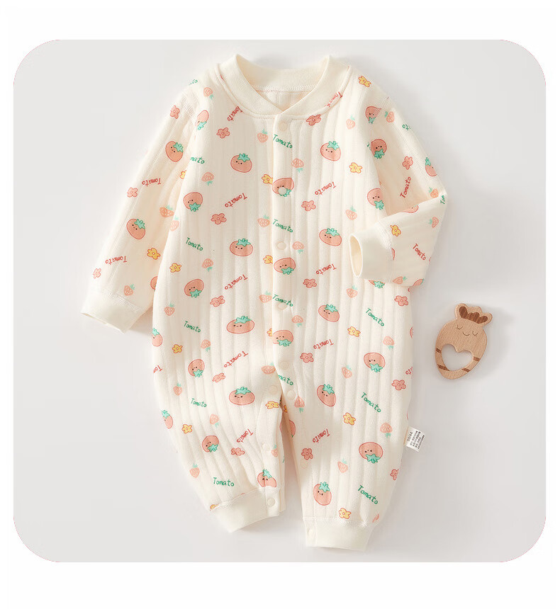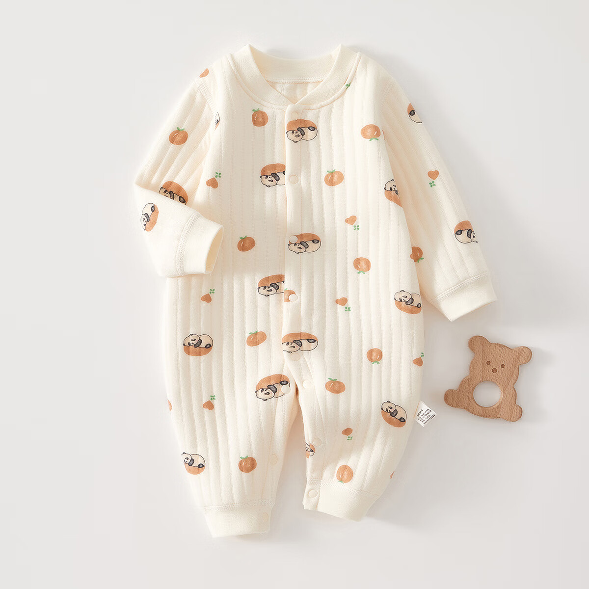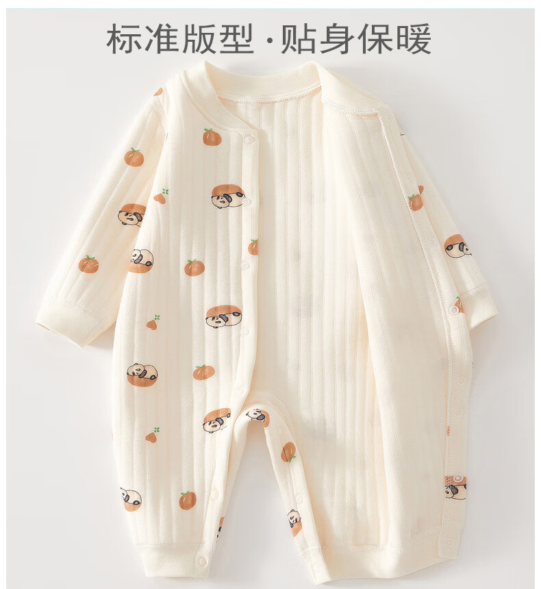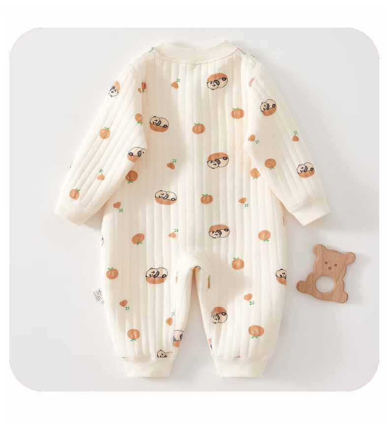 AMI newborn baby warm jumpsuit autumn and winter quilted romper pure cotton thickened pajamas baby thin cotton clothes all-over printed orange panda warm jumpsuit 59cm