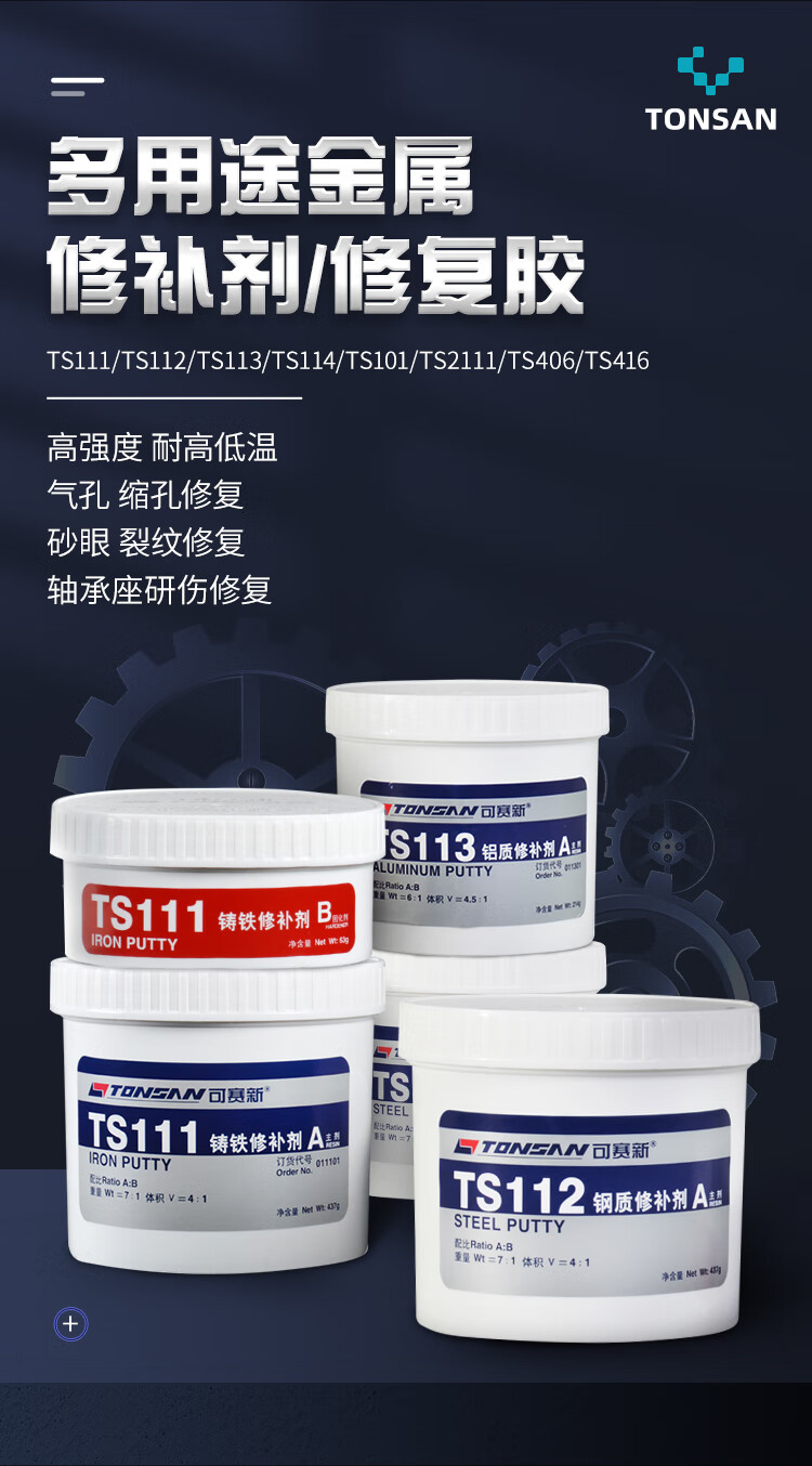 Kesaixin TS111 iron TS112 steel 113 aluminum industrial casting 114 copper high temperature resistant metal repair agent TS406 corrosion resistant coating 500g