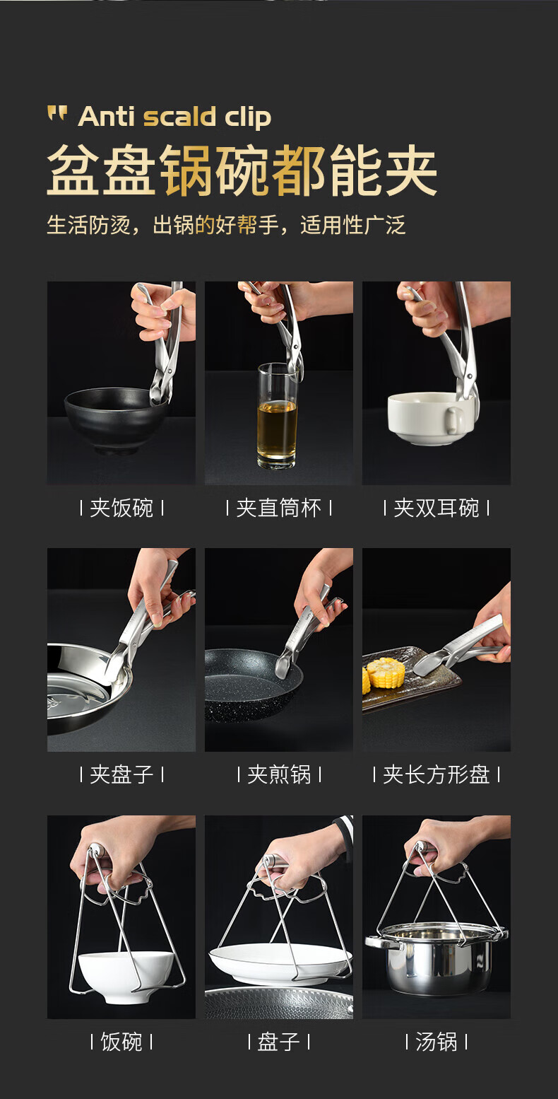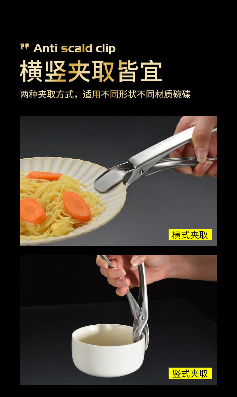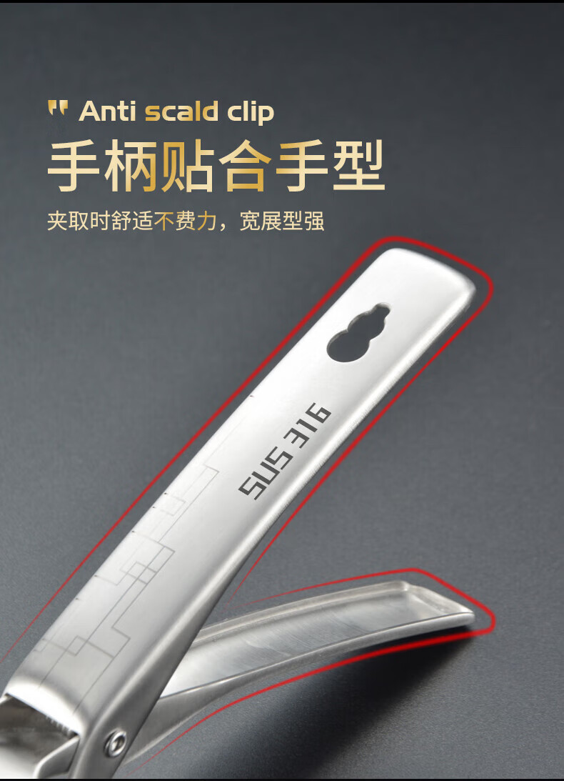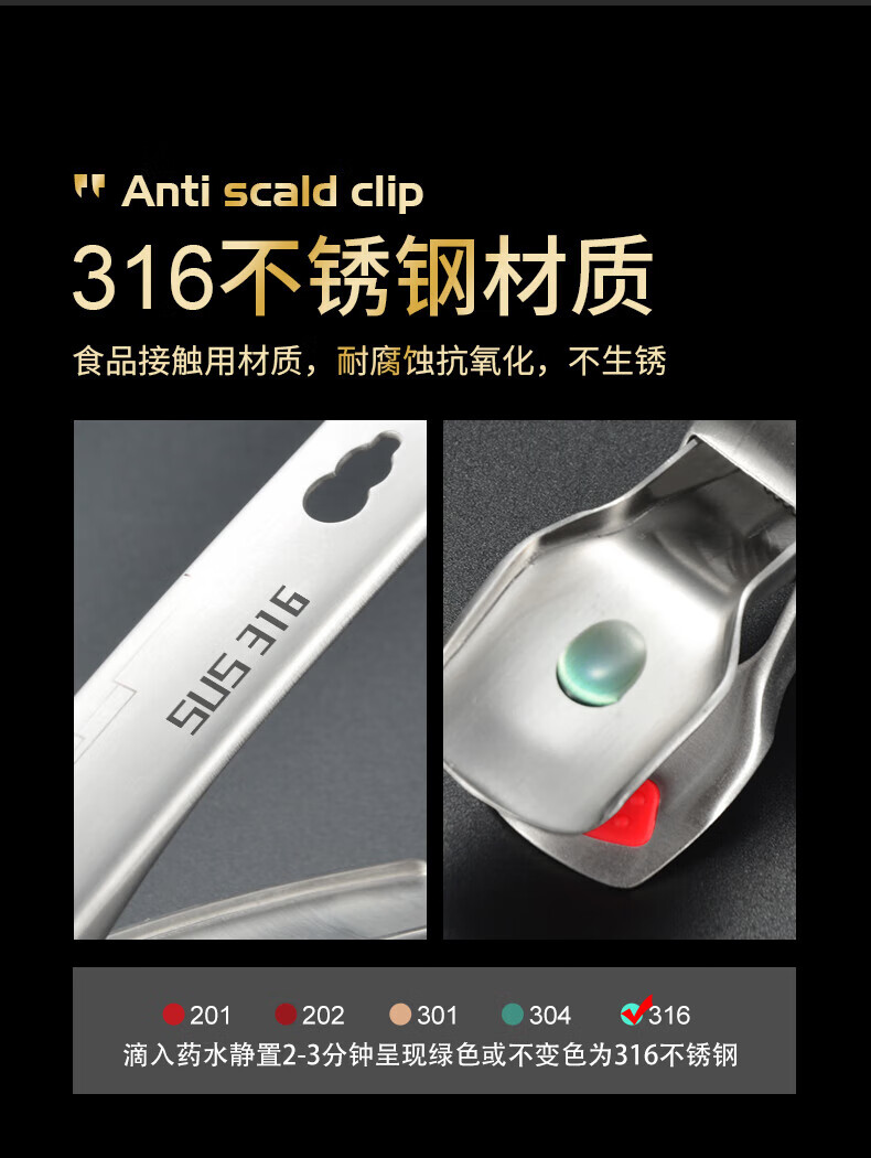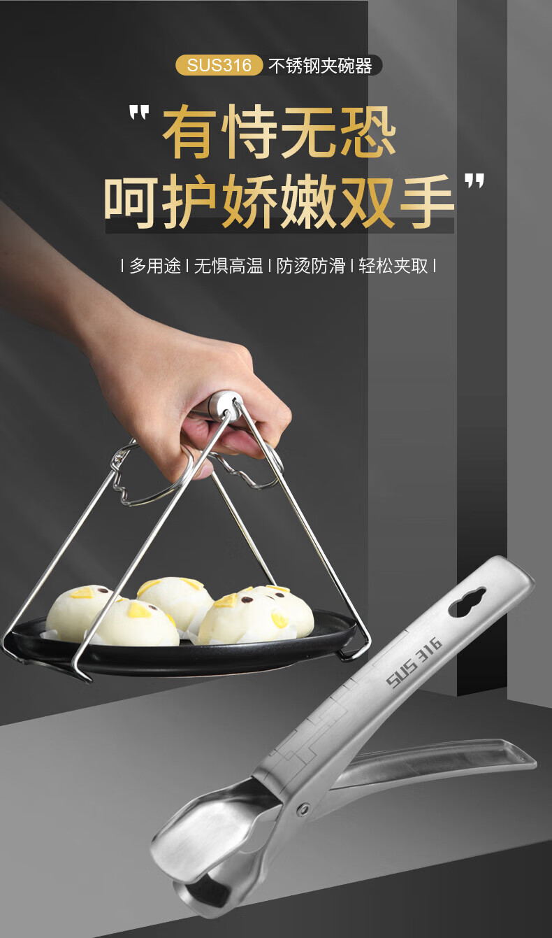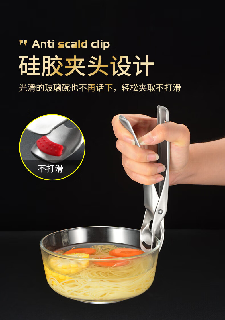 Pupan 316 stainless steel anti-scalding bowl clamp, silicone anti-slip plate clamp, steaming vegetable steamer plate clamp, black anti-slip 316 stainless steel bowl clamp, all steel