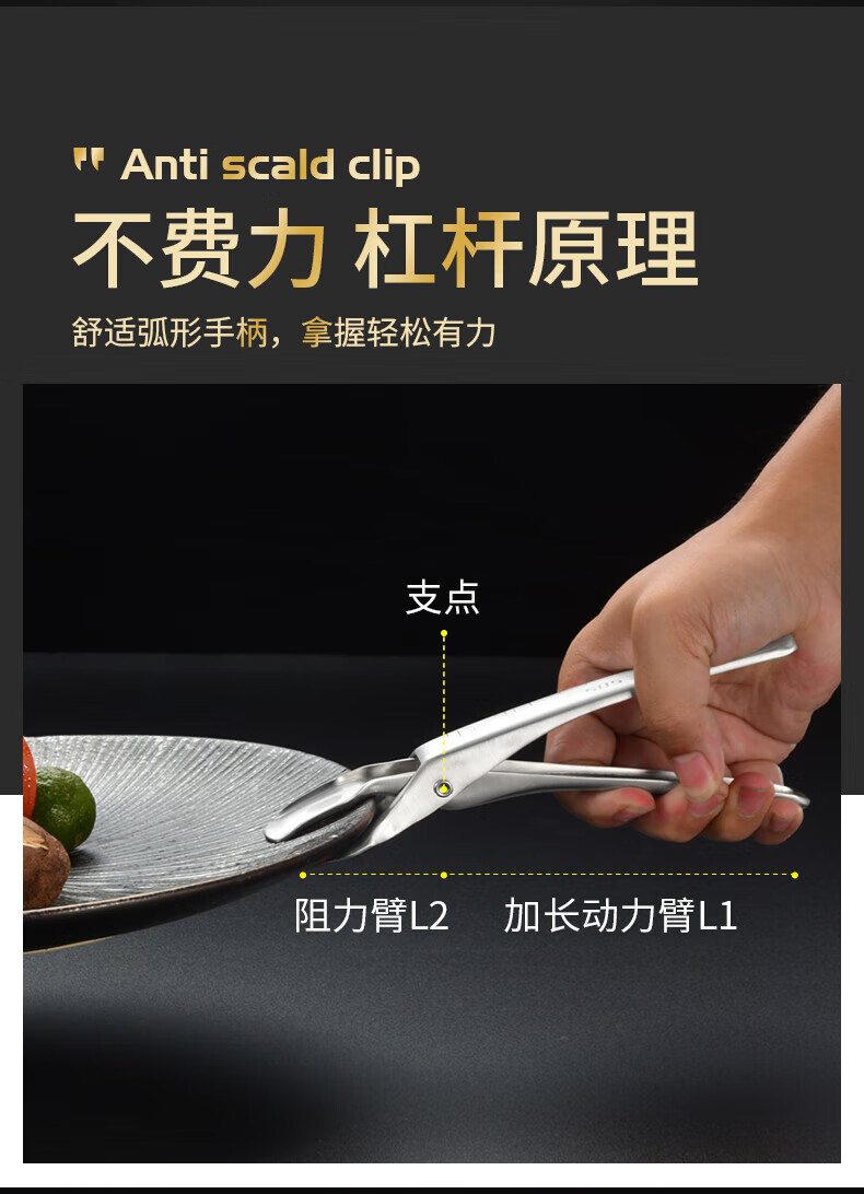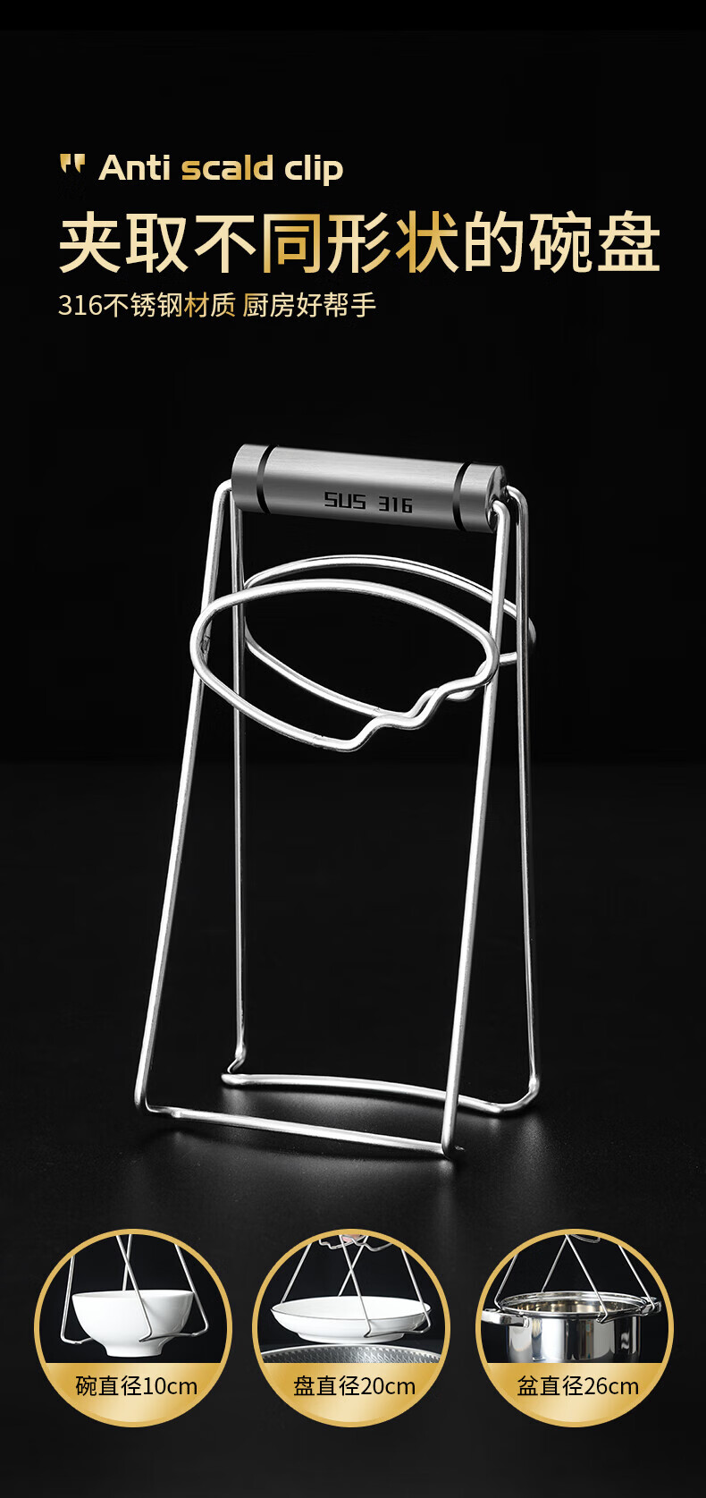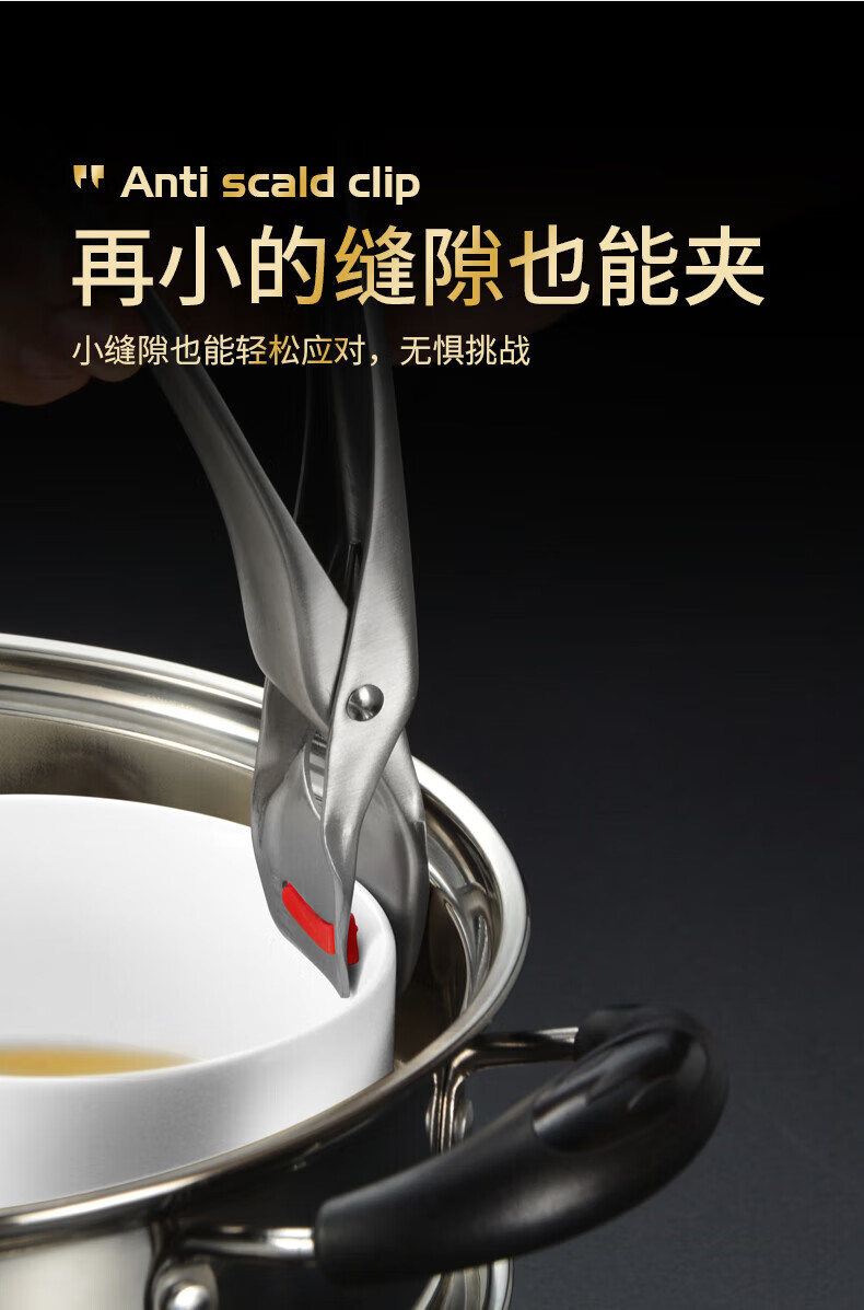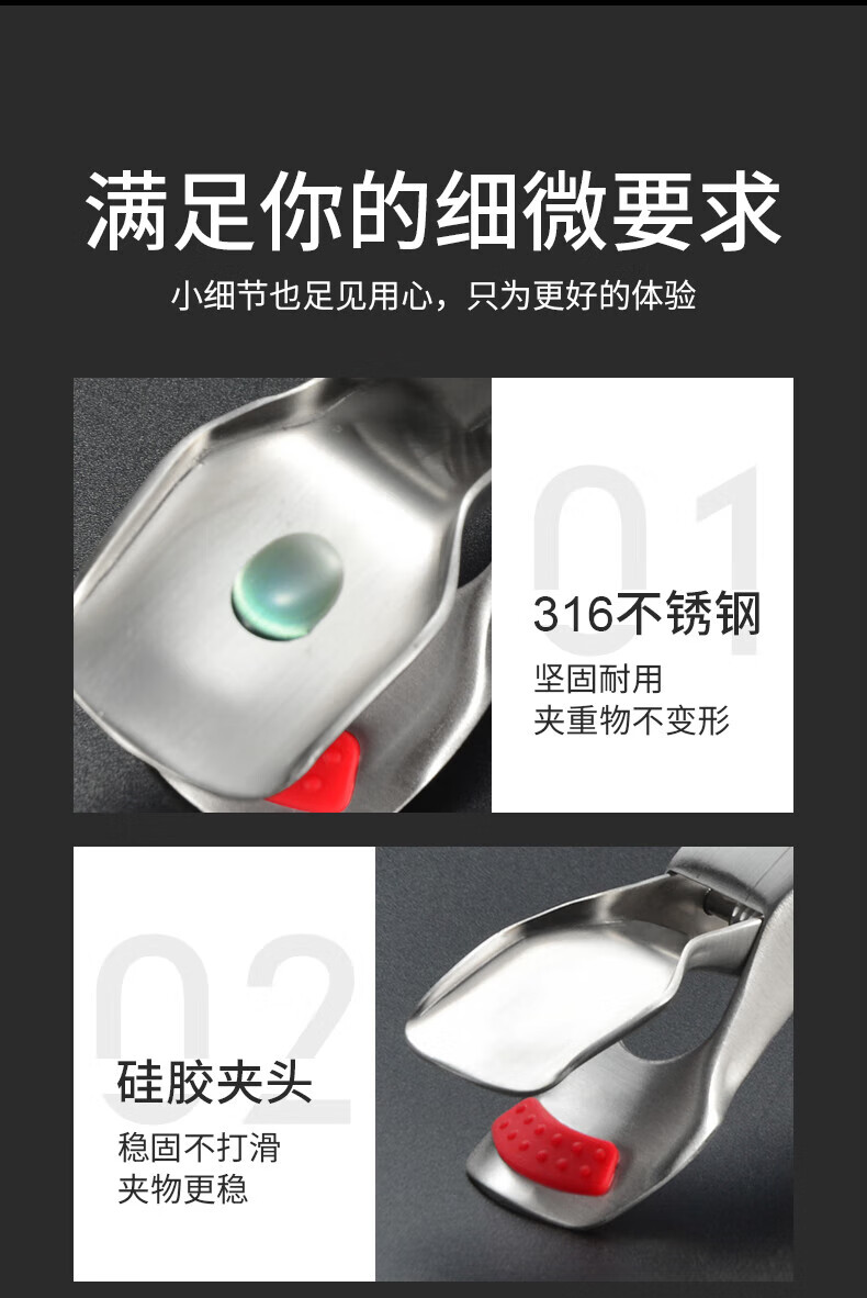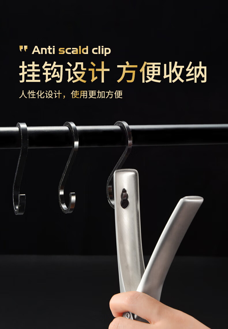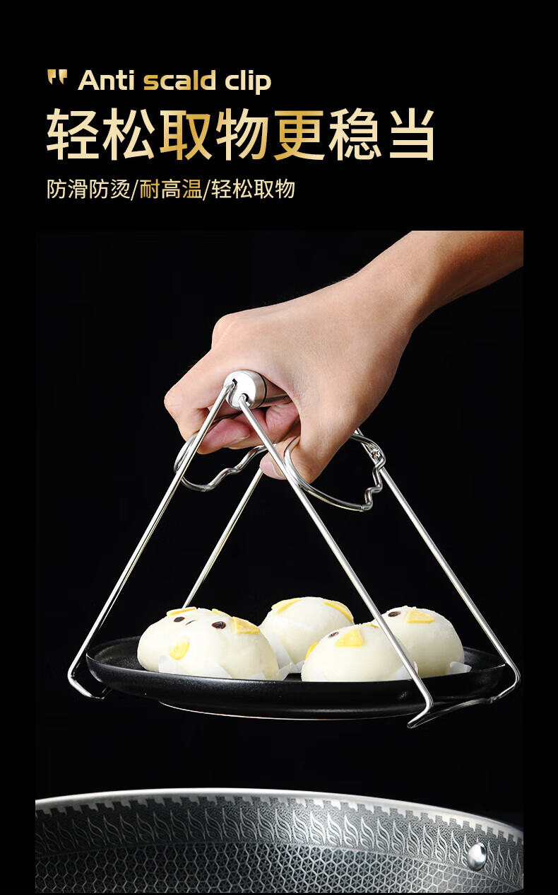 Pupan 316 stainless steel anti-scalding bowl clamp, silicone anti-slip plate clamp, steaming vegetable steamer plate clamp, black anti-slip 316 stainless steel bowl clamp, all steel