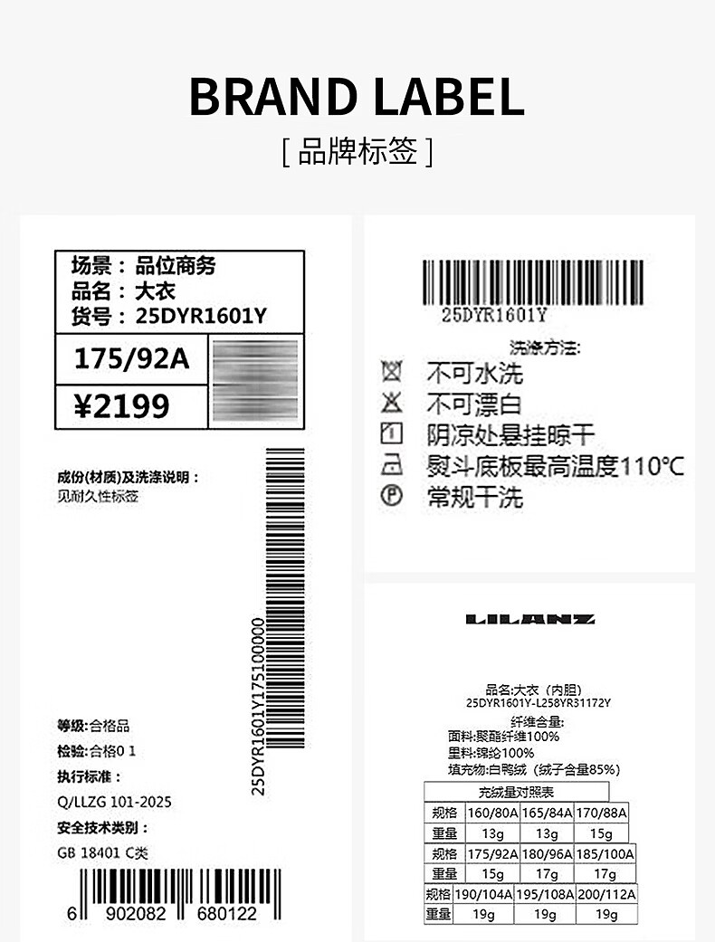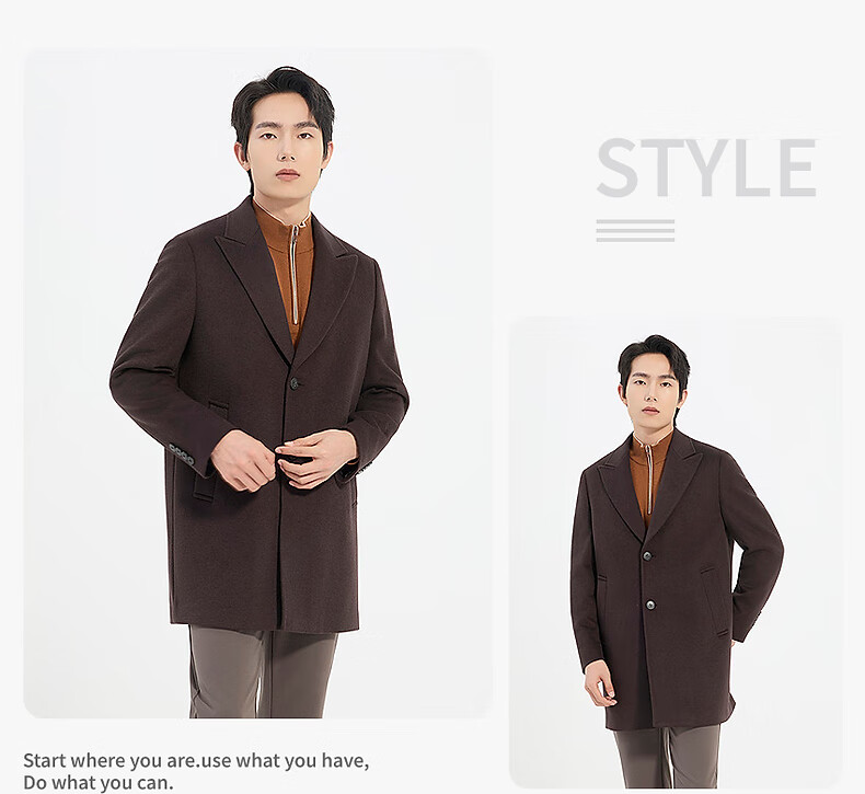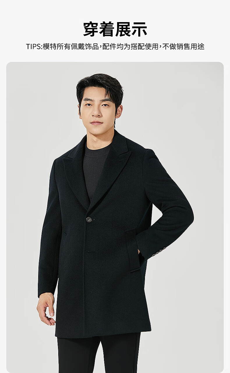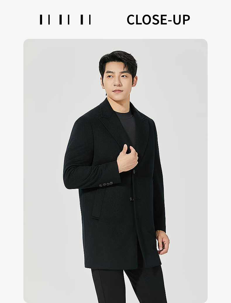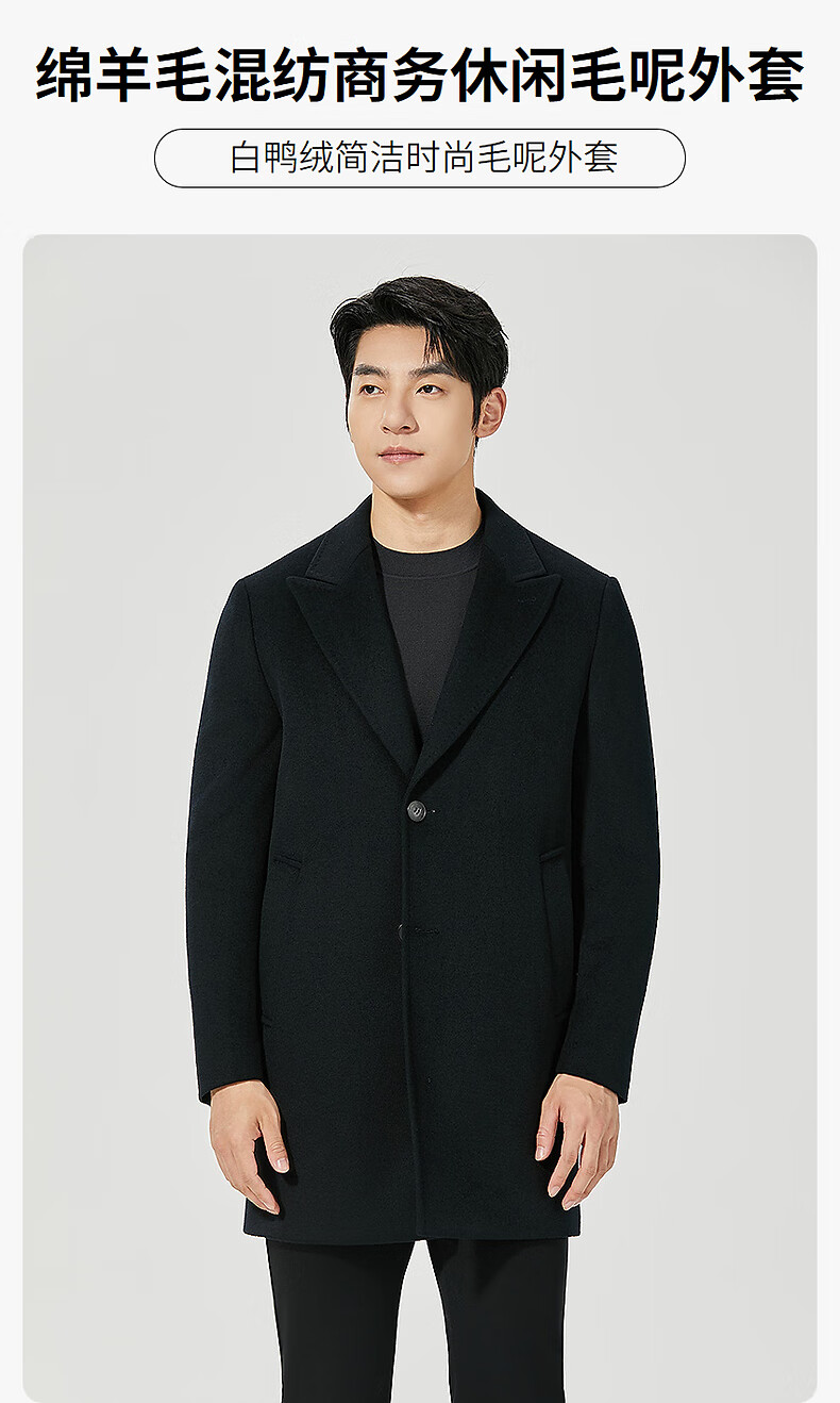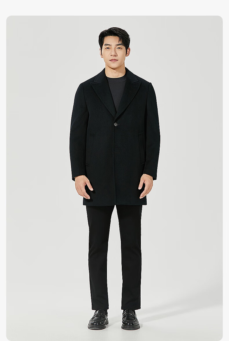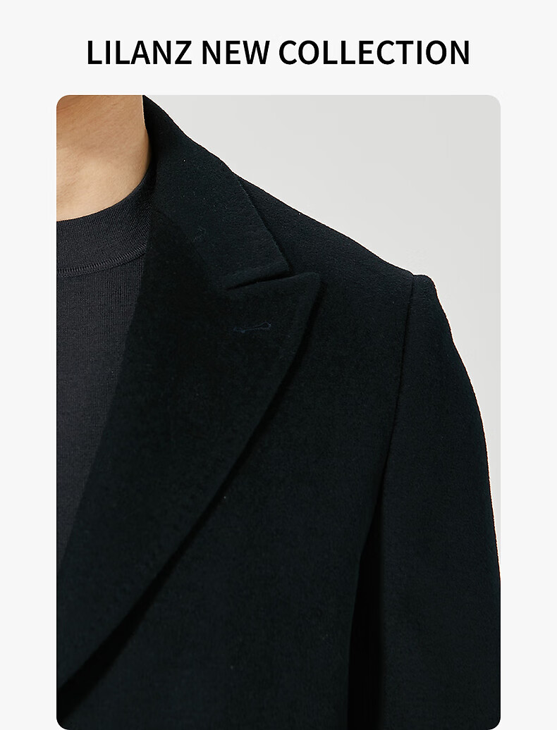 Lilang Doublure Mi-Longue Manteau en Laine Hiver Nouveau Business Manteau en Laine pour Hommes Centre Commercial Même Style Noir (25DYR1601Y) XL 175/92A