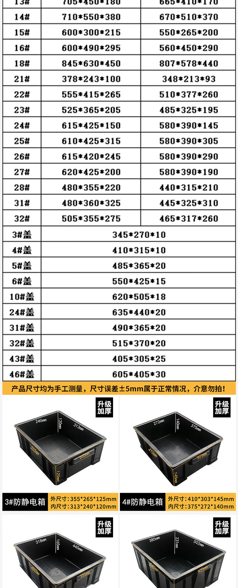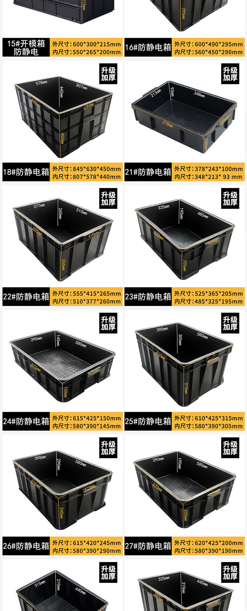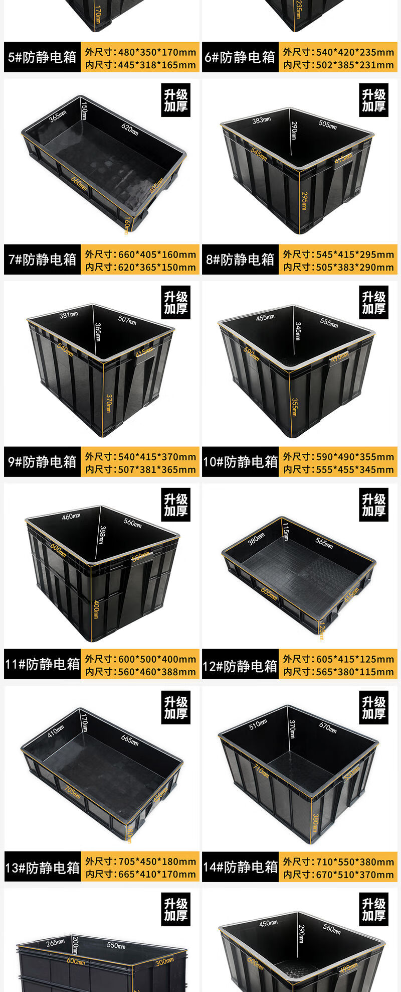 Fantasy black turnover box square plate parts box electronics factory conductive box plastic box 14# anti-static box 710x550x380mm