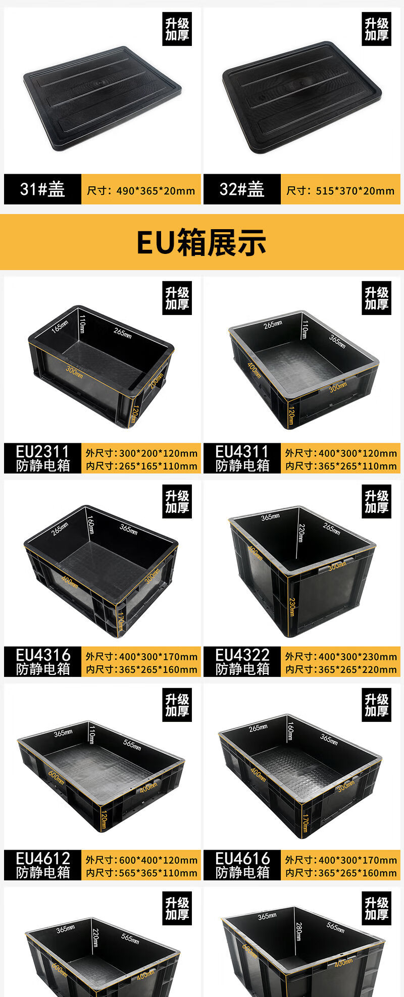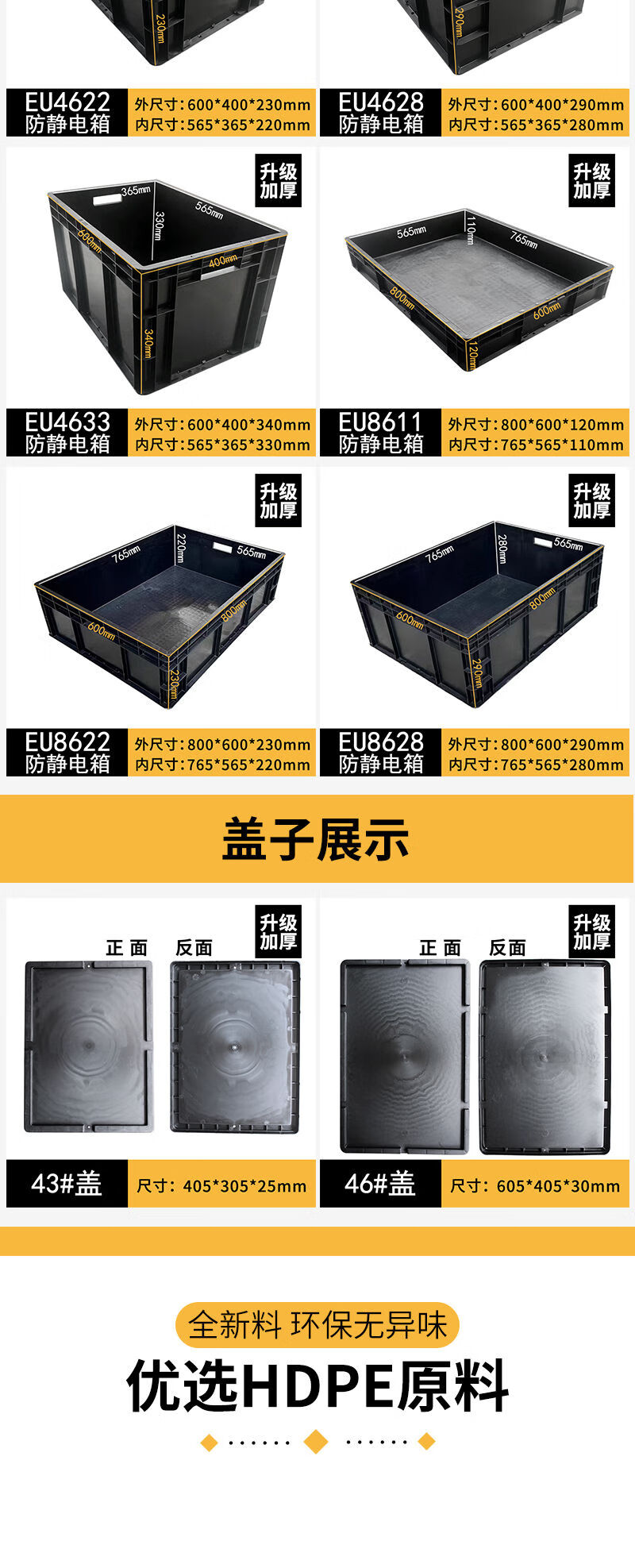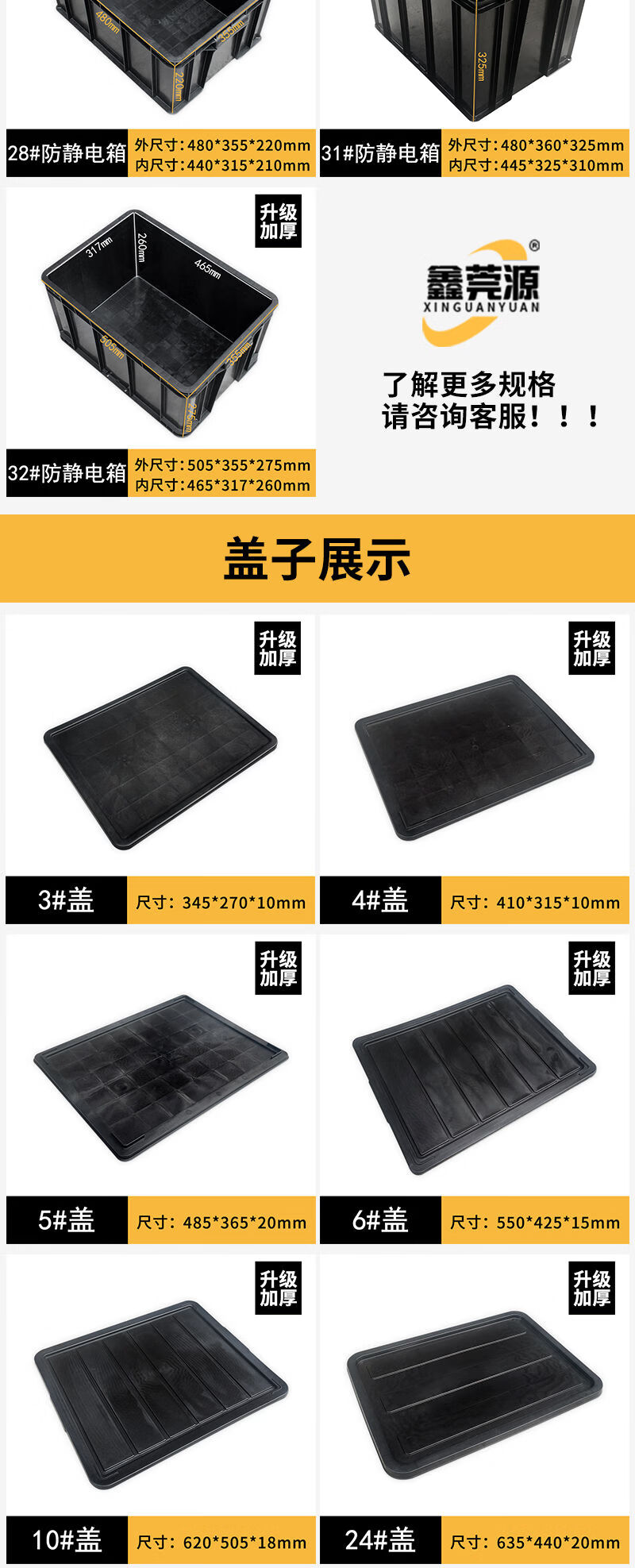 Fantasy black turnover box square plate parts box electronics factory conductive box plastic box 14# anti-static box 710x550x380mm