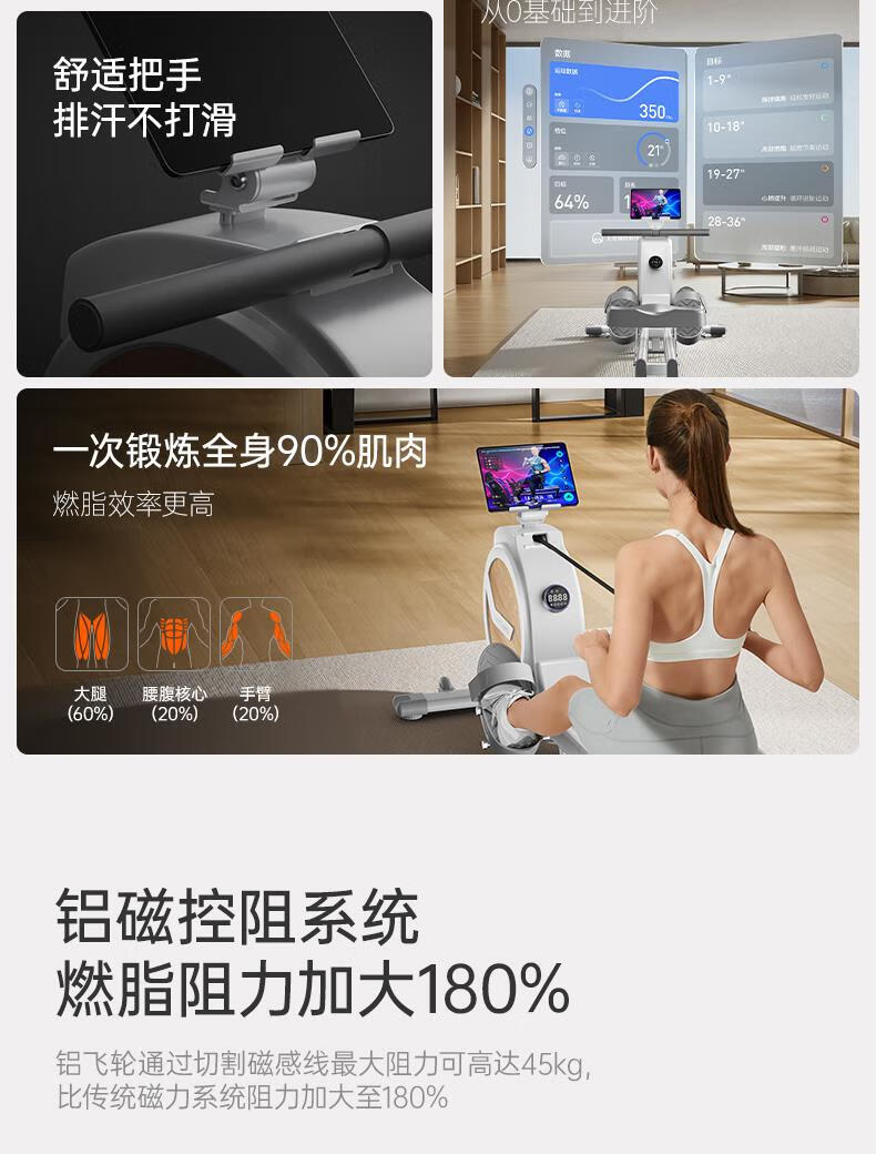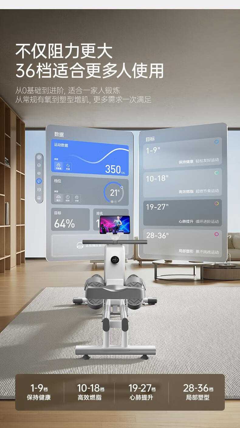 Aluminum magnetic resistance boat painting machine German quality 36-speed intelligent resistance adjustment 45KG powerful sweat-burning fat-free wear-free flywheel full high-strength aluminum alloy slide-Starry Black 16-speed