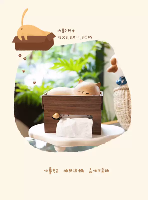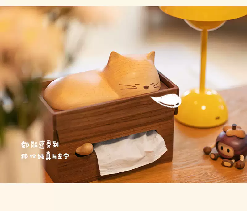Yusenyi Sleeping Creative Tissue Shape Box Paper Box Cherry Cute Cake Cat Black Walnut Solid Wood Drawing Bed 4-Cherry Cream Cake Tissue Box Small and Medium Tissue (can hold mobile phone)