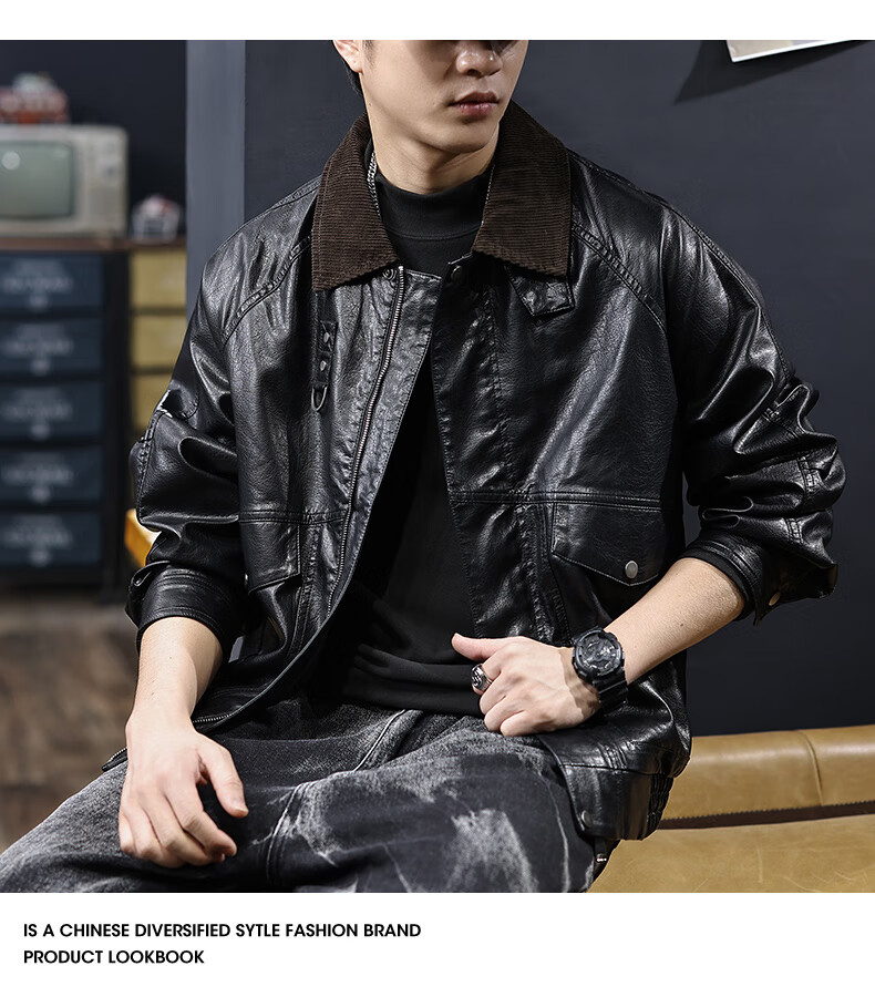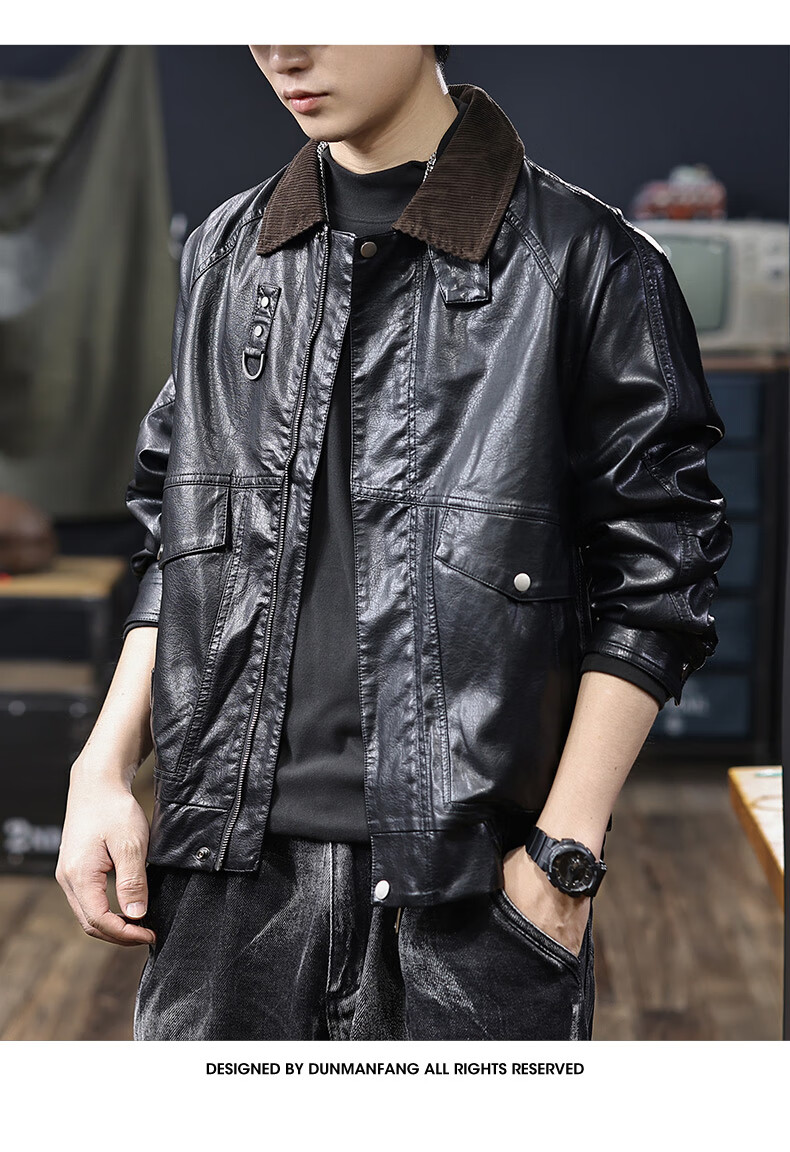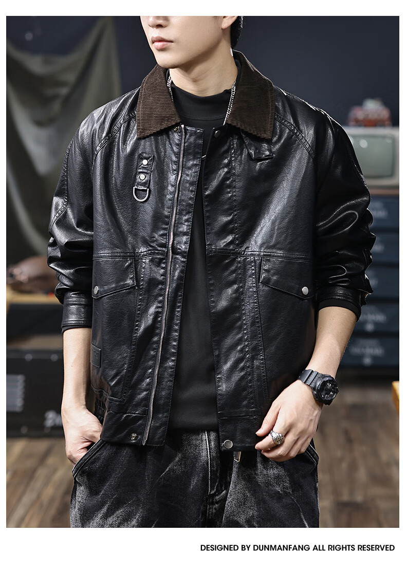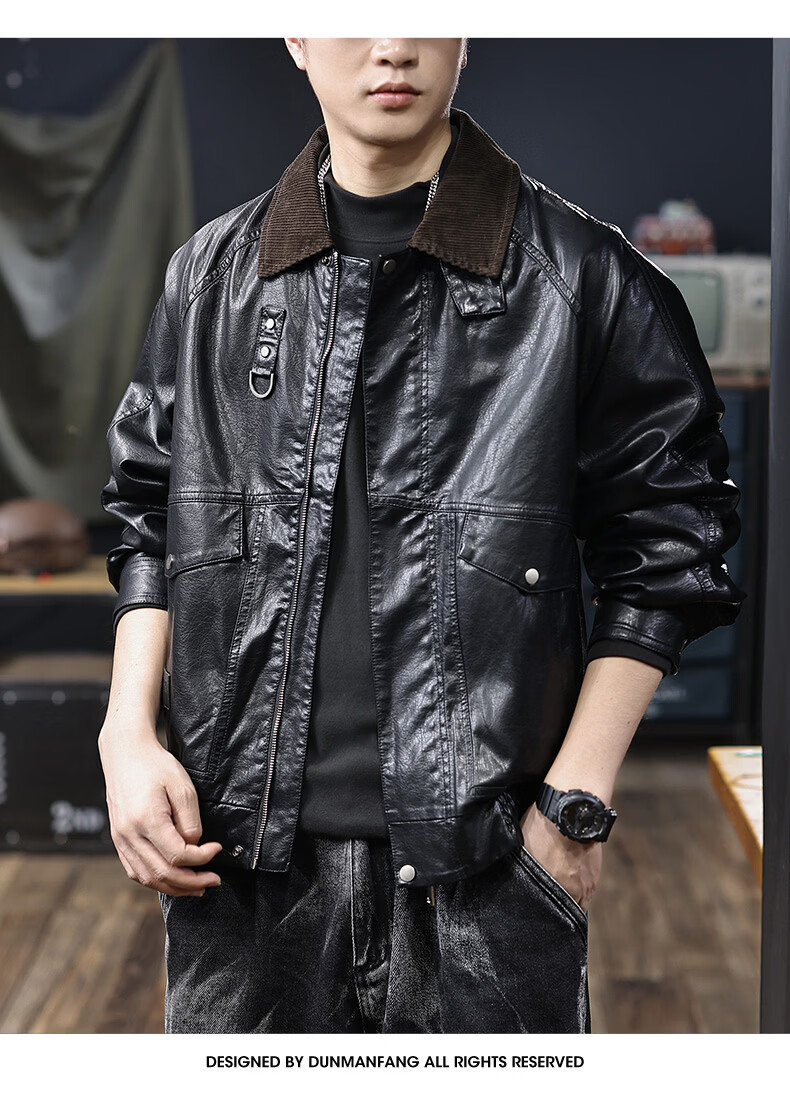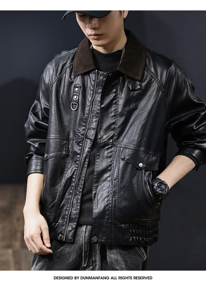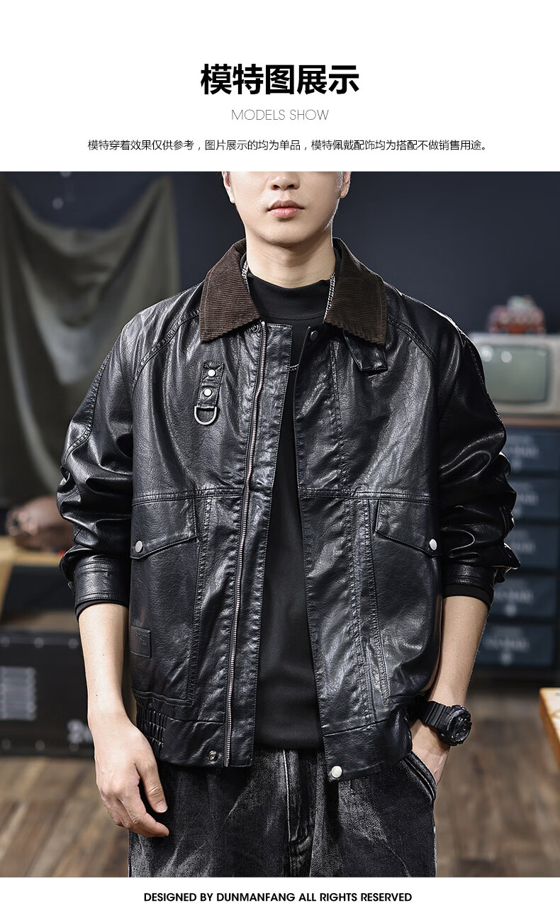 BRPY American high-end retro old money style leather jacket for men 2025 autumn and winter new fashion handsome men's PU leather jacket black M suitable for 100-125Jin Jin equals 0.5 kg