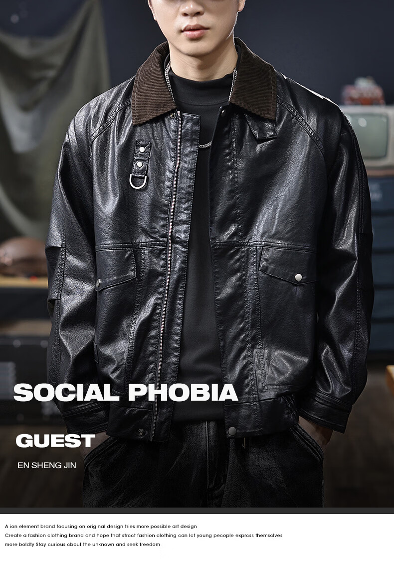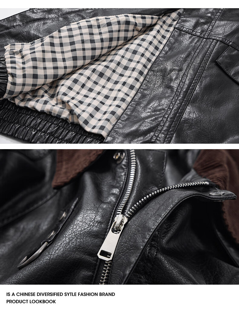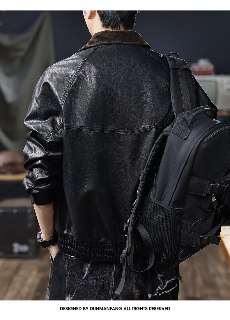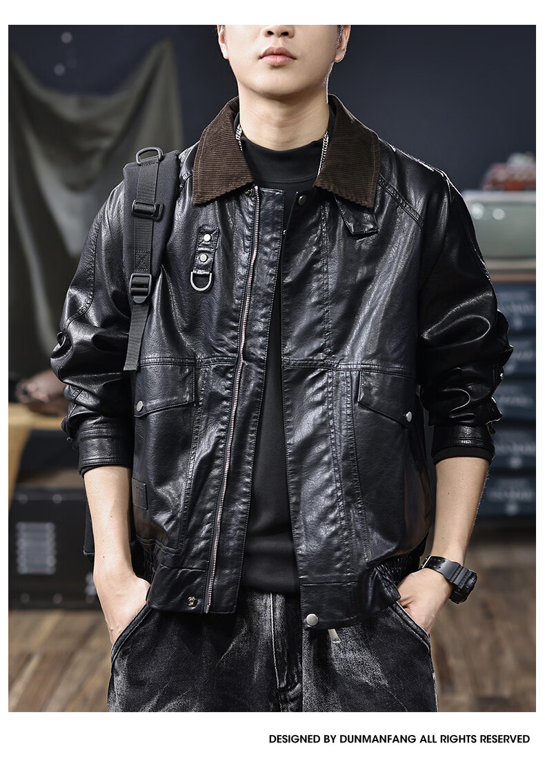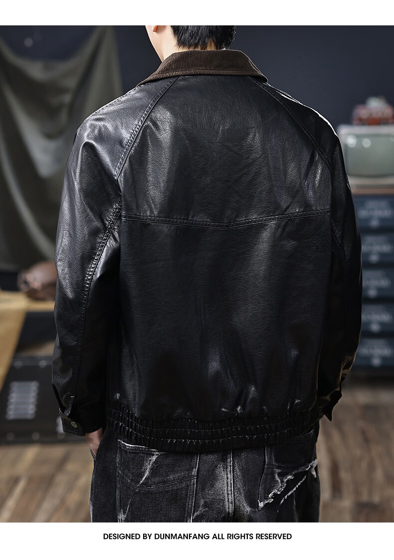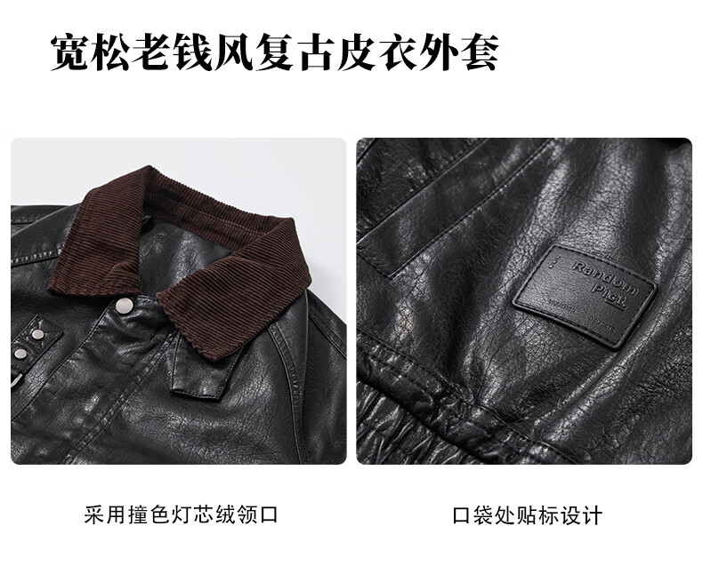 BRPY American high-end retro old money style leather jacket for men 2025 autumn and winter new fashion handsome men's PU leather jacket black M suitable for 100-125Jin Jin equals 0.5 kg