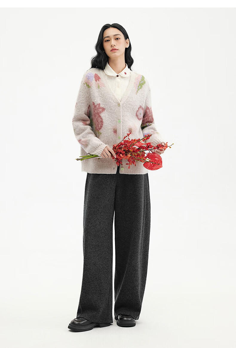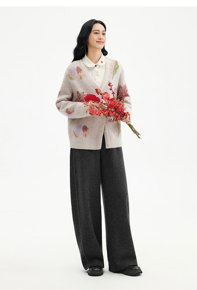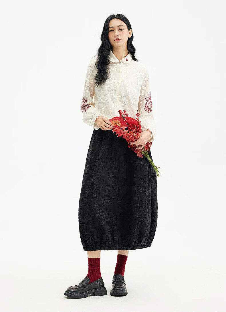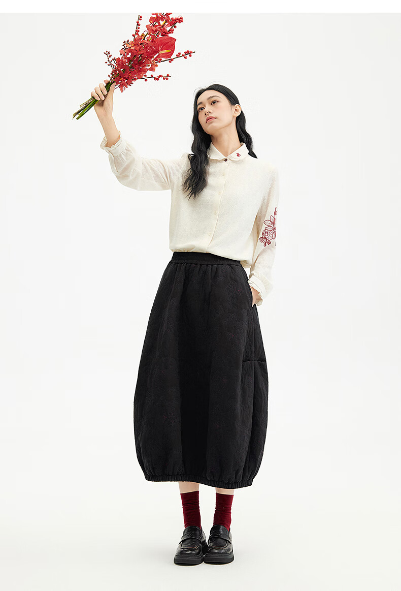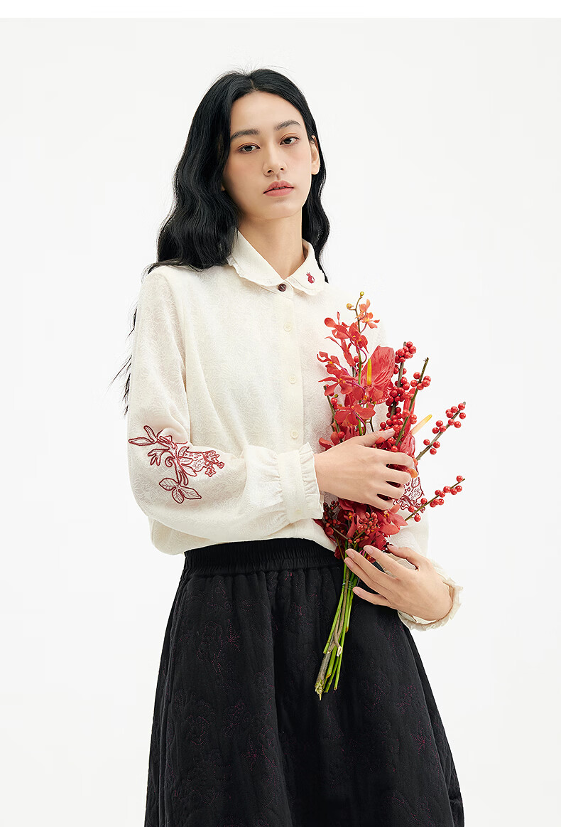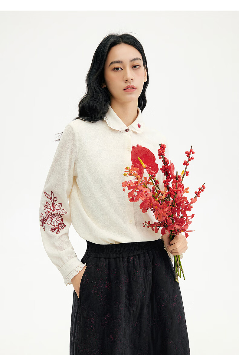 Birds and New Wine 2025 winter new style fungus edge jacquard knitted embroidered doll collar shirt for women off-white HCA03 S