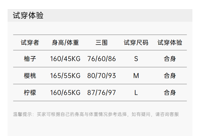 China (cm) 160-165/84-86 165-170 / 88-90 167-172 / 92-96 168-173 / 98-102 170-176 / 106-110