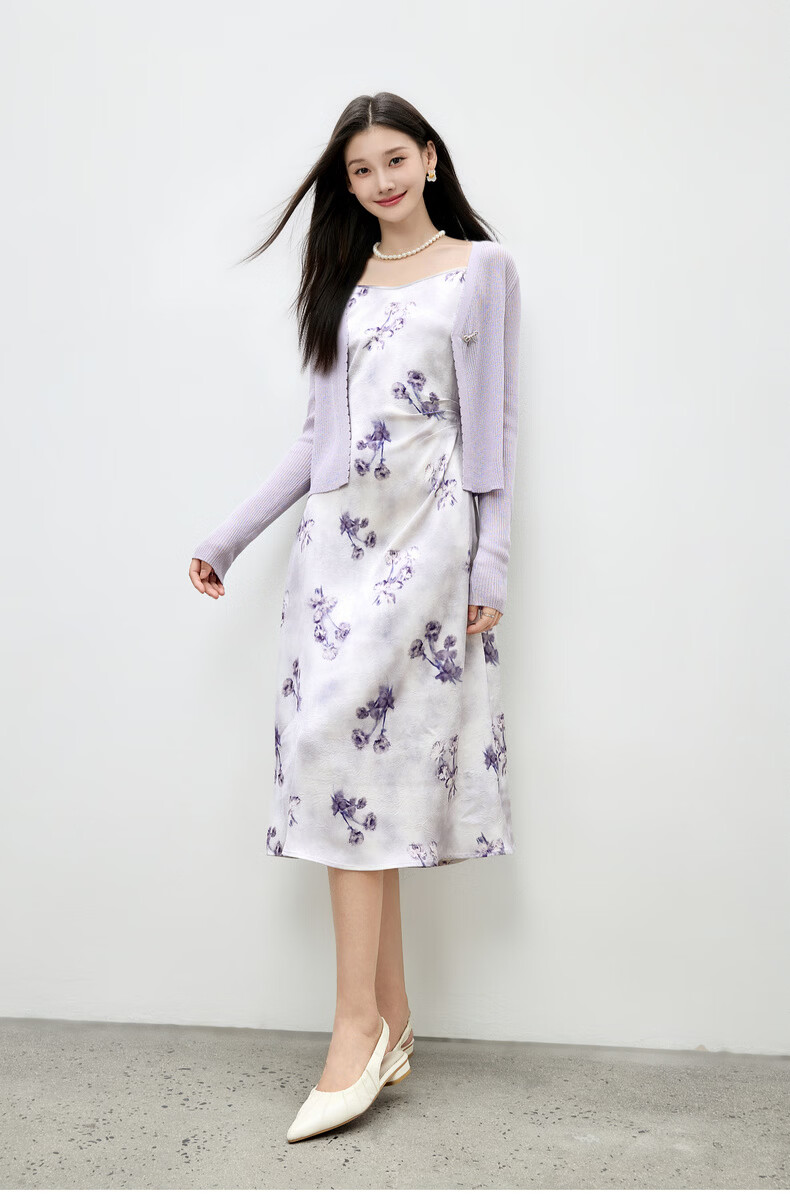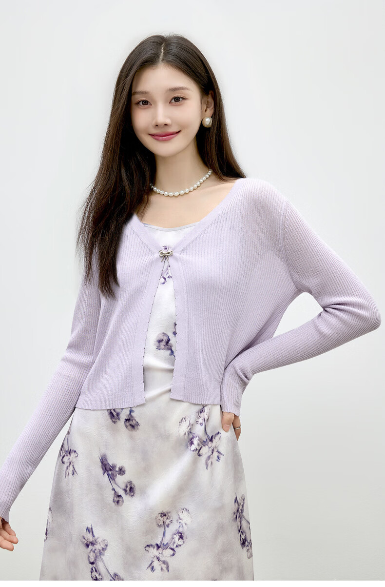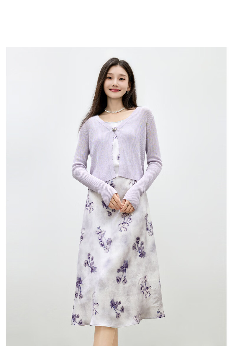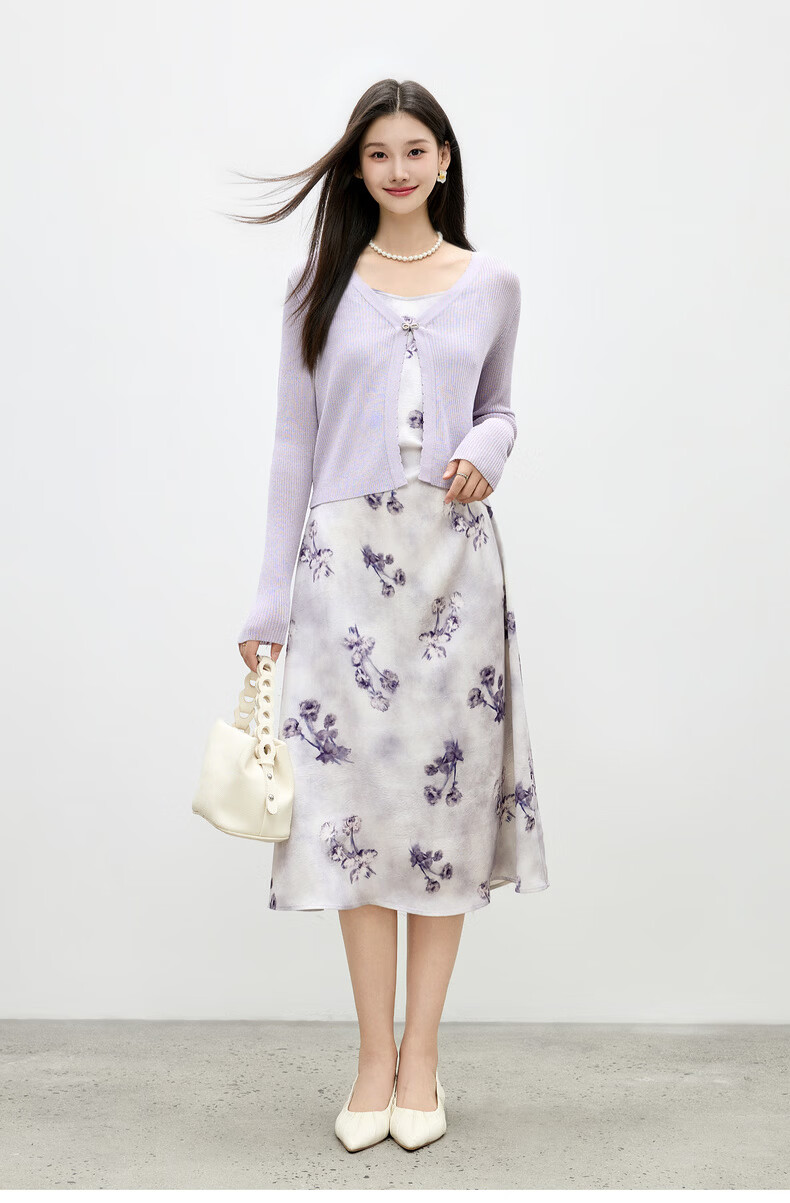 Qiushui Yiren Knitted Elegant Fashion Christmas Suit 2026 Spring New Women's Urban Daily Ink Style Two-piece Set Light Purple S