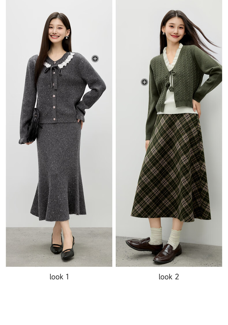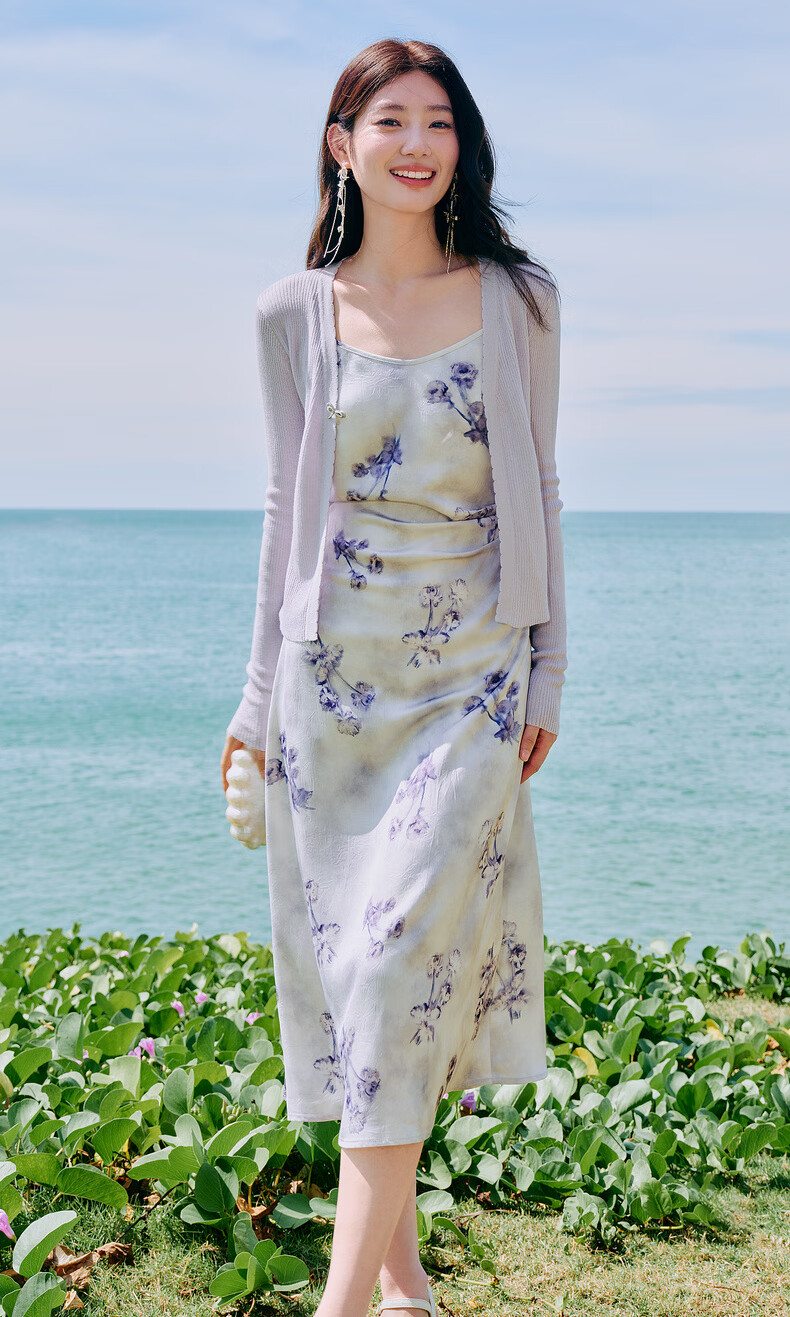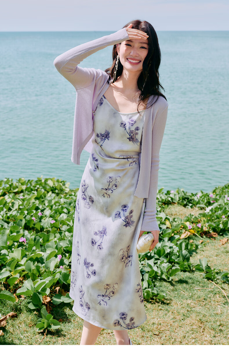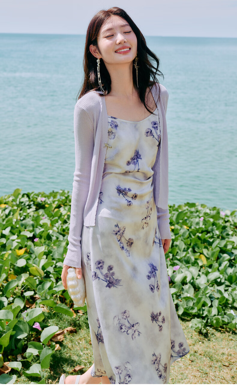 Qiushui Yiren Knitted Elegant Fashion Christmas Suit 2026 Spring New Women's Urban Daily Ink Style Two-piece Set Light Purple S