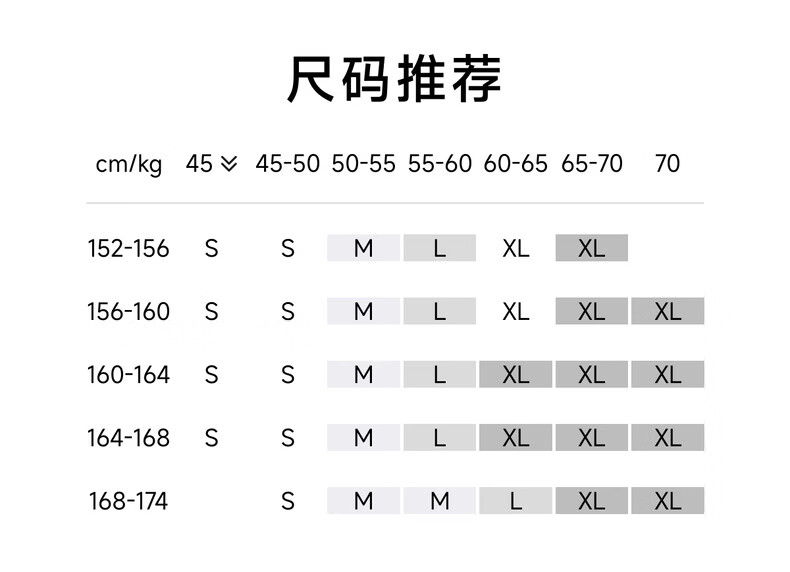 China (cm) 160-165/84-86 165-170 / 88-90 167-172 / 92-96 168-173 / 98-102 170-176 / 106-110