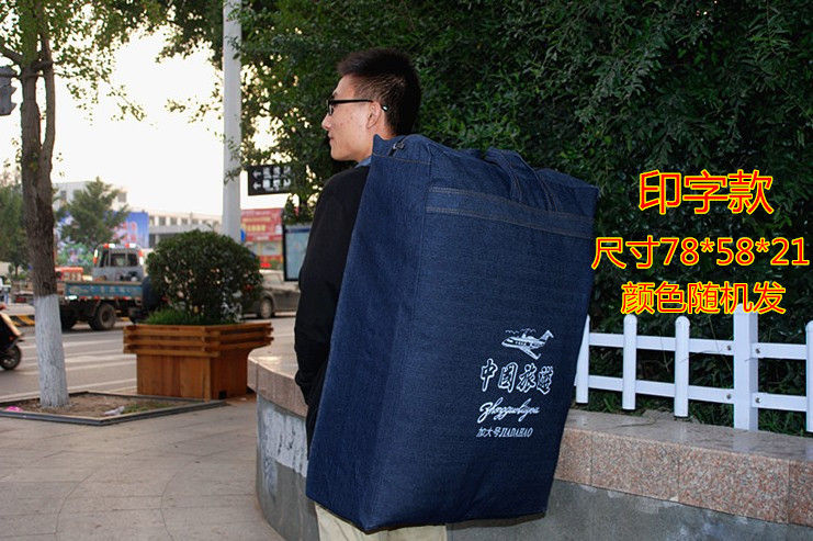 Murannuoer migrant worker storage bag special thickened denim backpack canvas moving bag backpack luggage bag checked package large thickened version without words