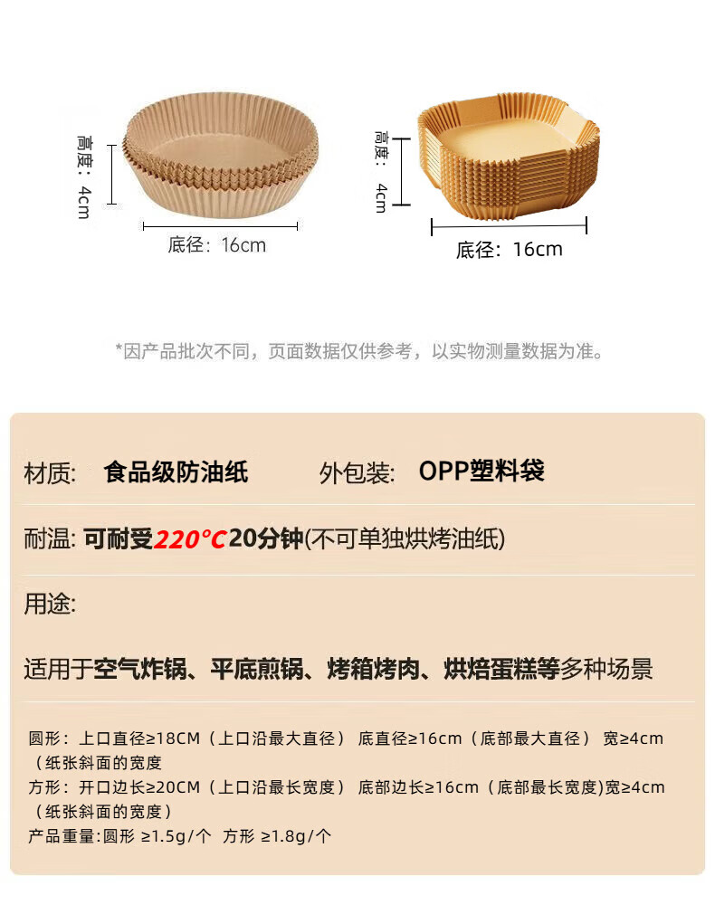 Jiaolu 200 sheets of large and heightened air fryer special grease-proof paper round round round fryer paper 50 pieces