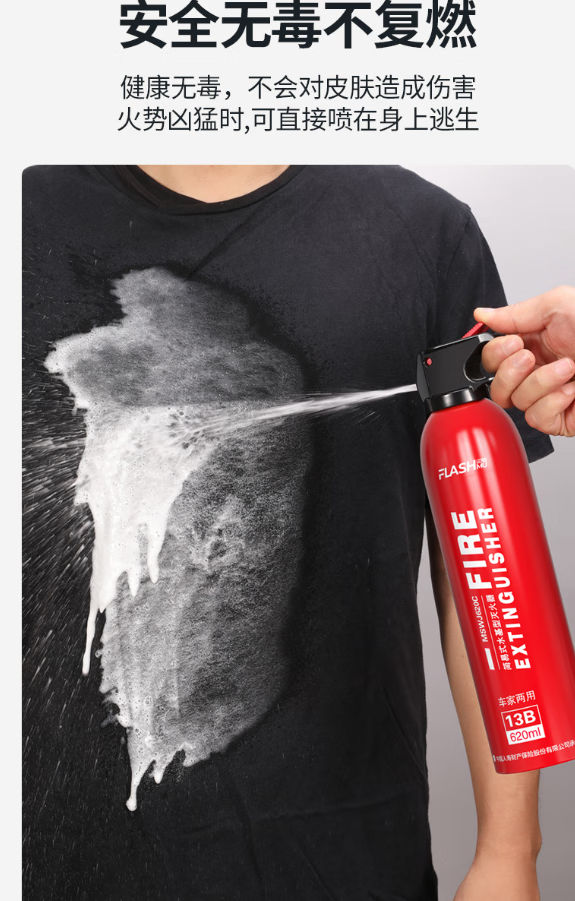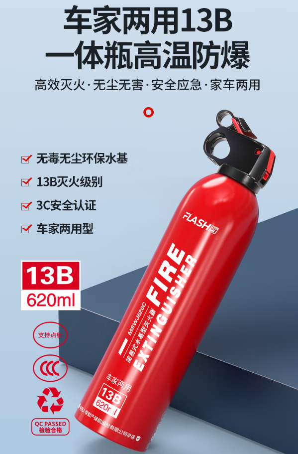 Shanmu car and home dual-use car home fire extinguisher 13B water-based car fire extinguisher home portable QJ 620ml water-based two bottles fire extinguisher comes with hanger + adhesive backing