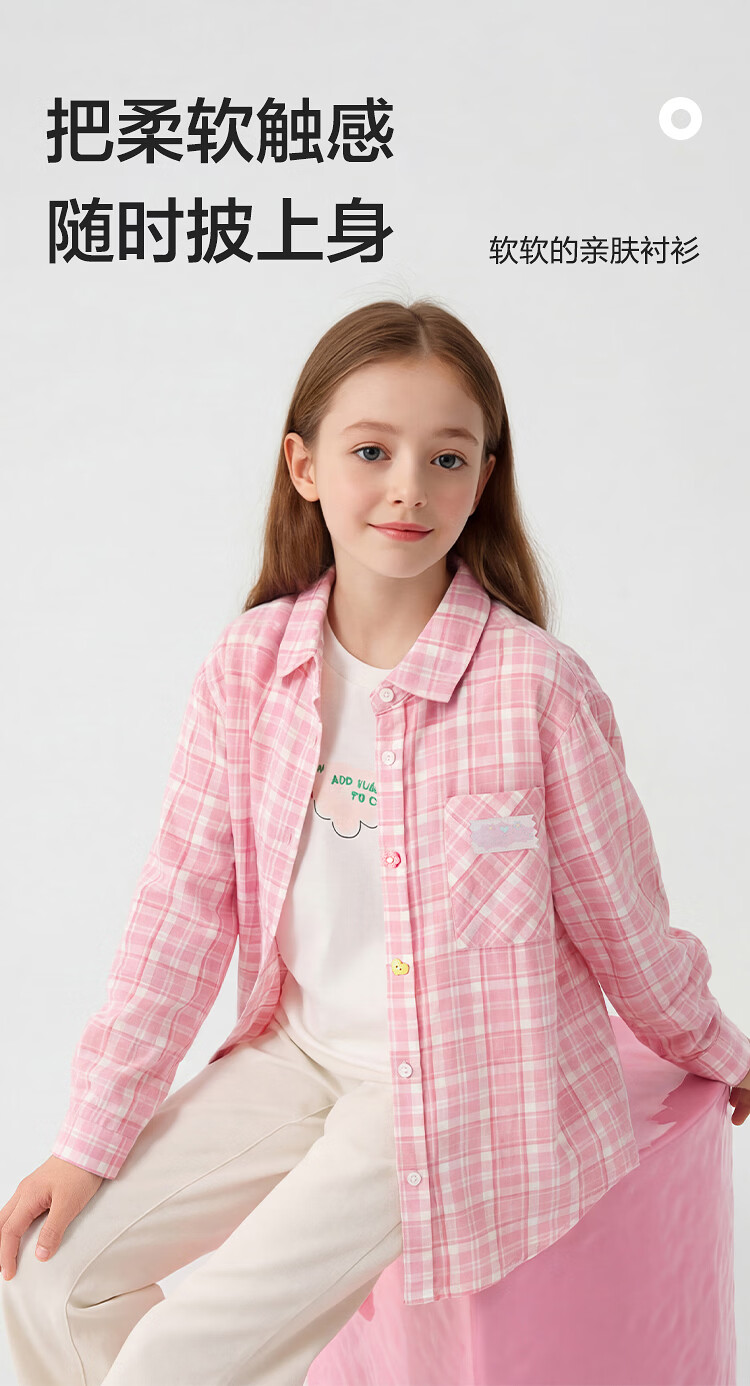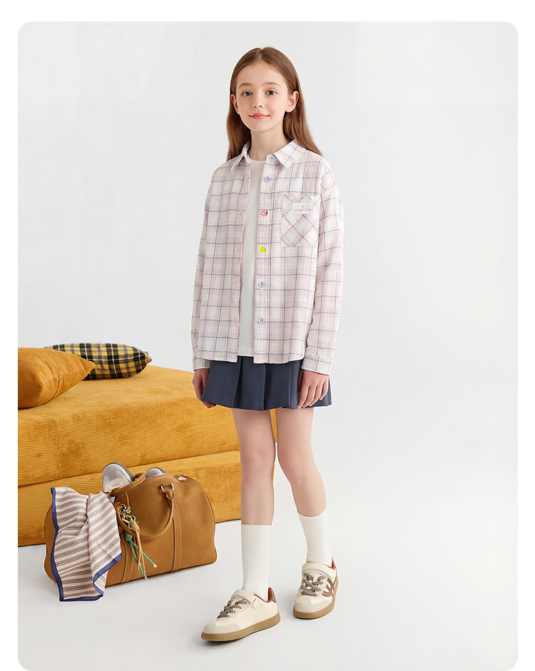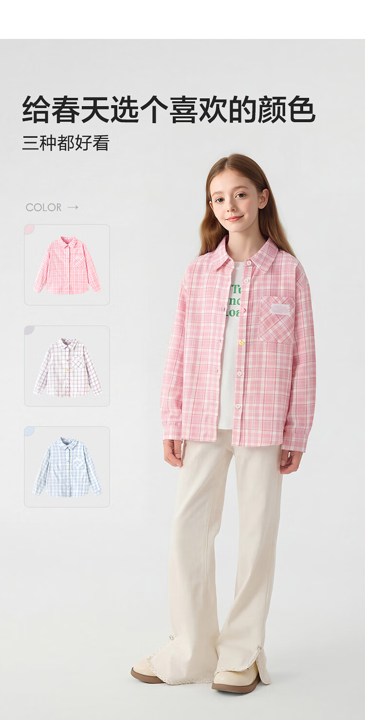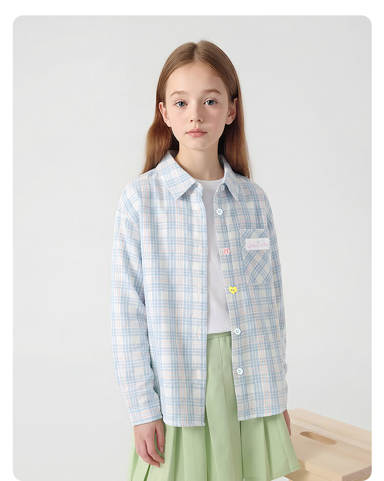 BalaOne children's clothing children's long-sleeved shirt girls 2026 new spring plaid fashion blue tone 00488 110