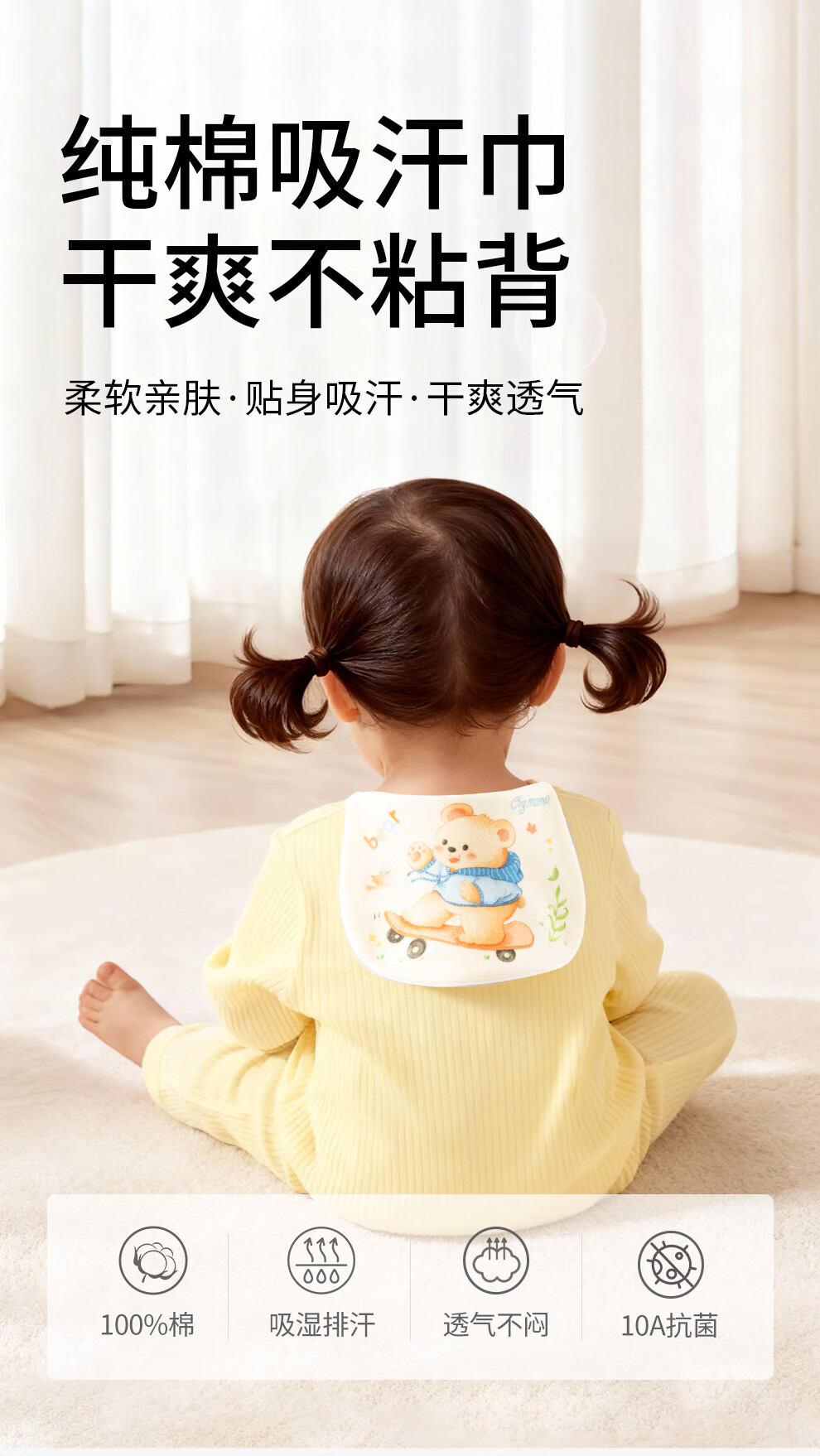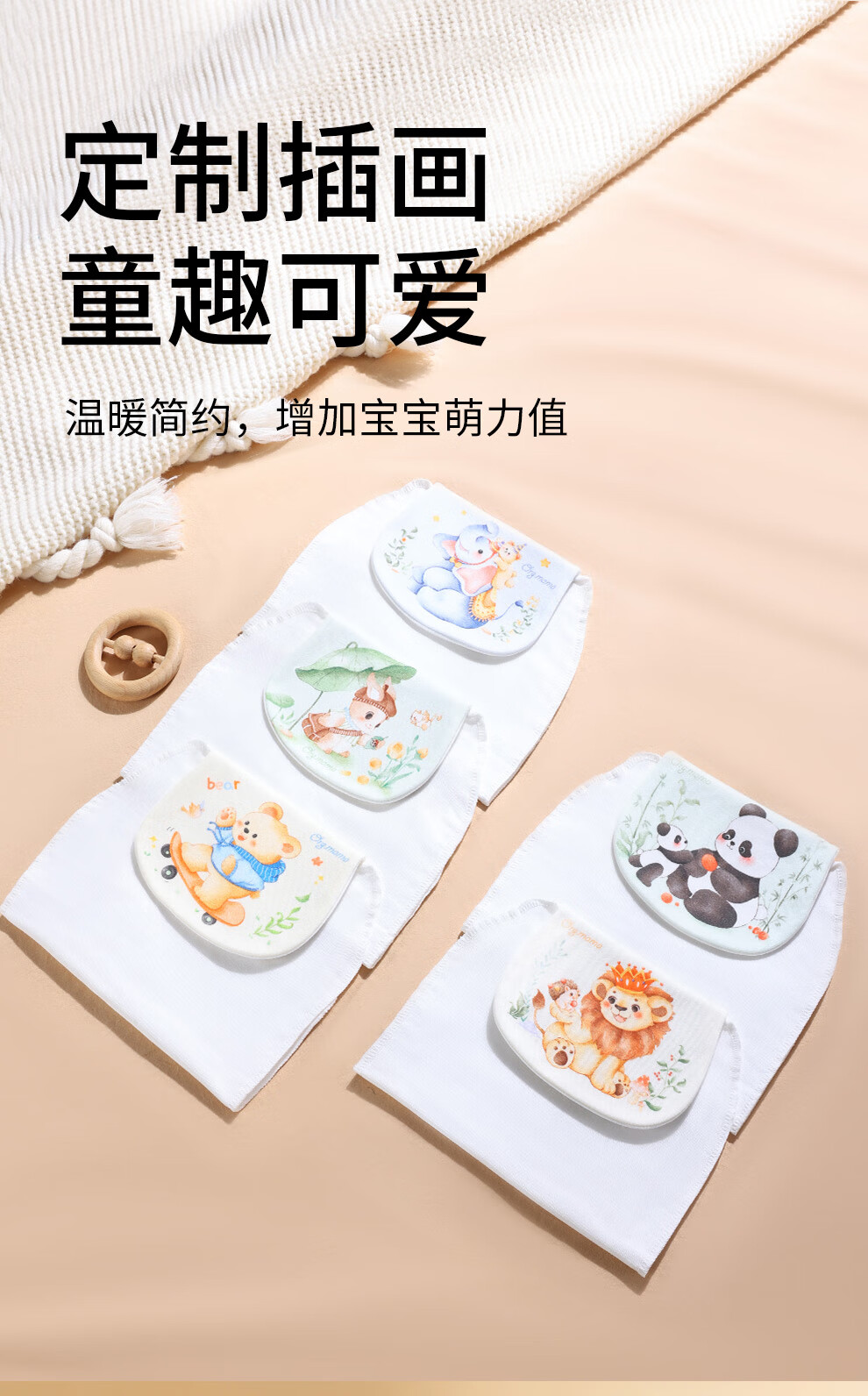 Mama Fruit Sweat-Absorbent Wipes for Children 3-6 Years Old Sweat-Absorbent Wipes for Baby Pure Cotton Sweat-Absorbent Wipes for Kindergarten Boys and Girls Back Pads 5 Pack | 6 Layers of Gauze | Lingyue Wonderland | 10A Antibacterial Small Size (1-3 years old)