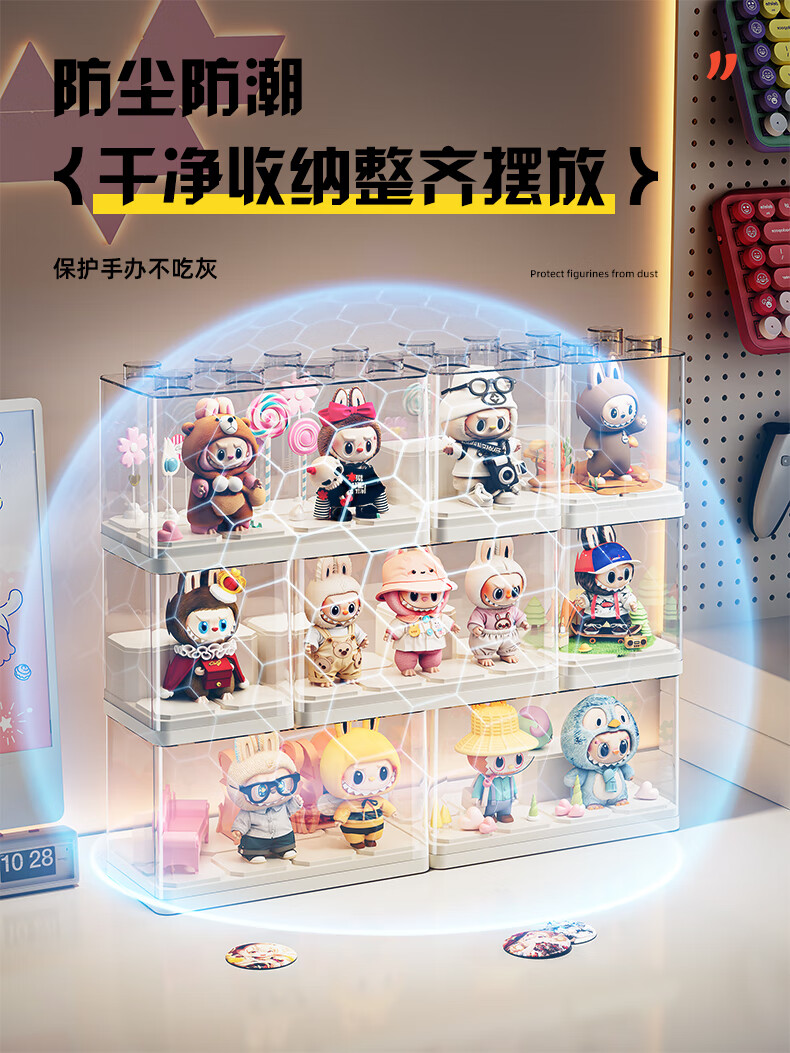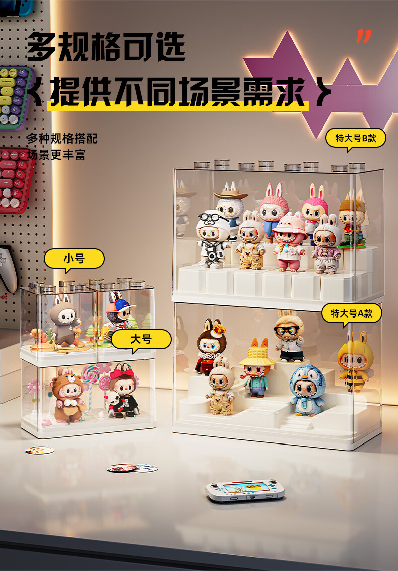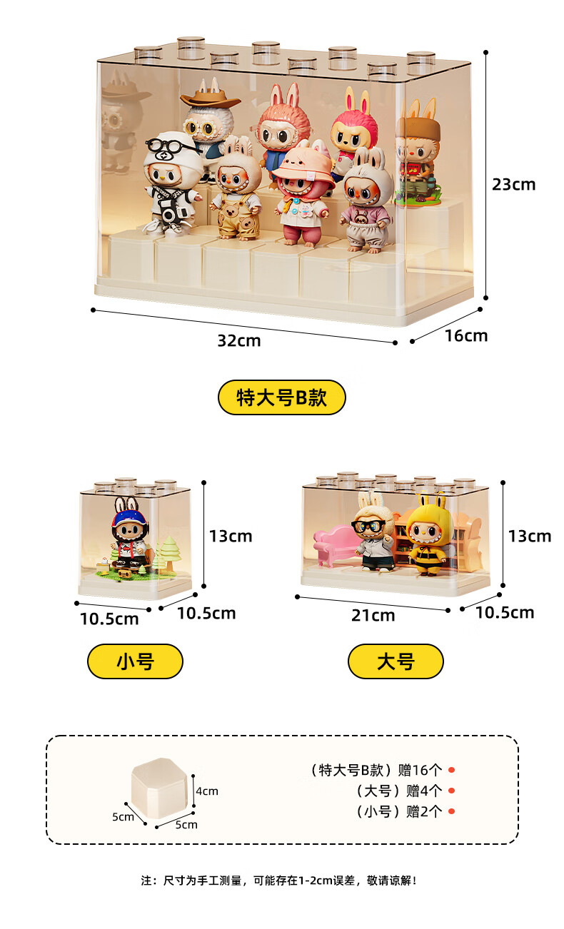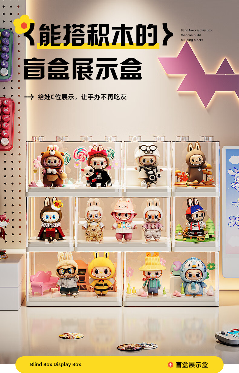 Blind box storage display stand, transparent acrylic figure display cabinet, suitable for stars, Bubble Mart display box, extra large 2 pack, 36 DIY building block bases, no installation needed, ready to use out of the box