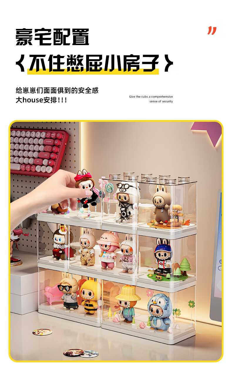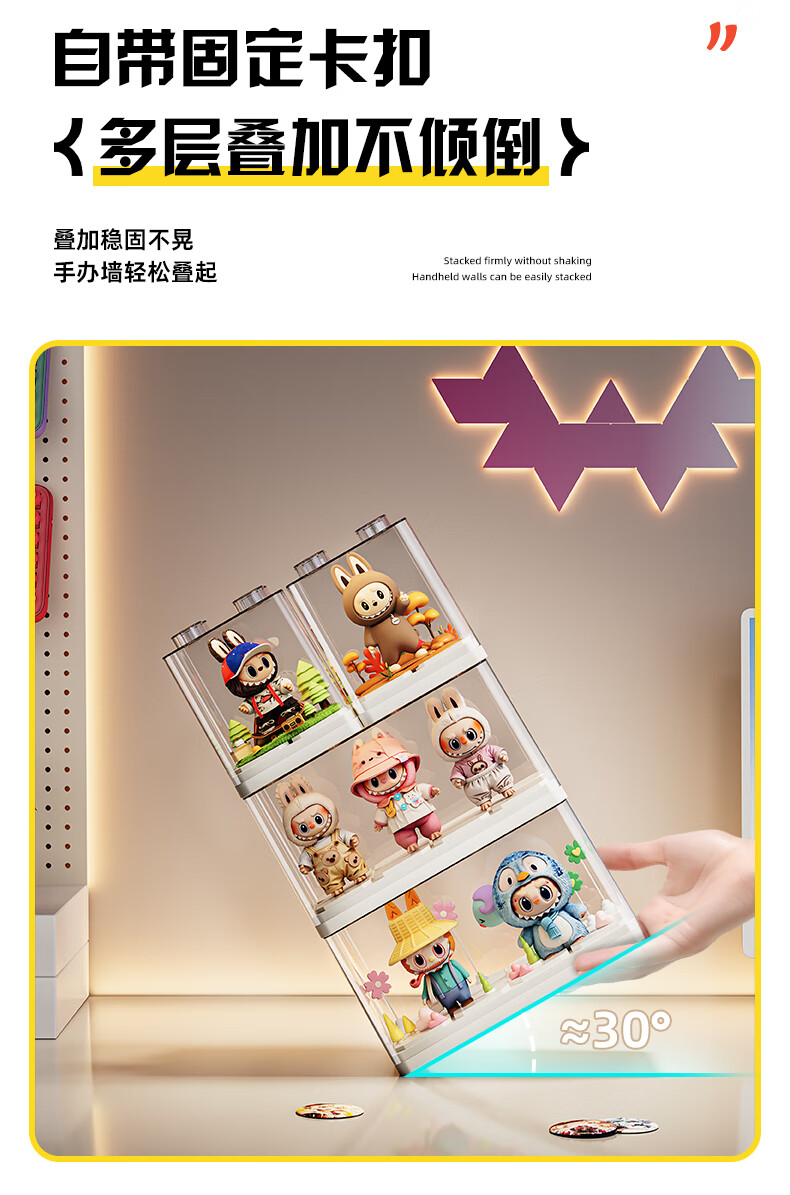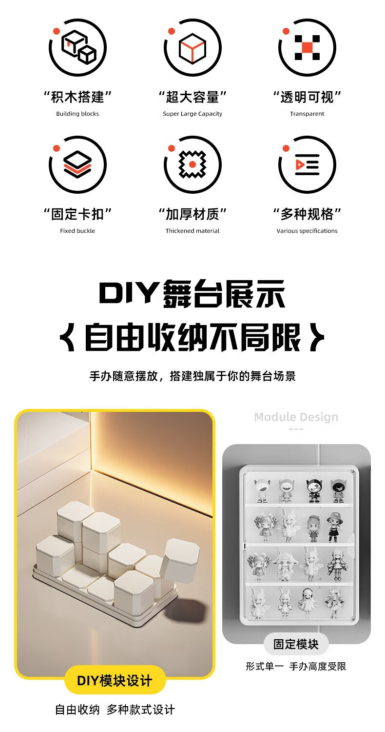 Blind box storage display stand, transparent acrylic figure display cabinet, suitable for stars, Bubble Mart display box, extra large 2 pack, 36 DIY building block bases, no installation needed, ready to use out of the box