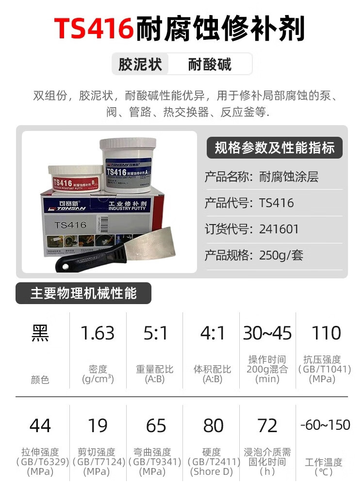 Kesaixin Industrial Metal Corrosion Resistant Repair Agent TS406/416 High Temperature Resistant, Acid and Alkali Resistant, Rust Resistant Anticorrosive Coating TS416_(250g)