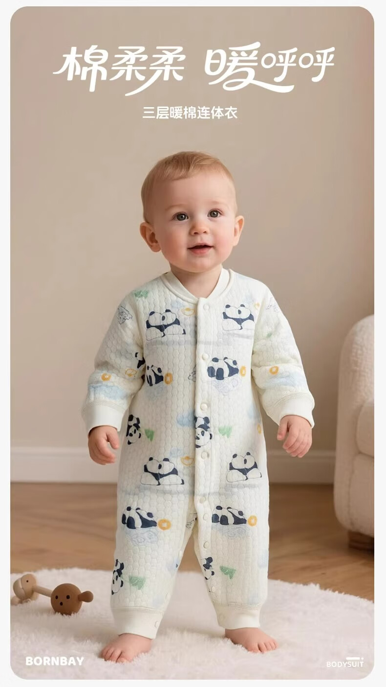 Beibeiyi children's clothing for boys and girls, warm quilted baby jumpsuits, 2025 autumn and winter new style, lucky panda 59cm (1-3 months)