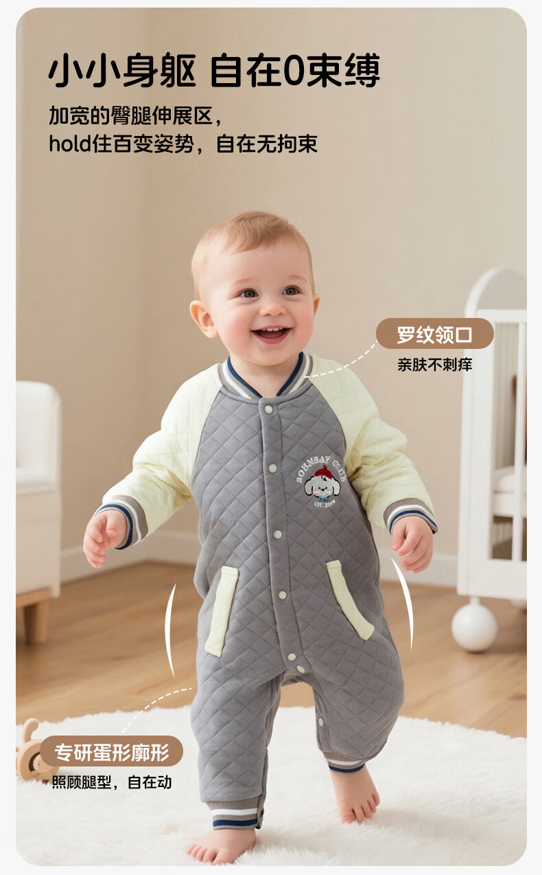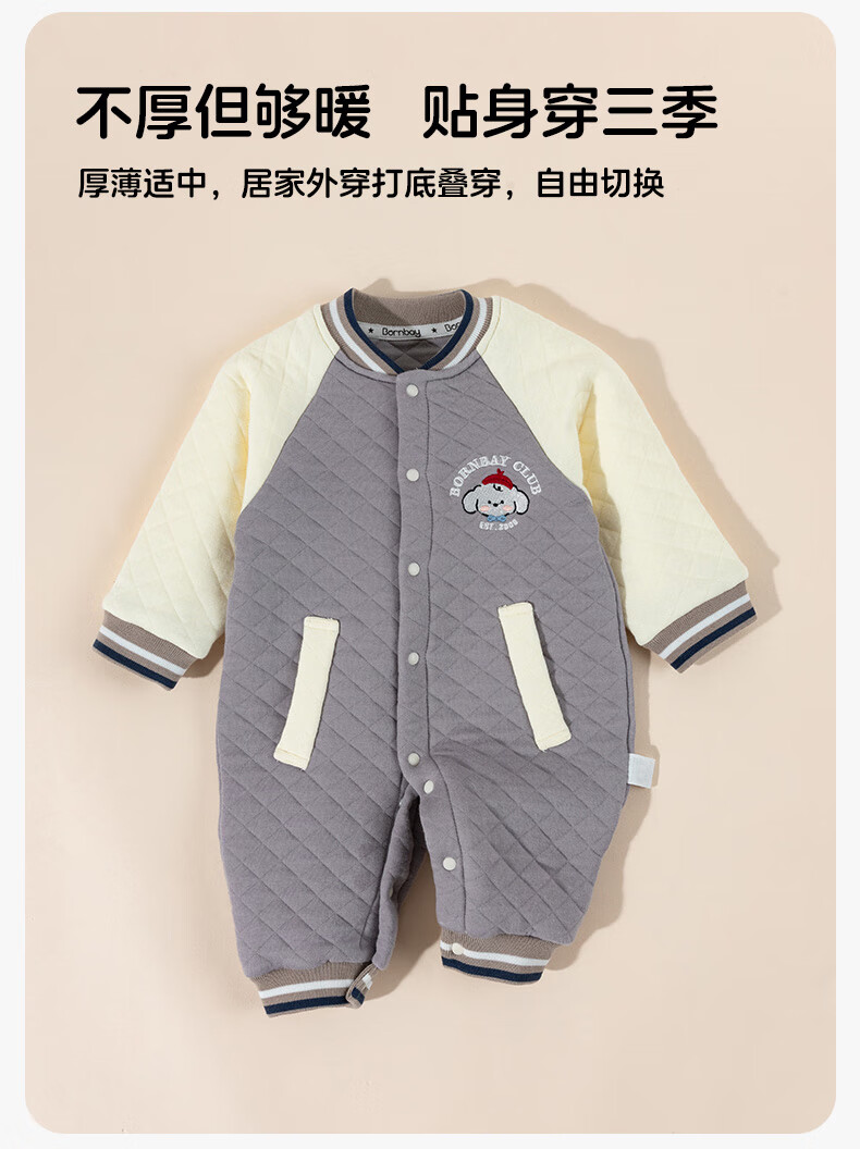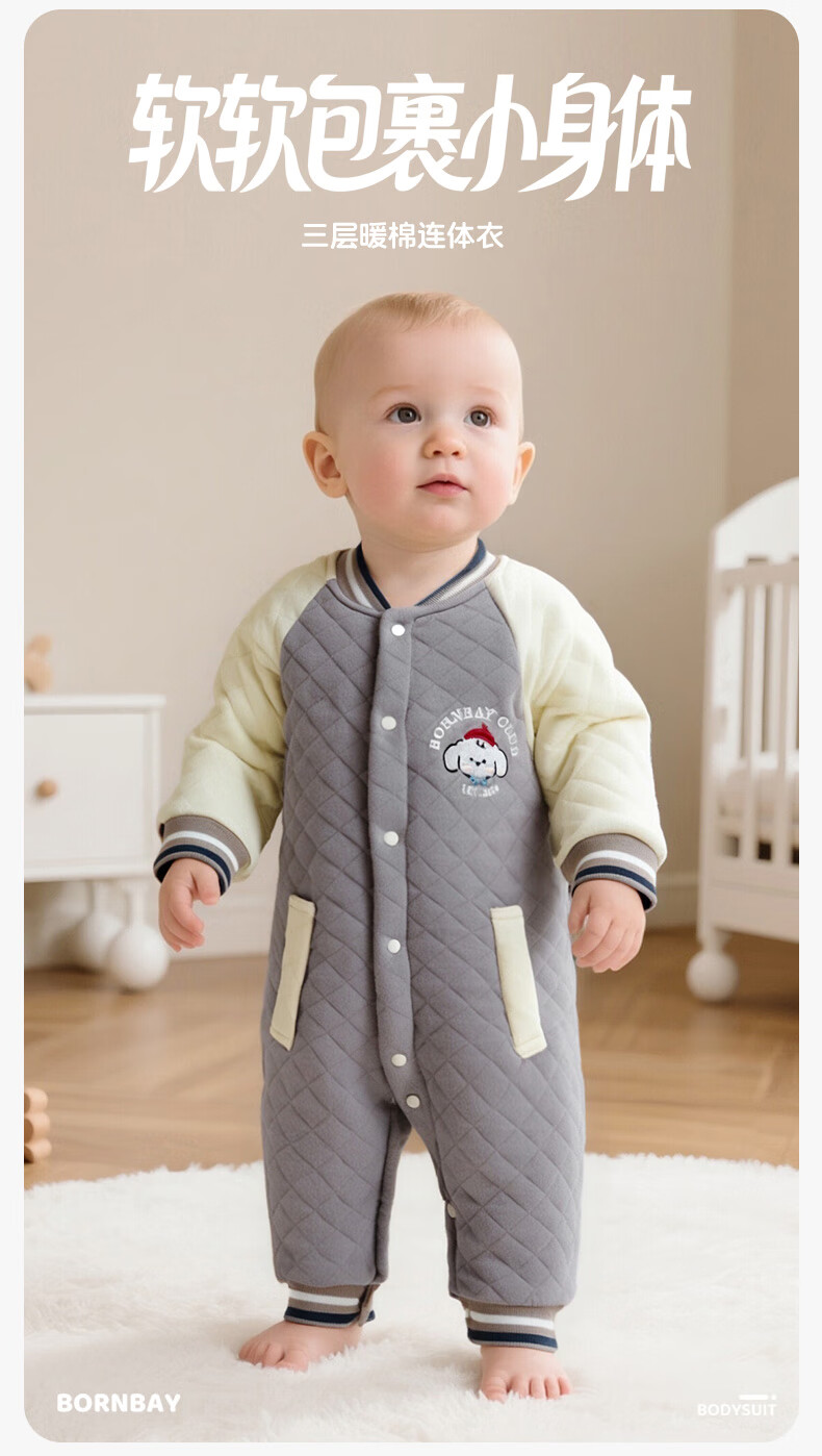 Beibeiyi children's clothing baby jumpsuit warm quilted infant and newborn crawling clothing winter clothing autumn and winter new style dark coffee 73cm (6-9 months)
