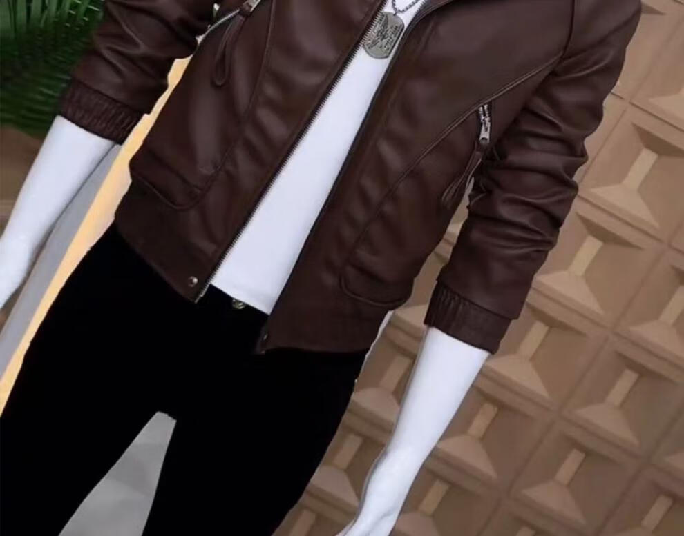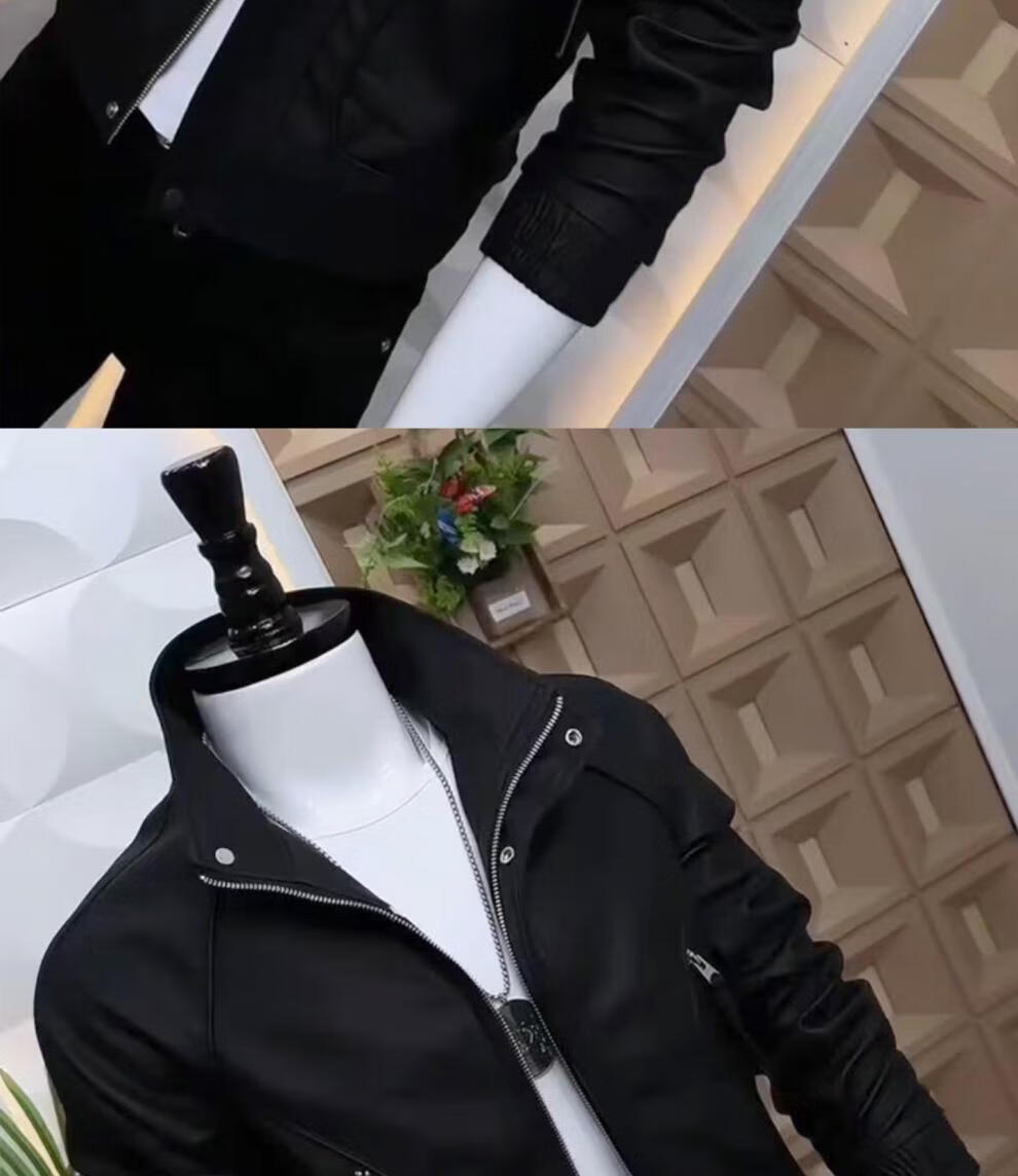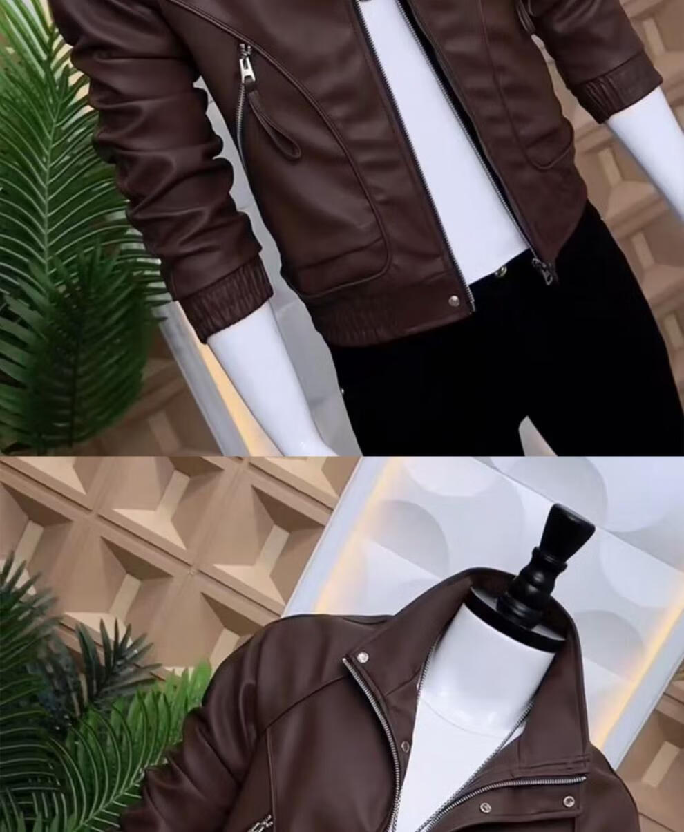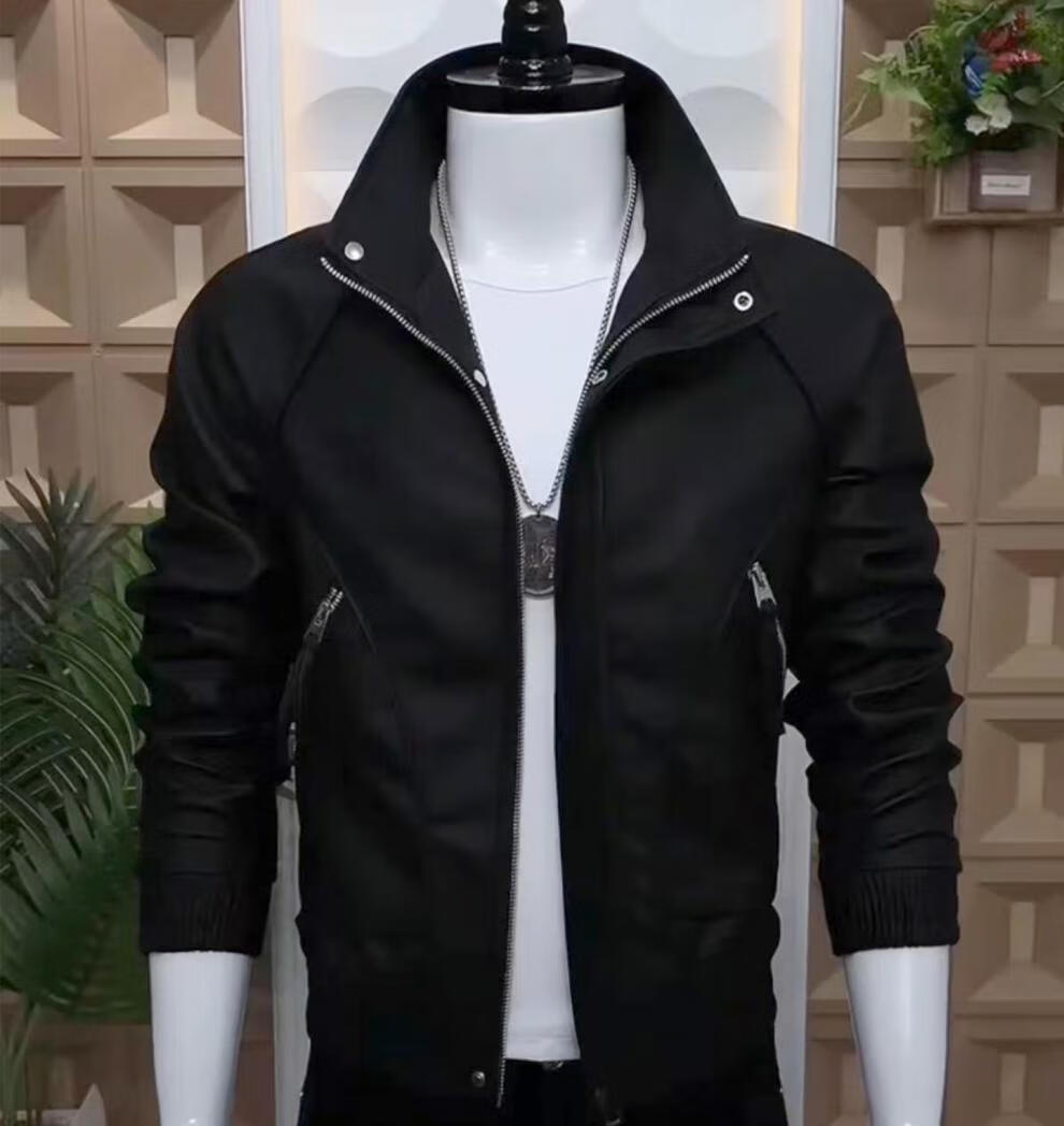 Playboy Men's Leather Jacket Autumn and Winter New Men's Leather Jacket Korean Style Slim Casual High-Level Tops Puffy and Trendy Black (No Velvet) Spring and Autumn Style S 90-115Jin Jin is equal to 0.5 kg