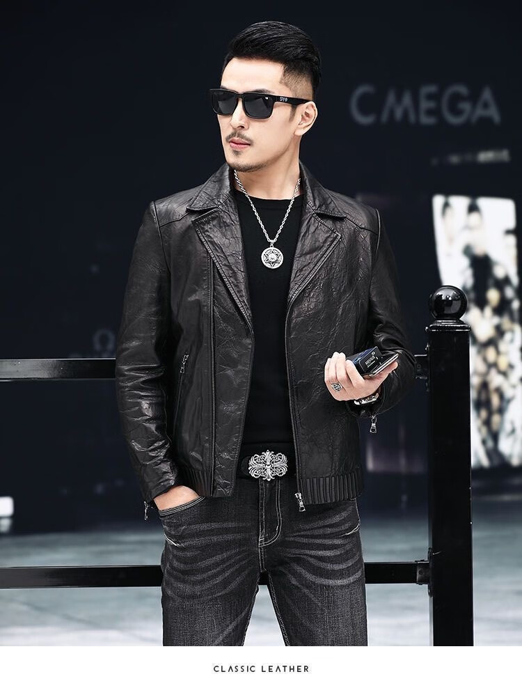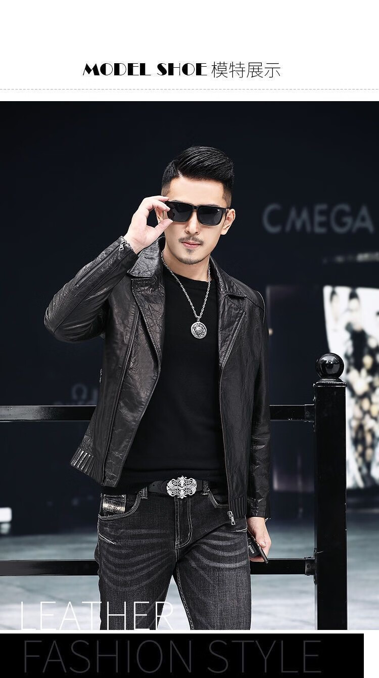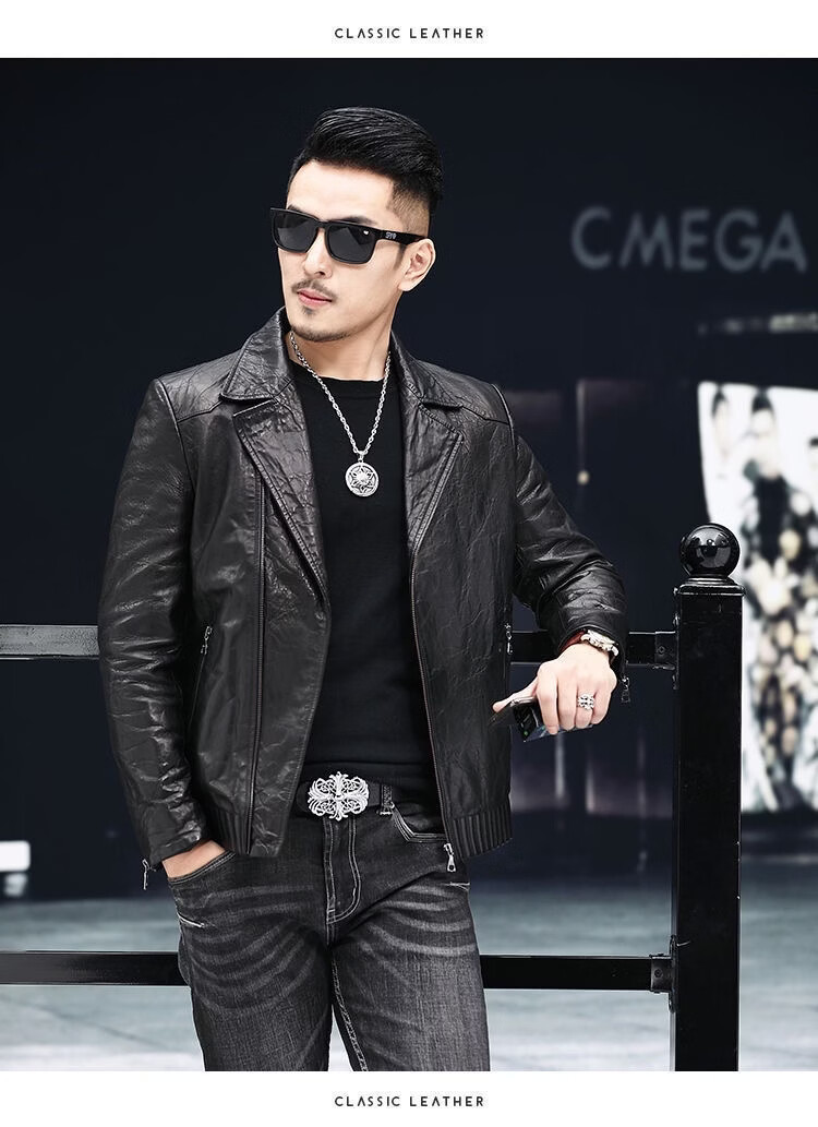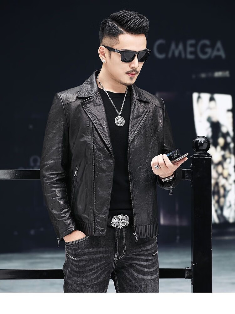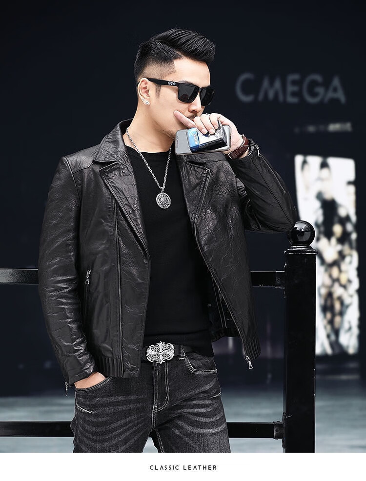 Playboy 2025 Autumn and Winter Short Slim Suit Collar Leather Jacket Men's Korean Style Fashionable, Handsome and Casual The Easiest to Match Leather DB# Black Spring and Autumn Style M