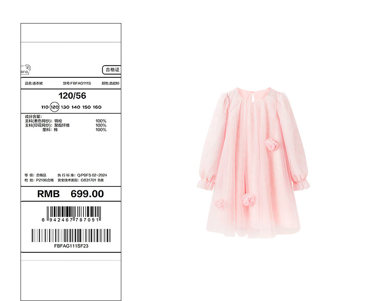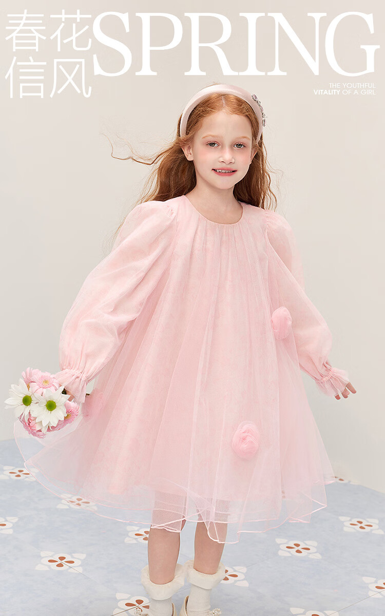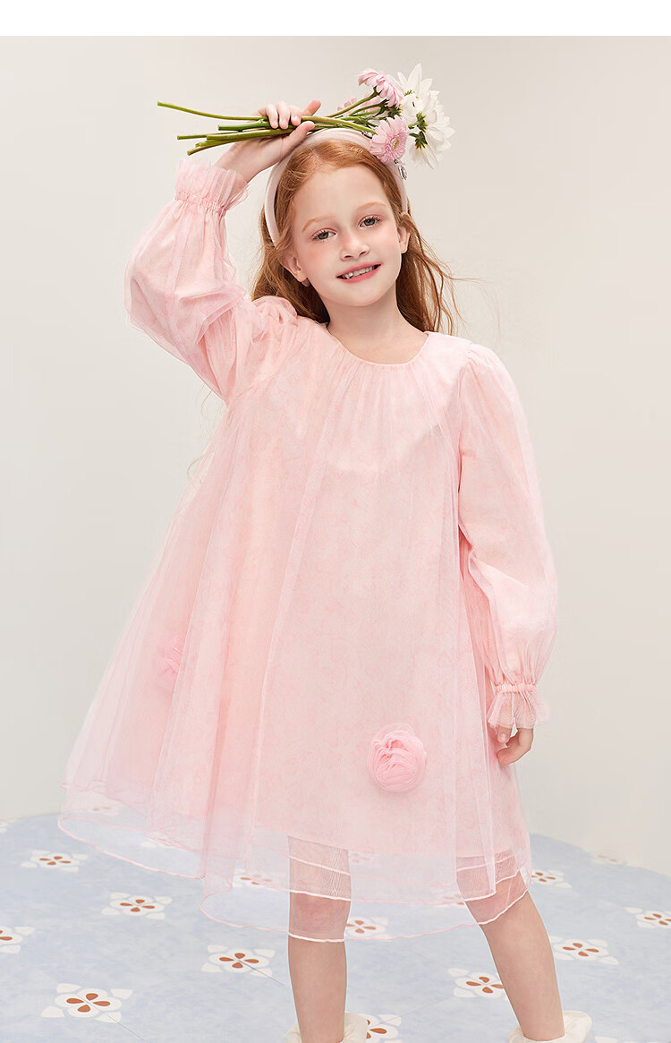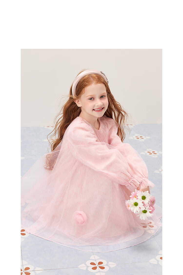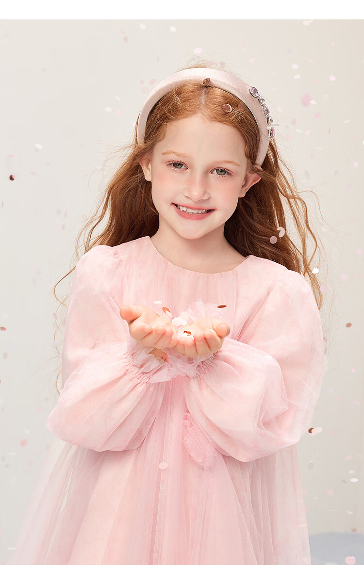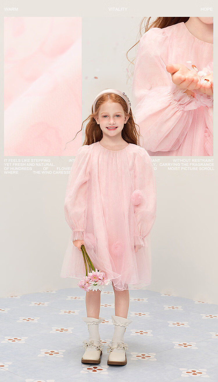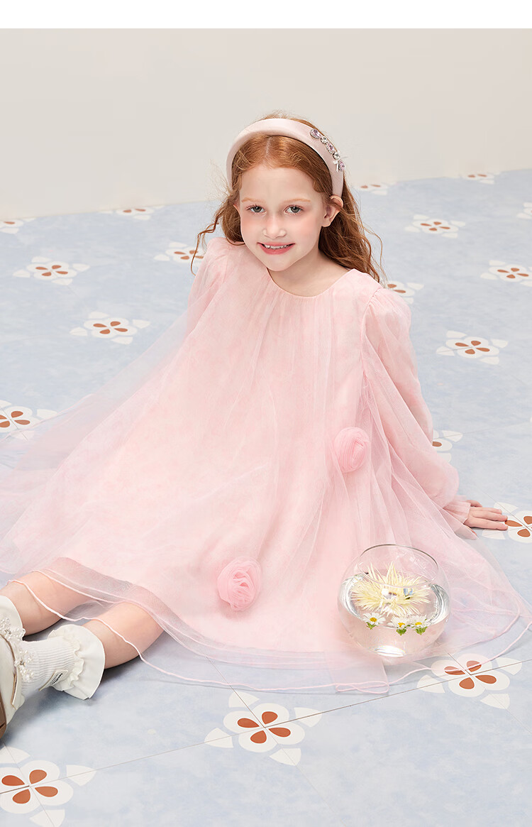 MiniPeace Children's Clothing Spring New Girls Dress FBFAG111S Crystal Rose Pink 110