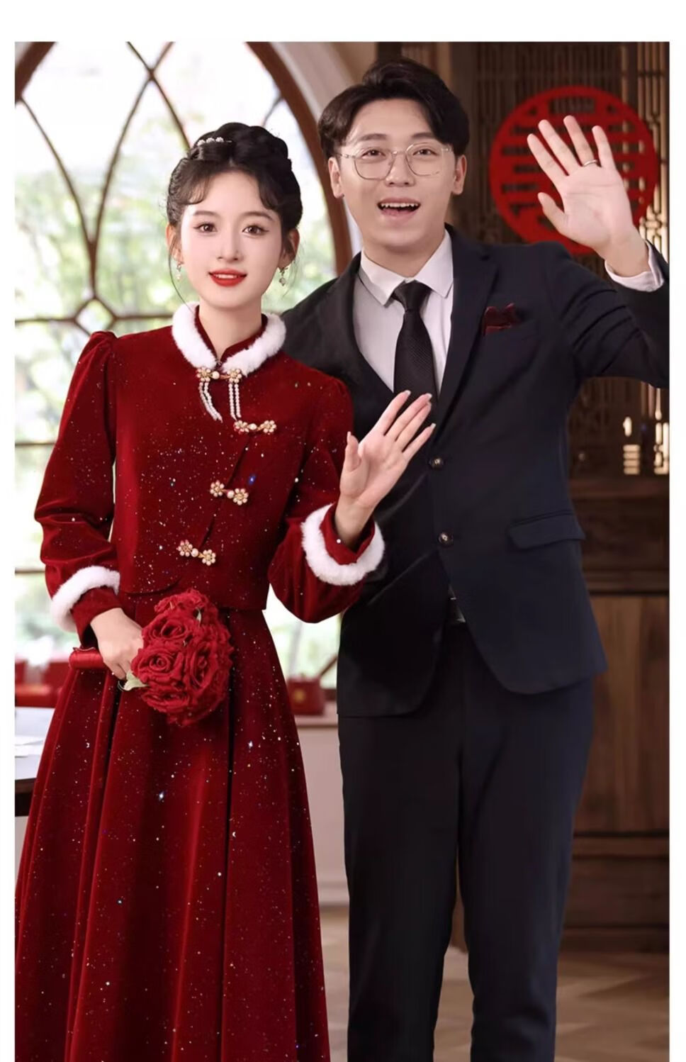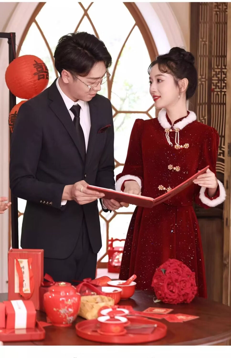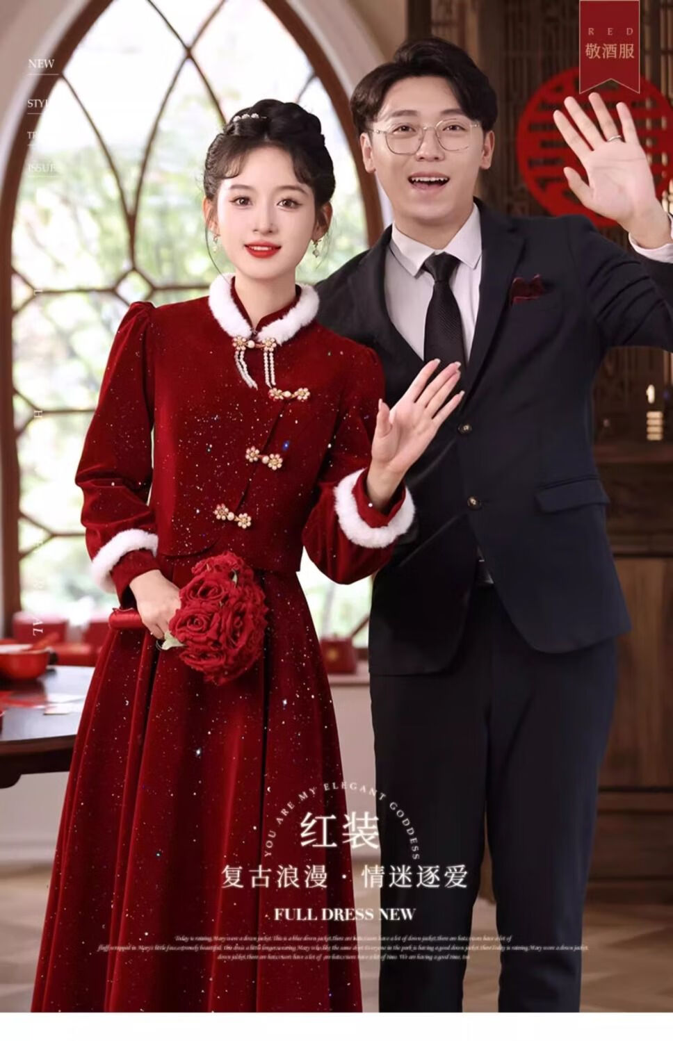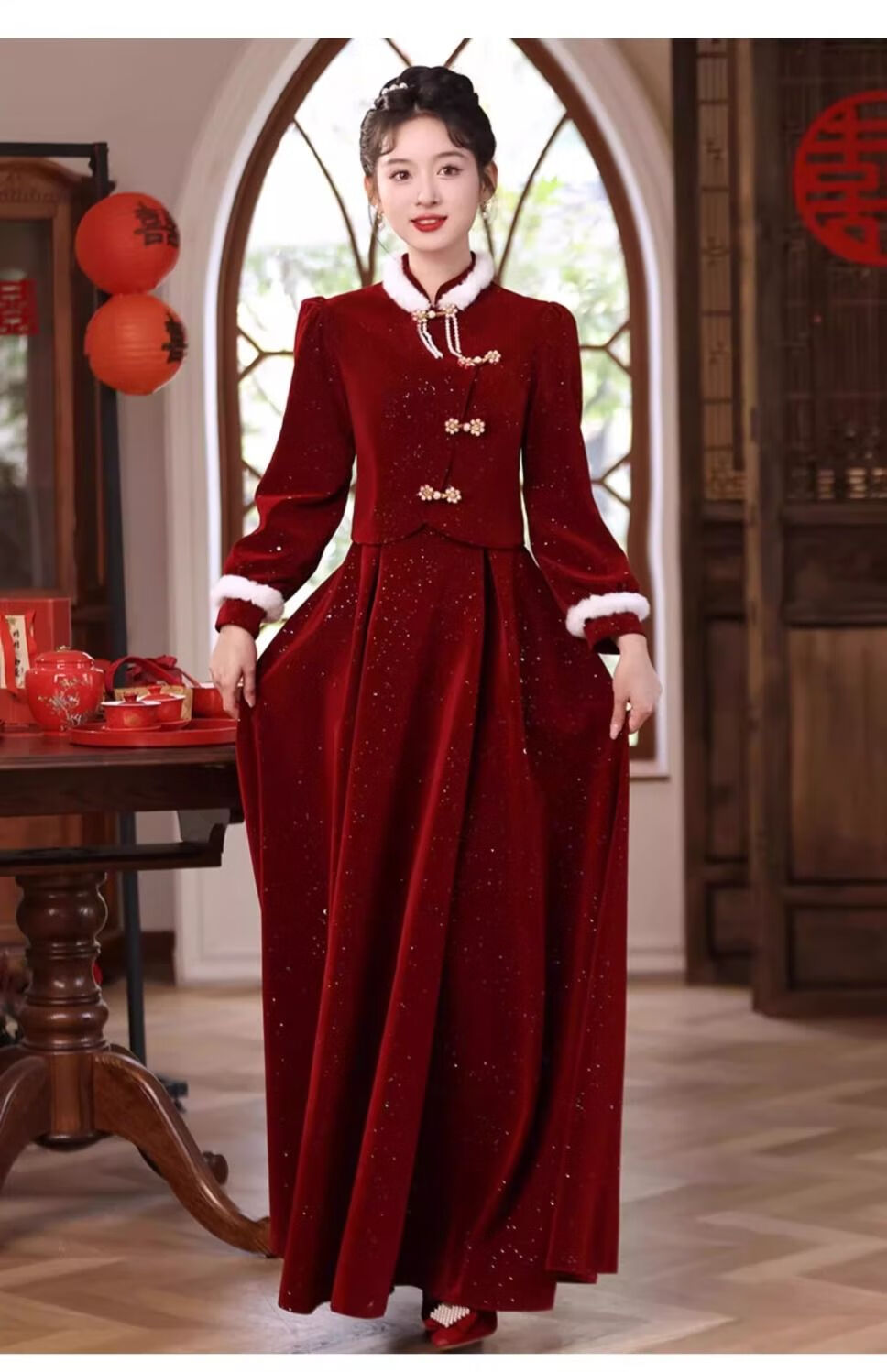 Pierre Cardin New Chinese Toast Wear 2025 New Bride Autumn and Winter Wedding Red Engagement Dress Skirt Women's Winter Velvet Cheongsam Burgundy Winter Style L Recommended 105-115 Jin Jin equals 0.5 kg
