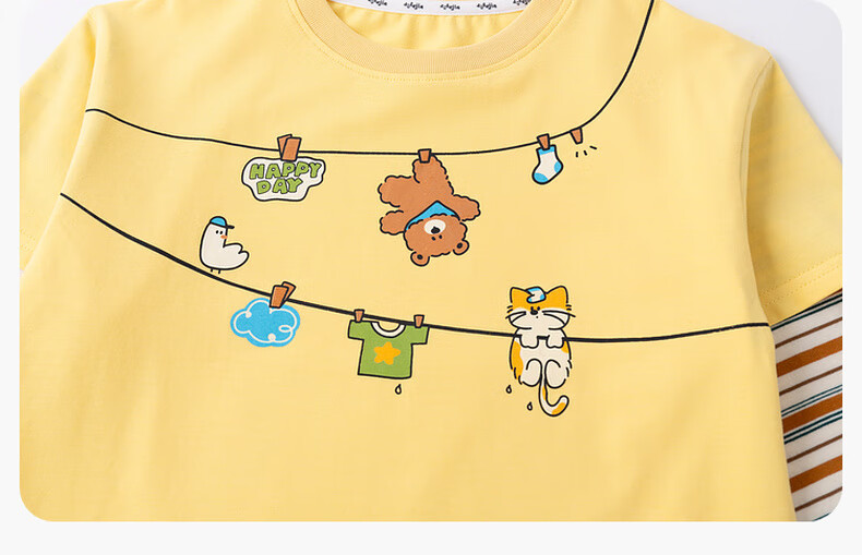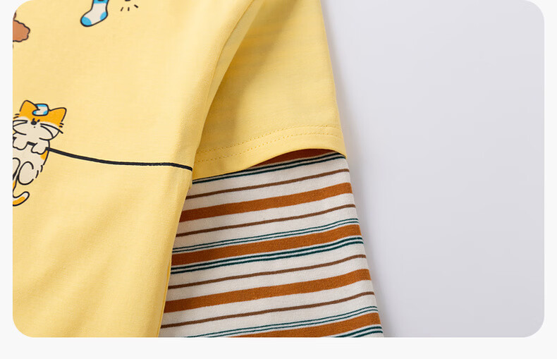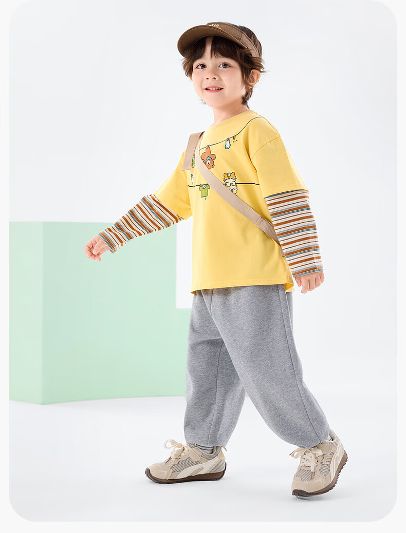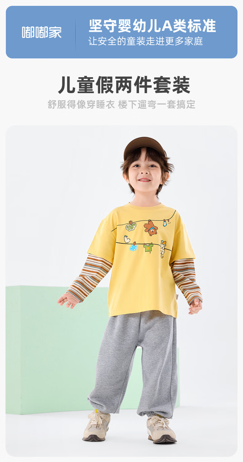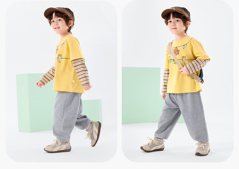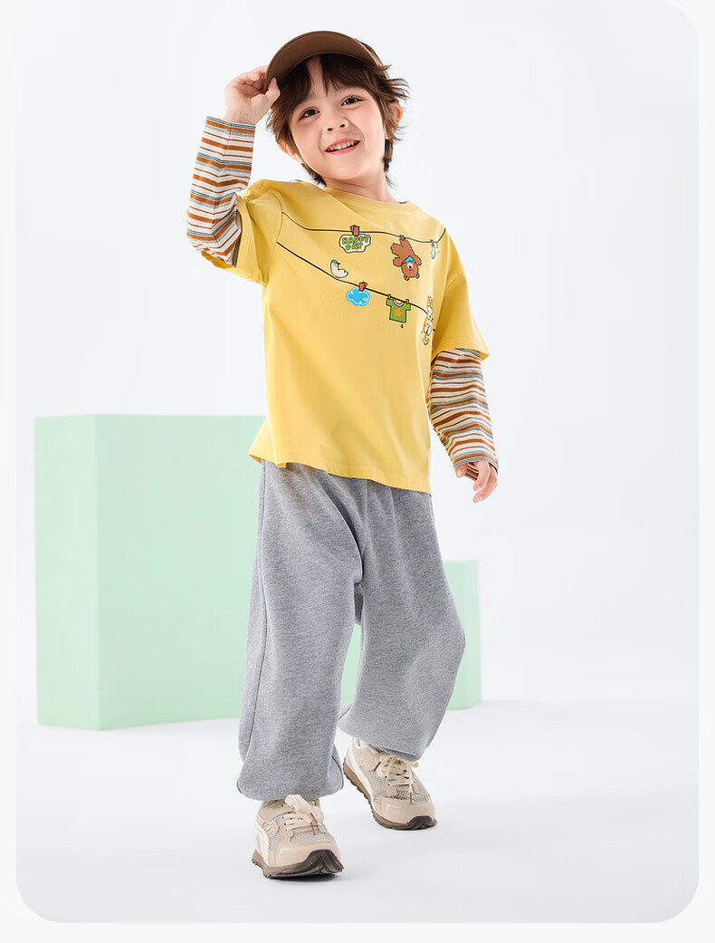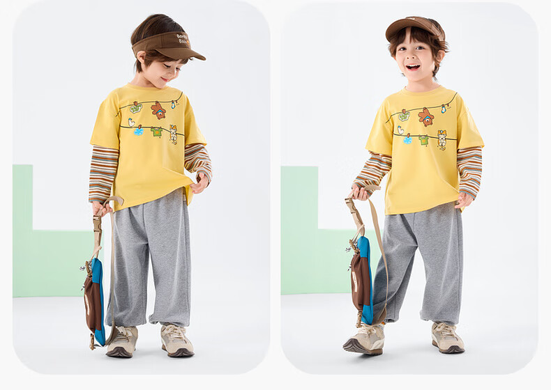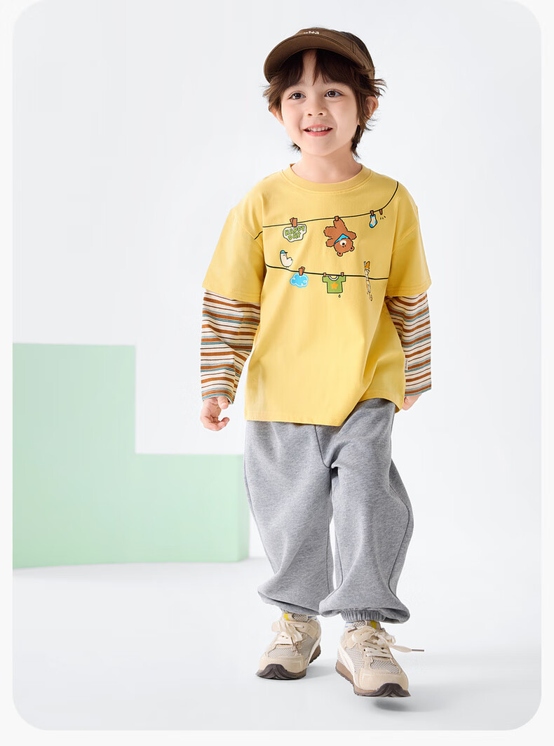 Dudujia Boys Spring Casual Suit Children's Fake Two-piece Long-sleeved Spring Clothes Girls Loose Outdoor Pants Children's Clothing Two-piece Set Creamy Yellow 80