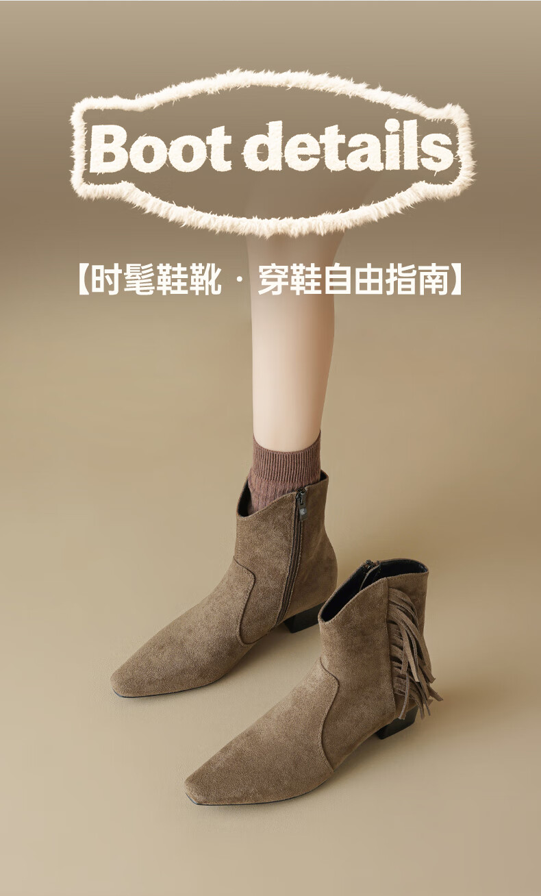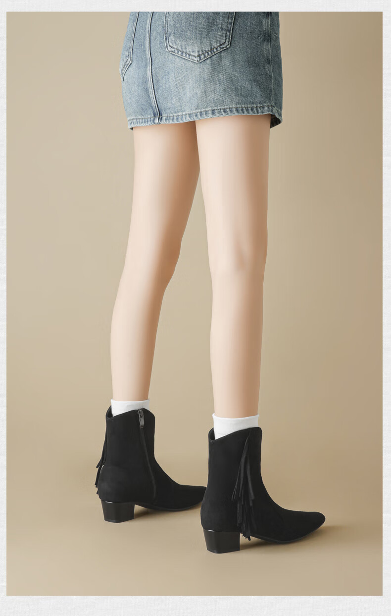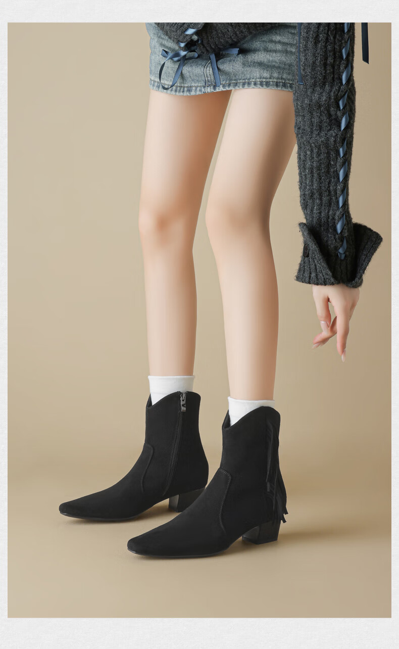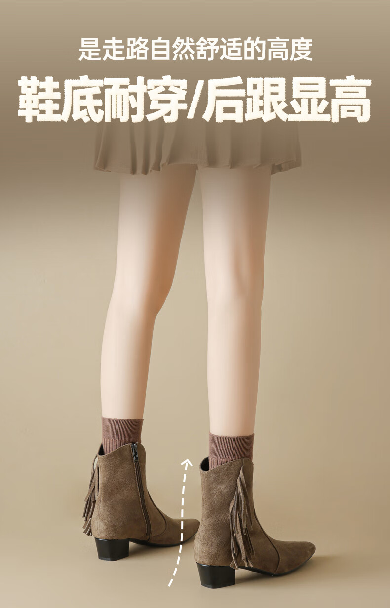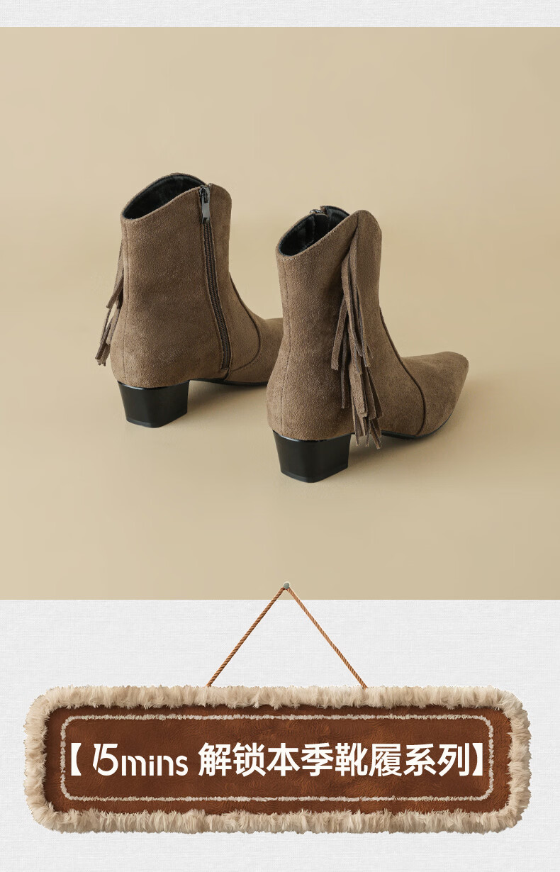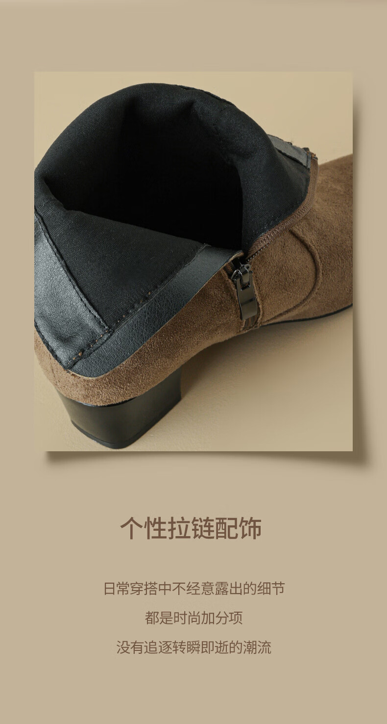 15MINS Fashion Boots Women's 2026 Autumn and Winter New Retro Versatile Thick Sole Increases Tightness and Slimming Legs Long Casual Chelsea Short Boots D2000BQ5 Black 38