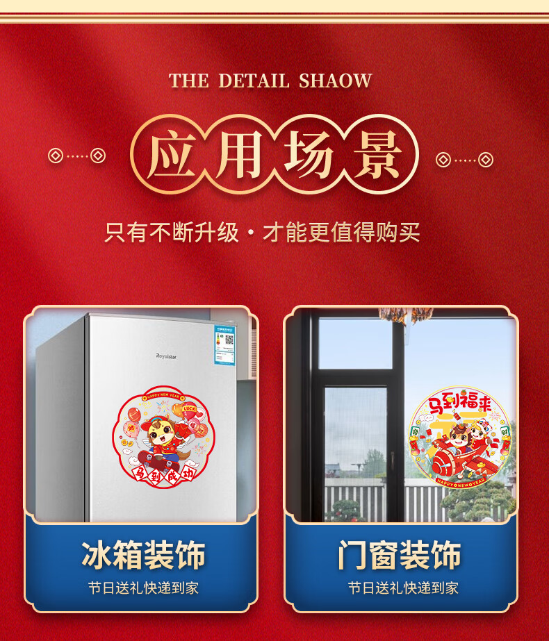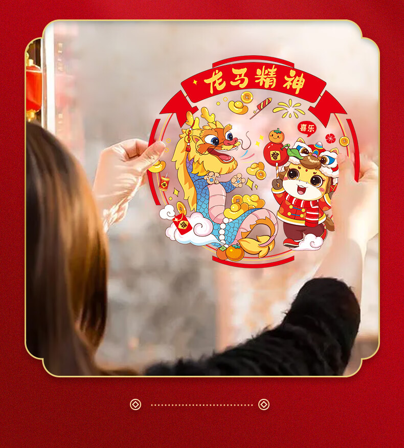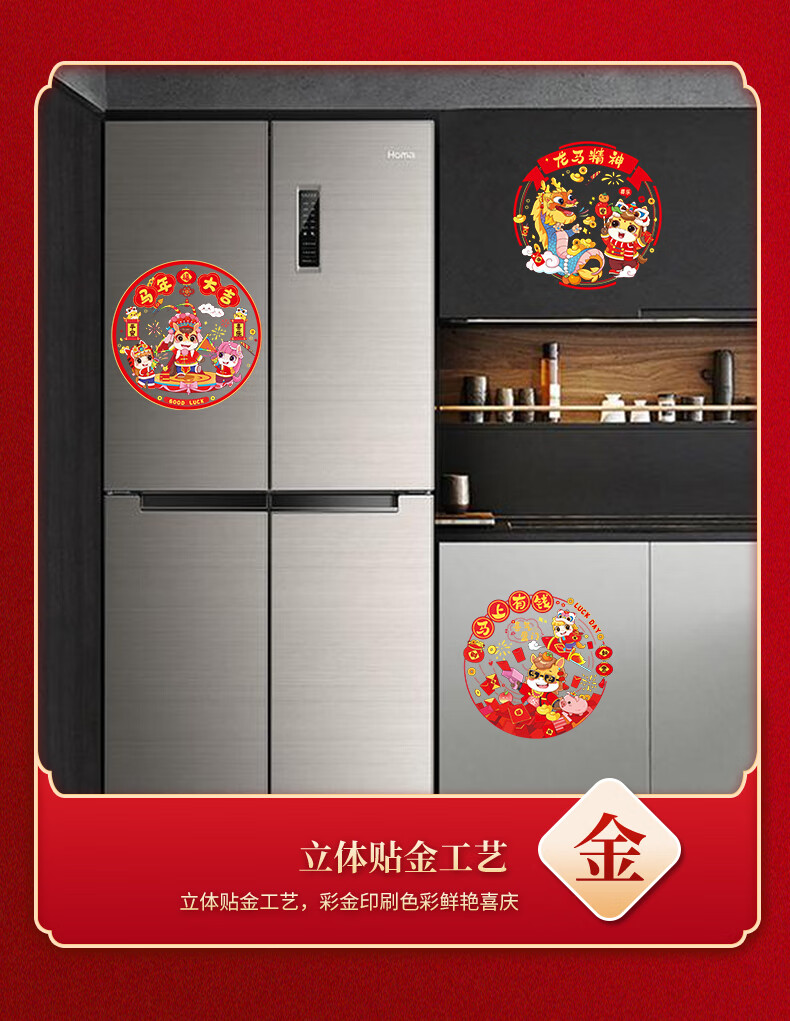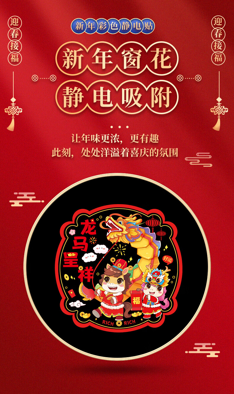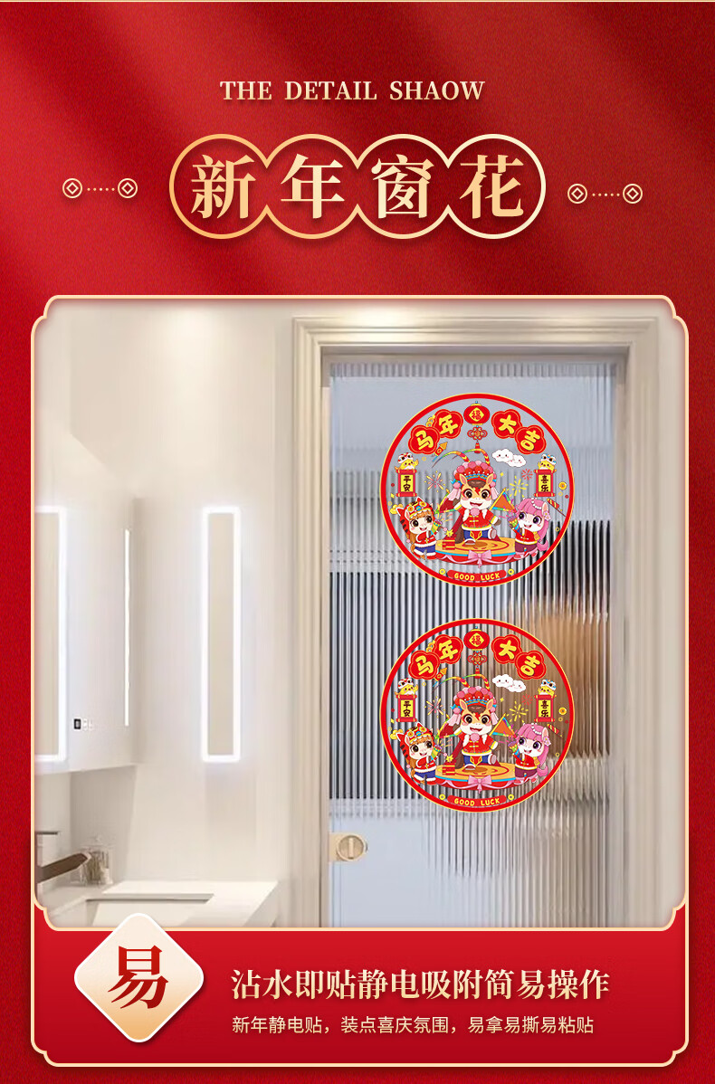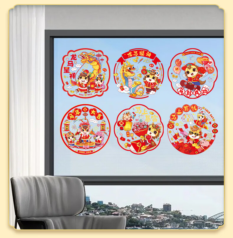 Year of the Horse Window Decoration Static Sticker 2026 New New Year Blessings Chinese New Year Glass Kitchen Spring Festival Decoration Supplies Cartoon Horse Year of the Horse Window Decoration 10 sheets Five styles shipped in pairs Diameter 34cm