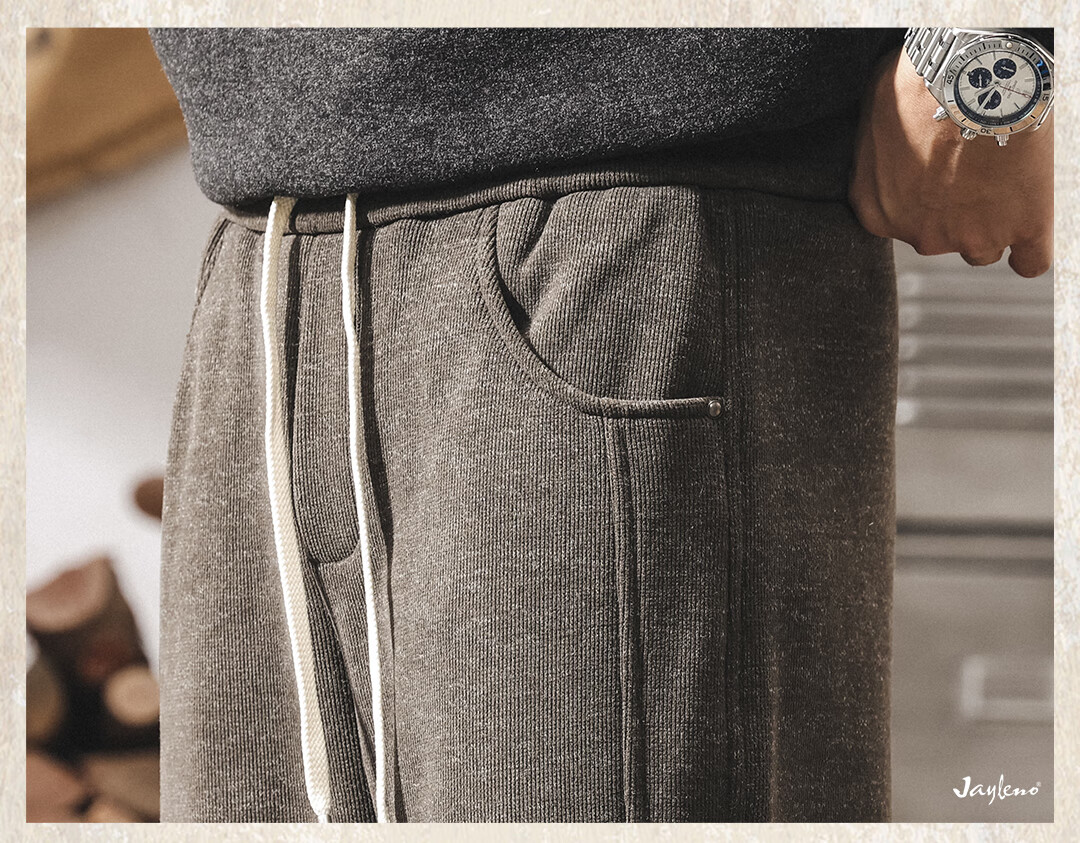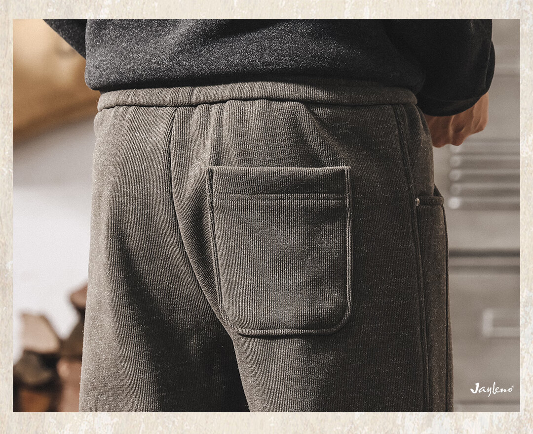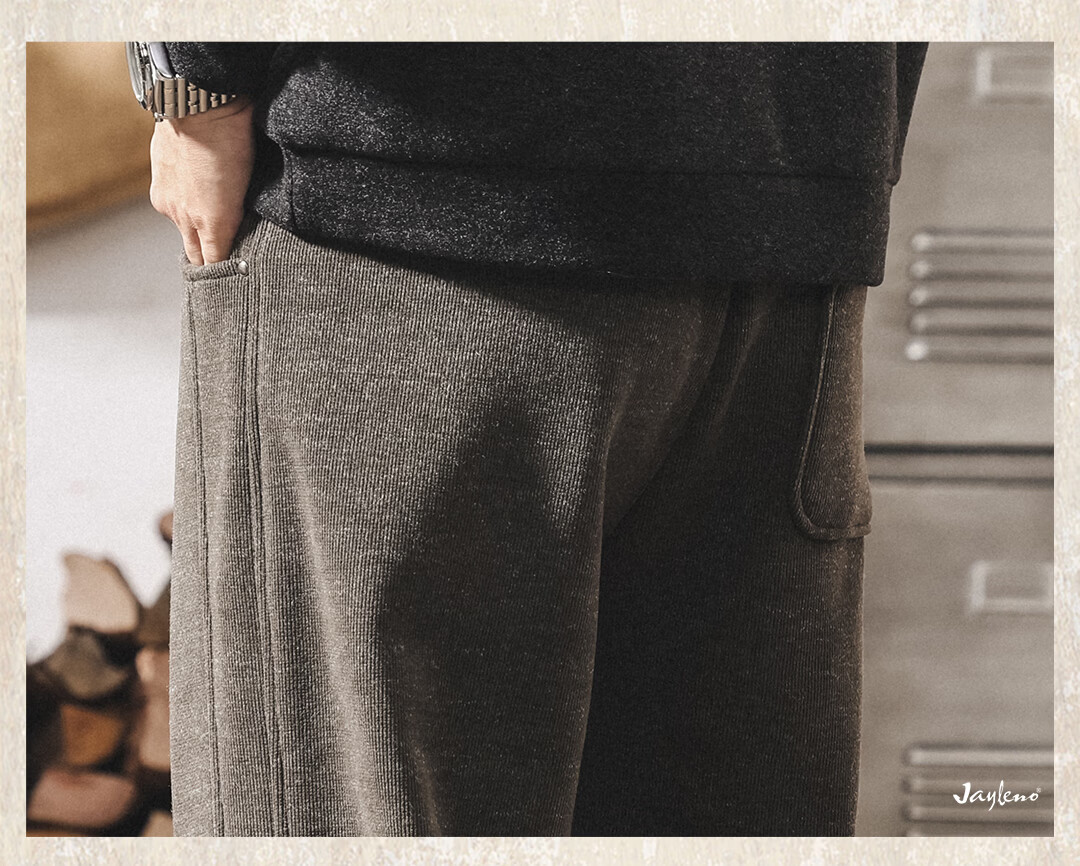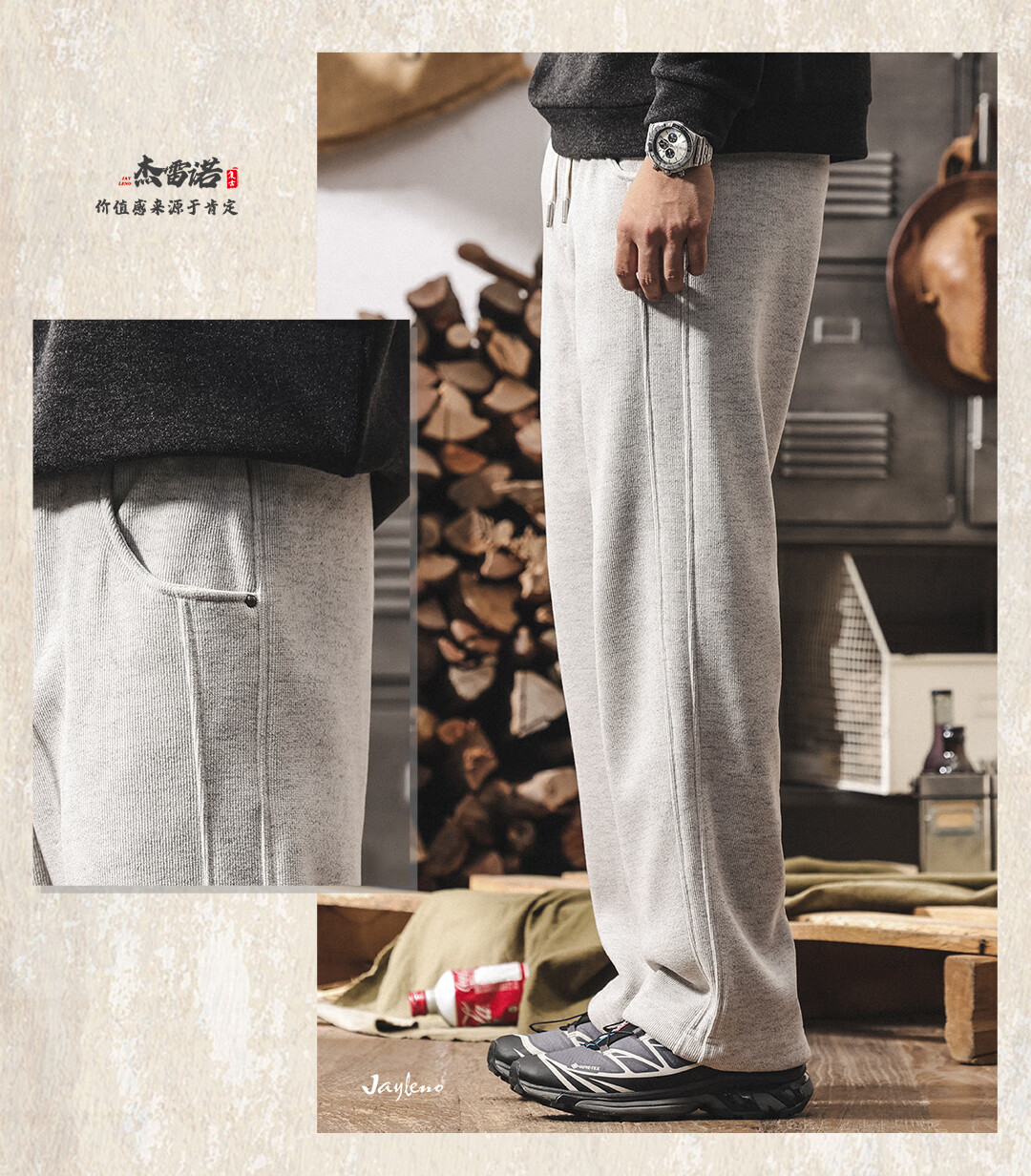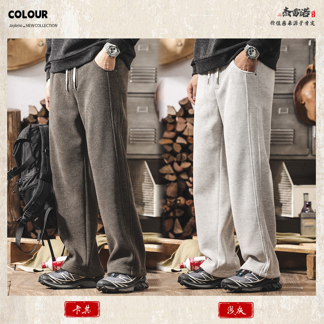 Jay Leno American retro heavyweight European cotton velvet knitted sweatpants men's plus velvet winter loose thickened warm straight casual pants for men khaki plus velvet 28 suitable for 95-110Jin Jin equals 0.5 kg