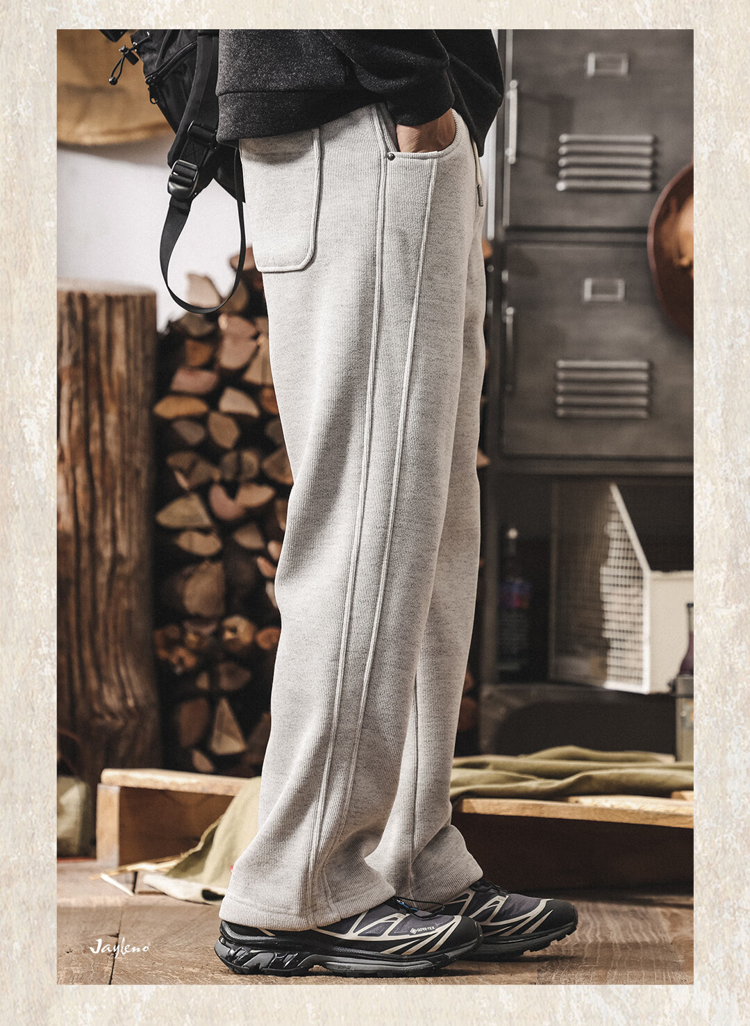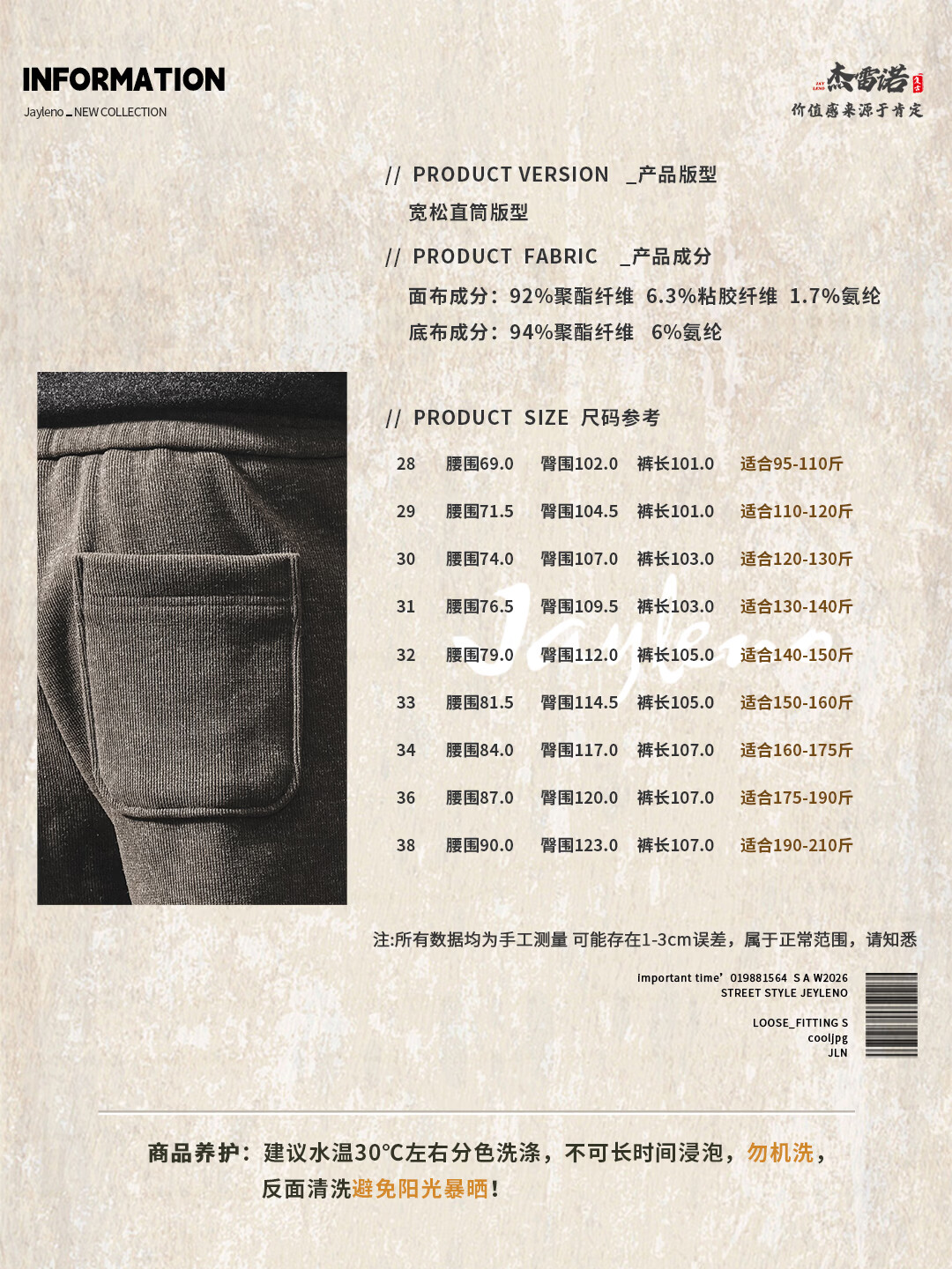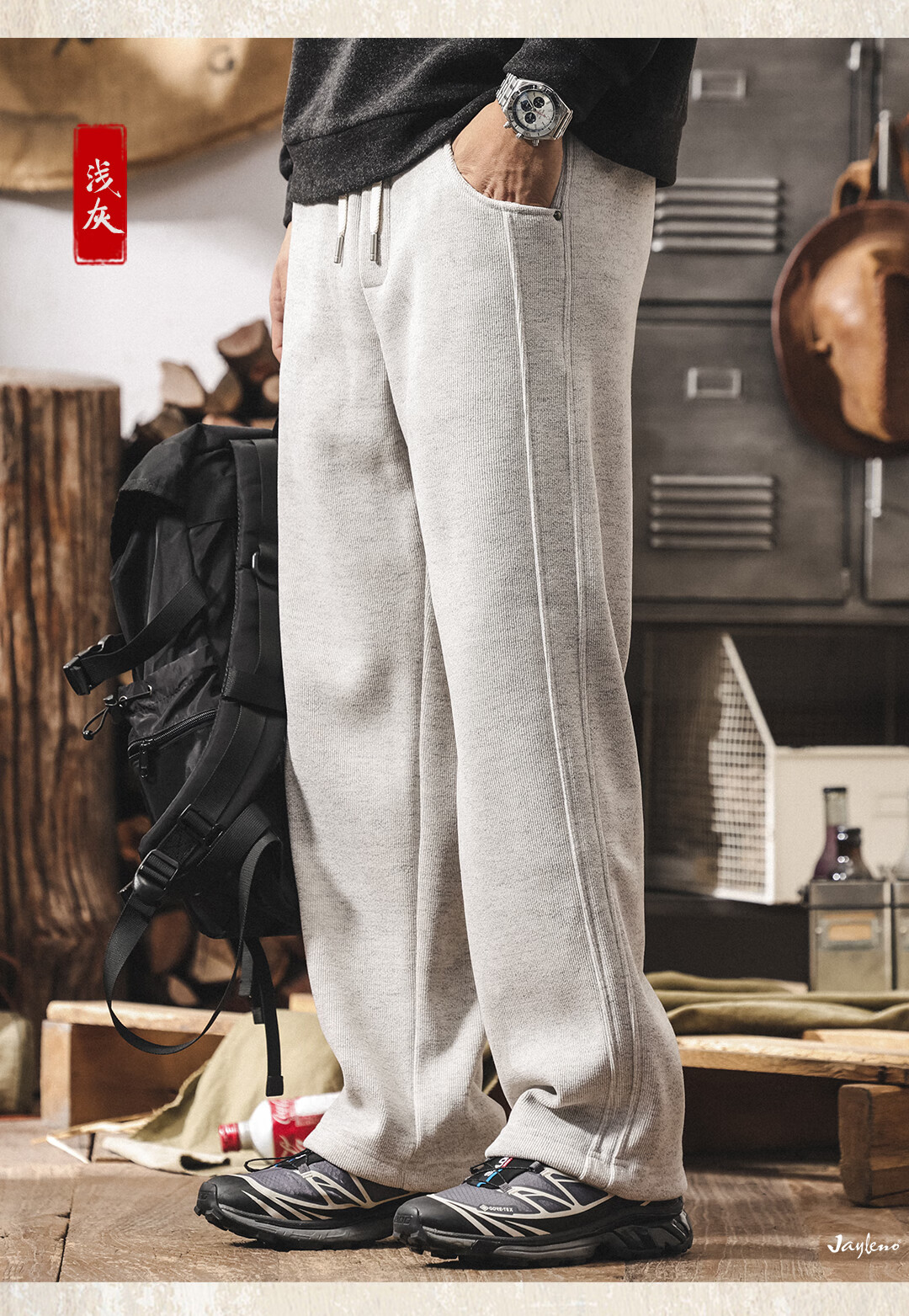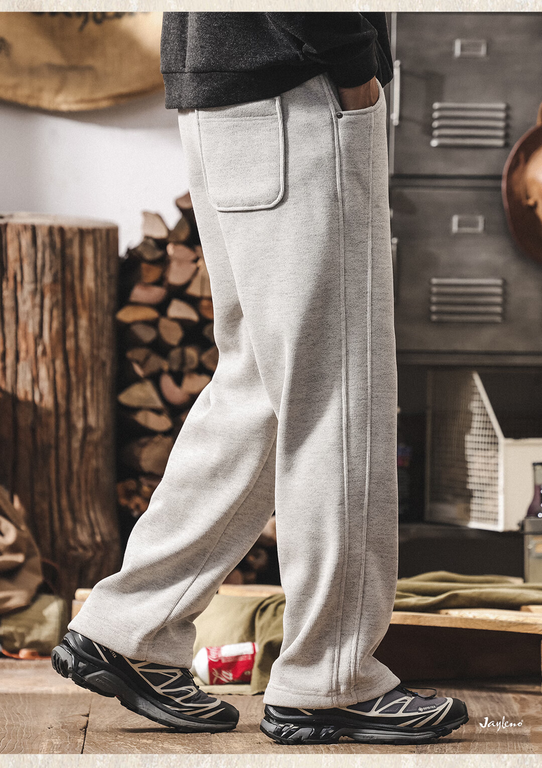 Jay Leno American retro heavyweight European cotton velvet knitted sweatpants men's plus velvet winter loose thickened warm straight casual pants for men khaki plus velvet 28 suitable for 95-110Jin Jin equals 0.5 kg