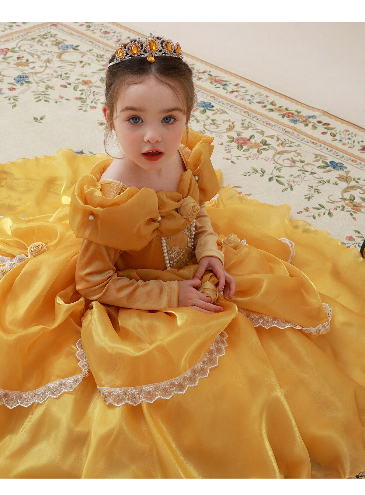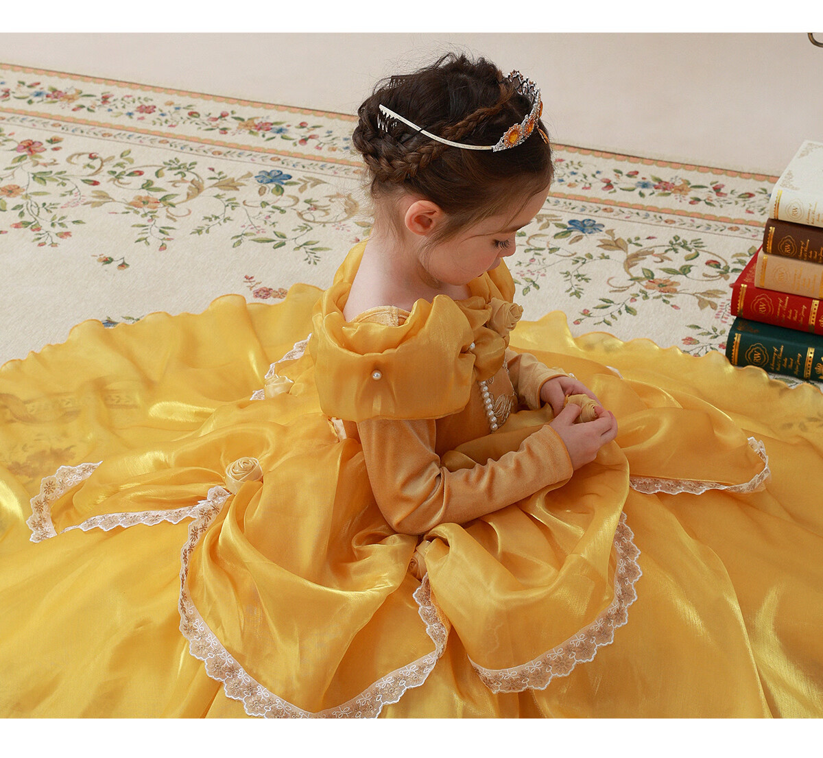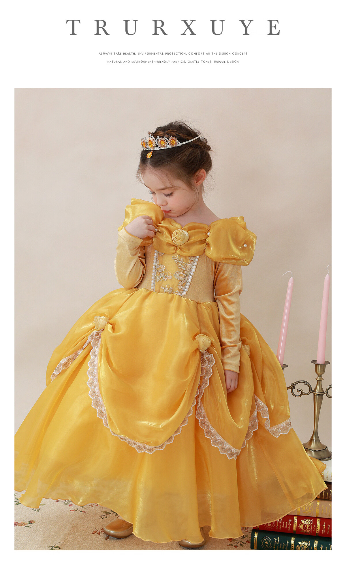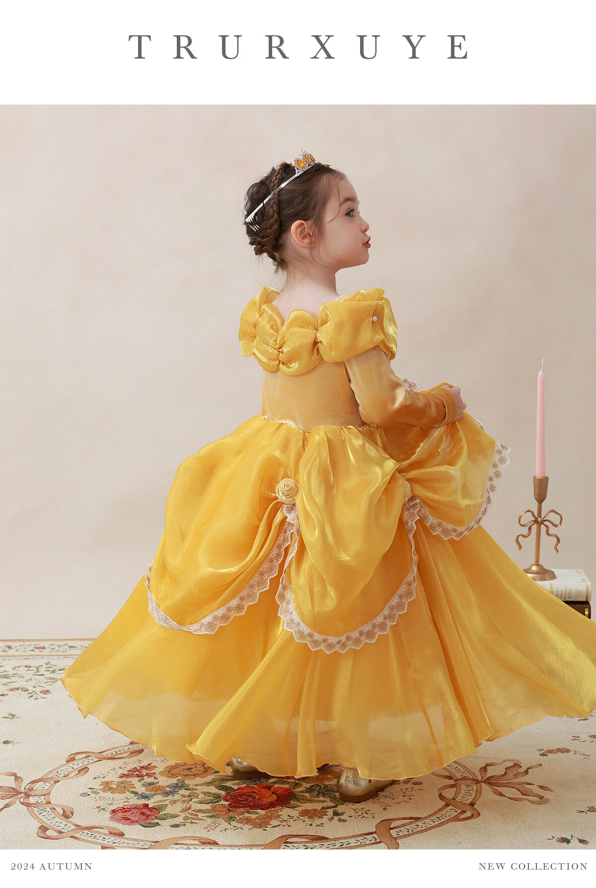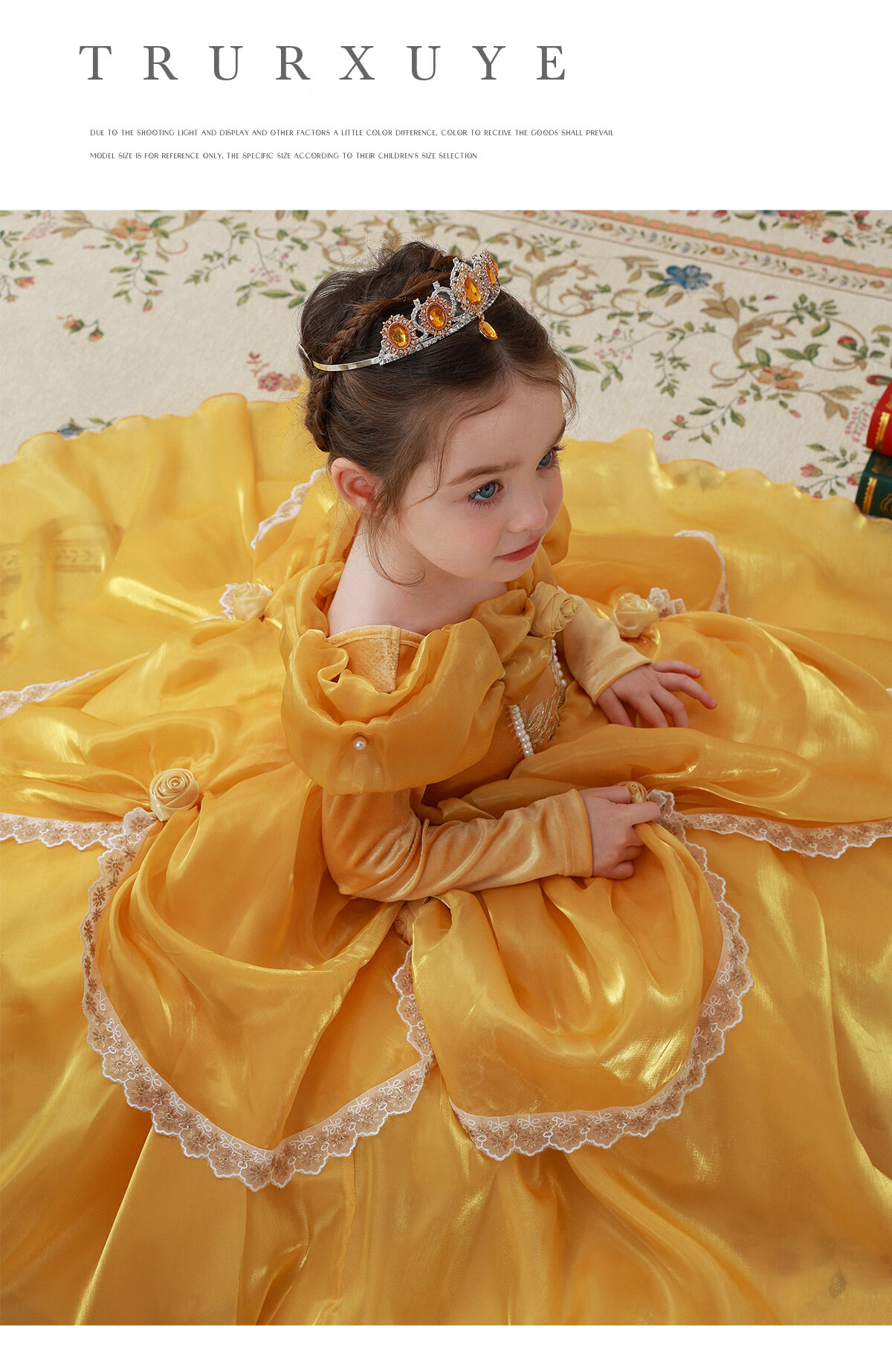 TRURXUYE Chuxu Girls Autumn and Winter Retro Embroidery Palace Style Belle Princess Dress Puff Sleeve Birthday Dress Performance Dress Playful Belle Princess Dress 100 Sizes