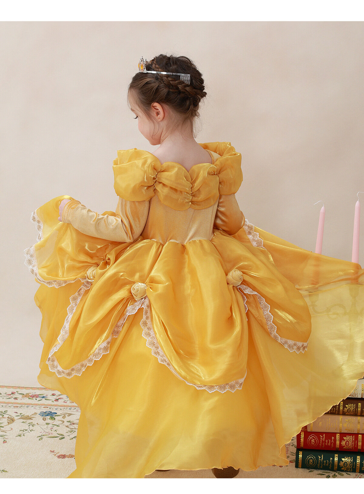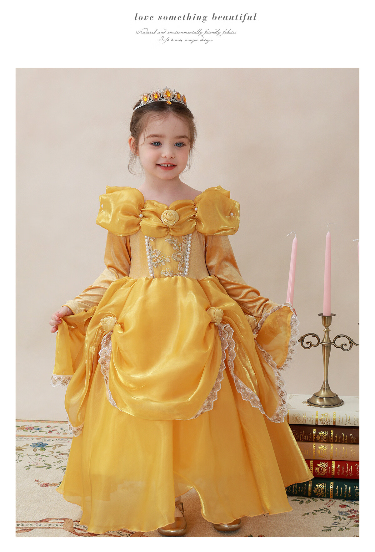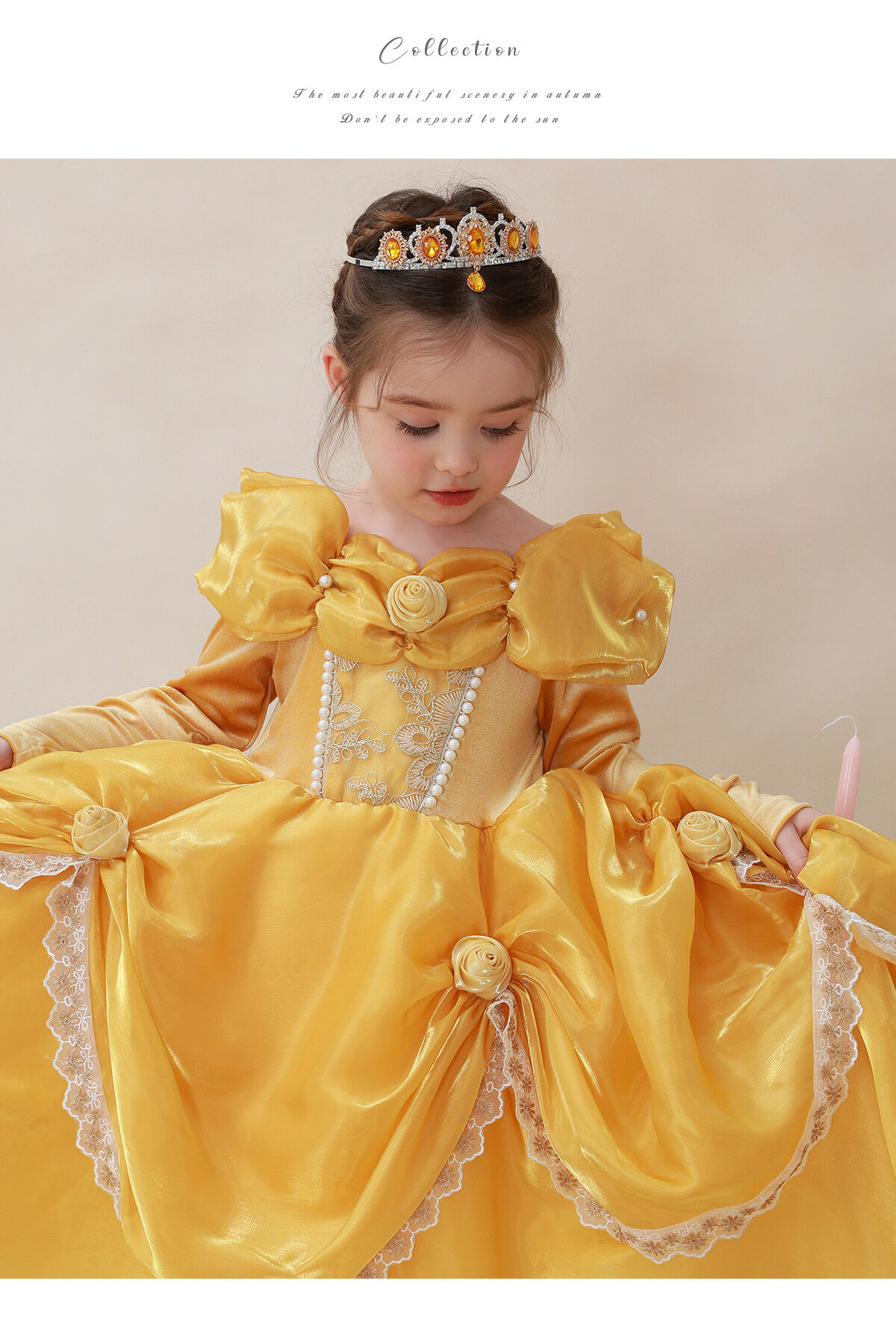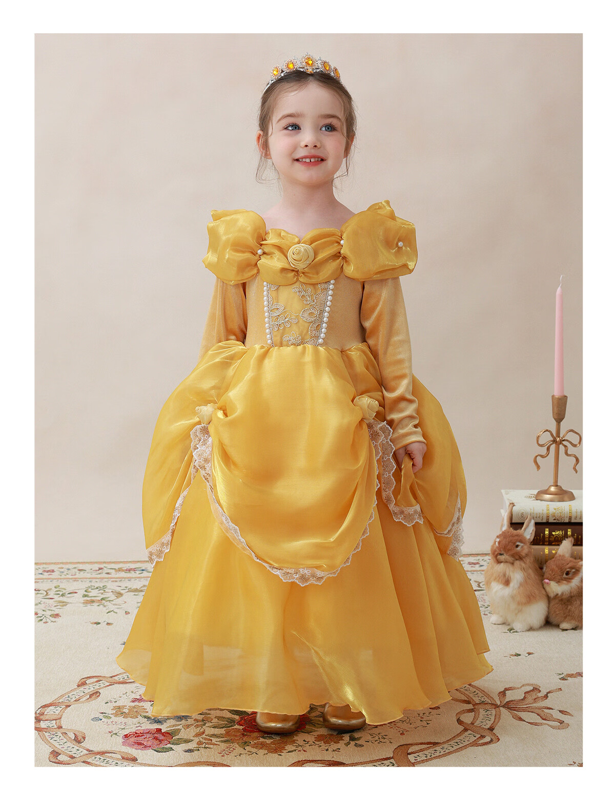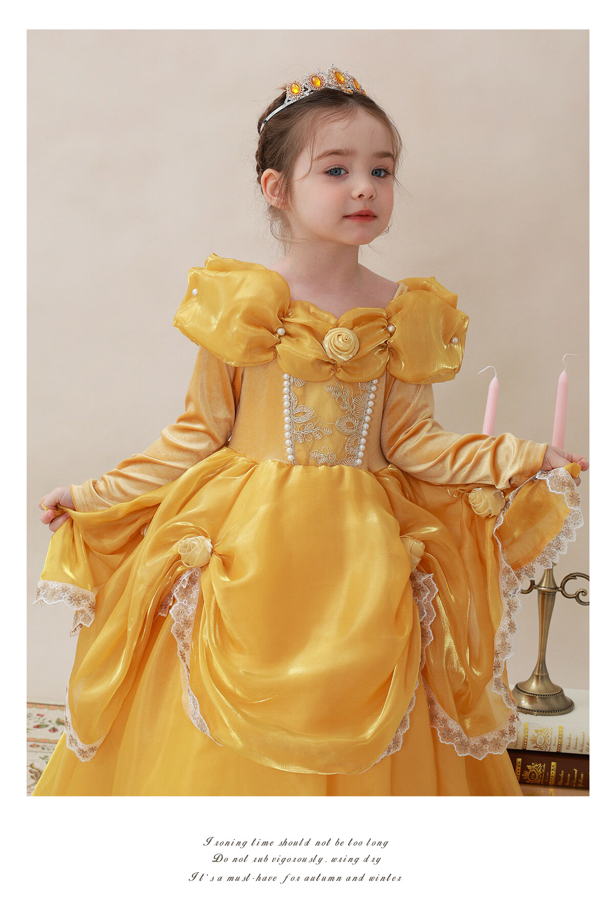 TRURXUYE Chuxu Girls Autumn and Winter Retro Embroidery Palace Style Belle Princess Dress Puff Sleeve Birthday Dress Performance Dress Playful Belle Princess Dress 100 Sizes
