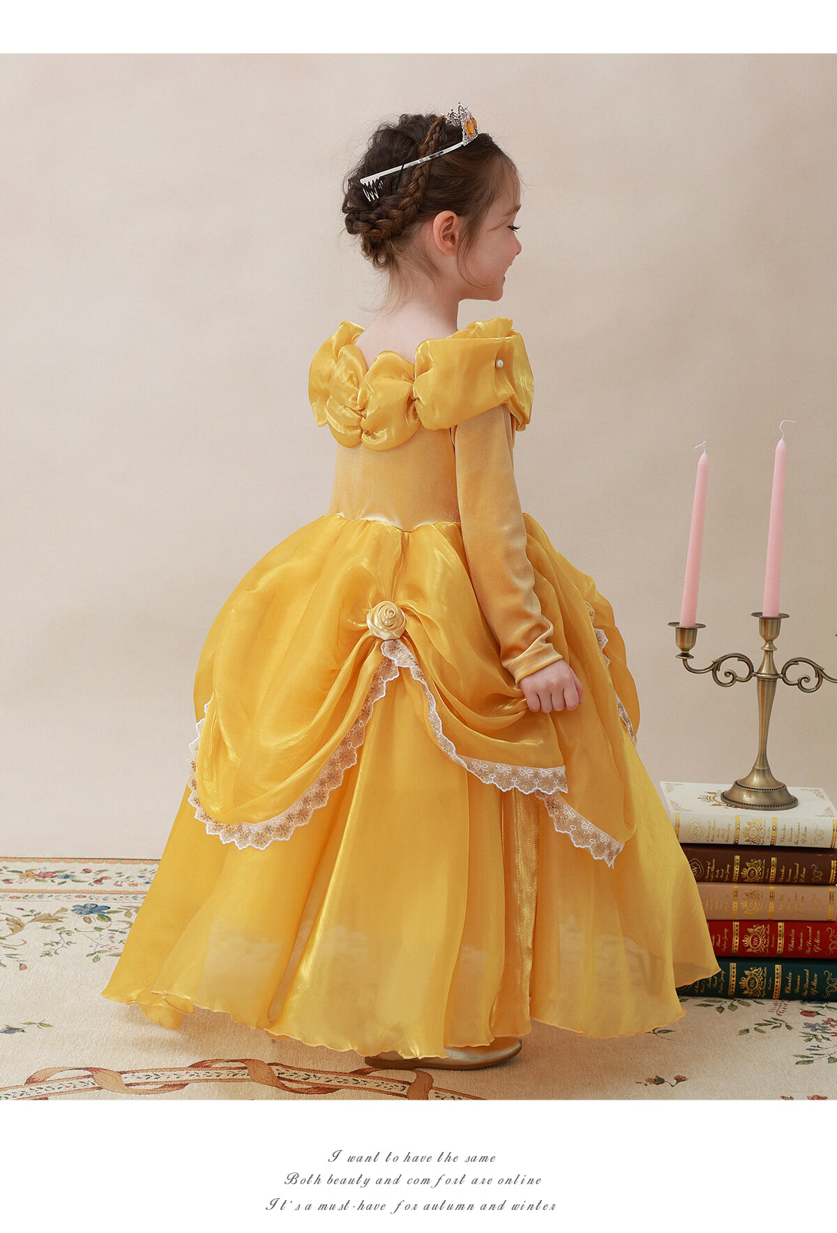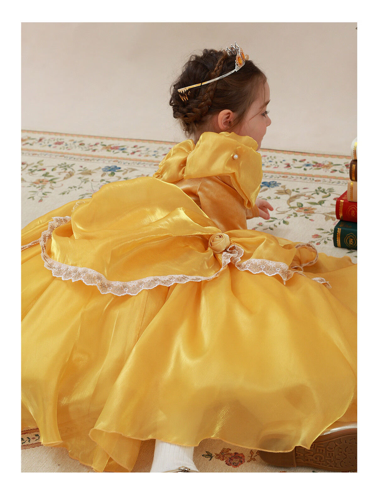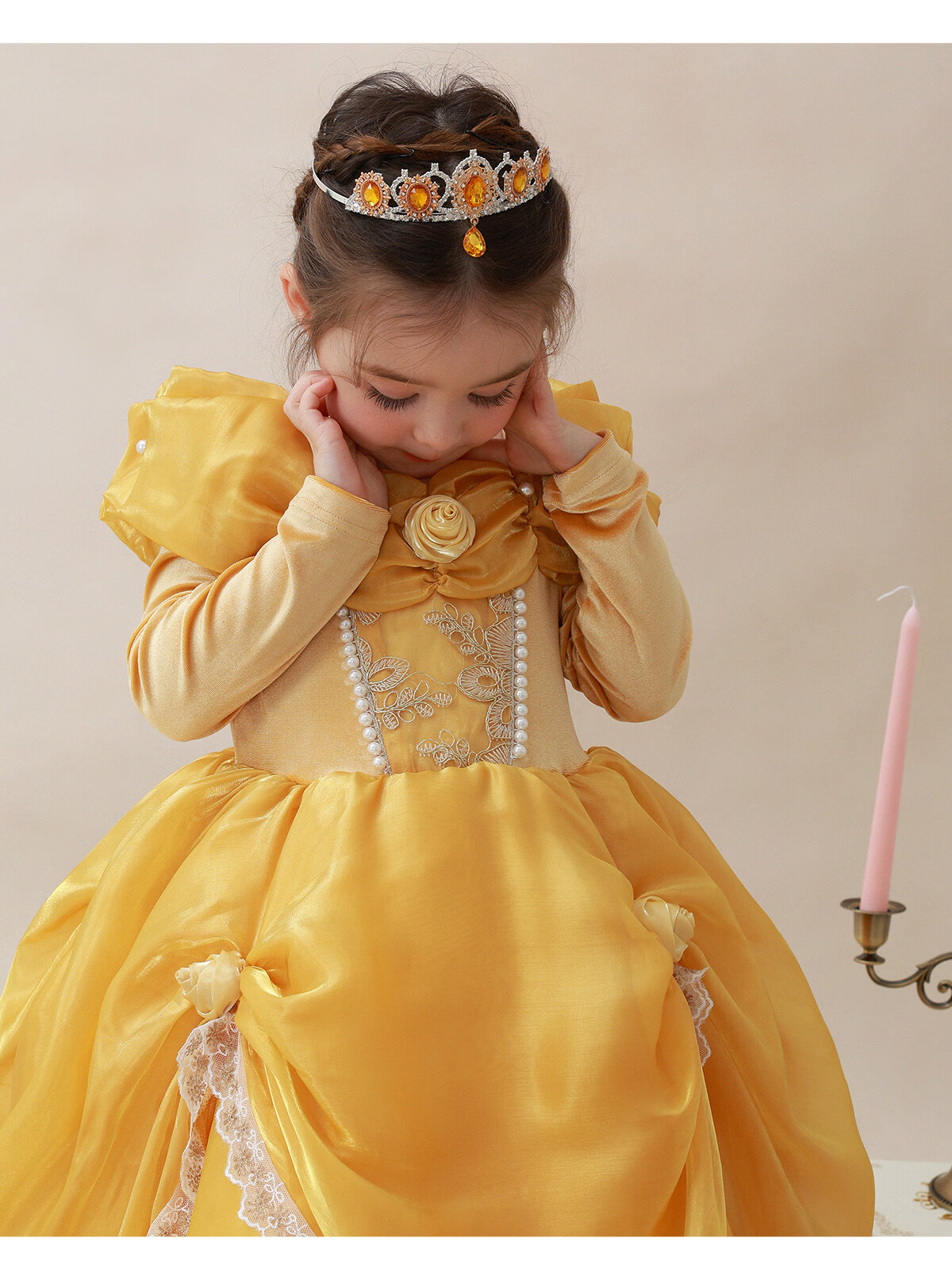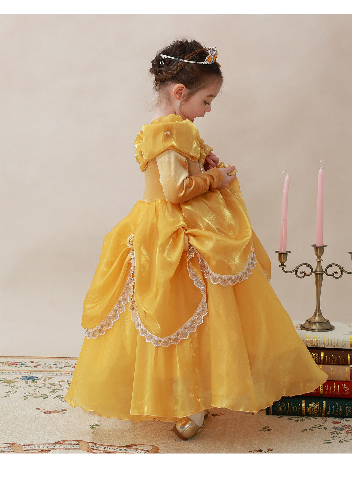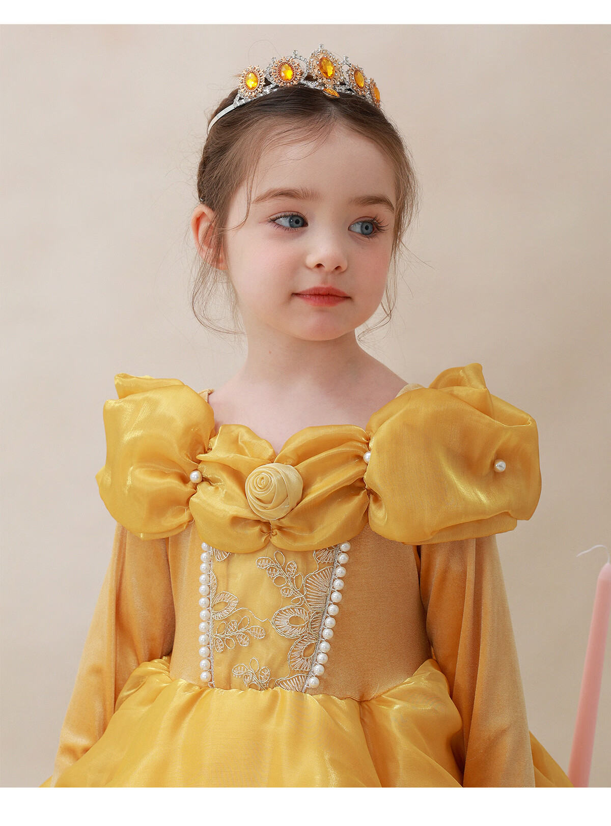 TRURXUYE Chuxu Girls Autumn and Winter Retro Embroidery Palace Style Belle Princess Dress Puff Sleeve Birthday Dress Performance Dress Playful Belle Princess Dress 100 Sizes
