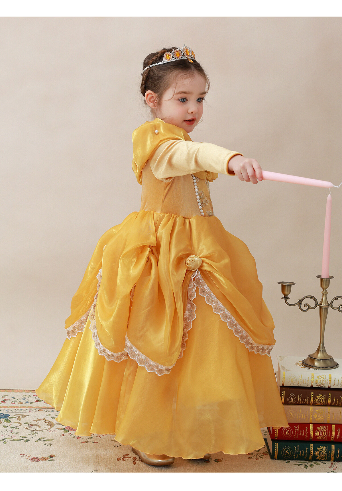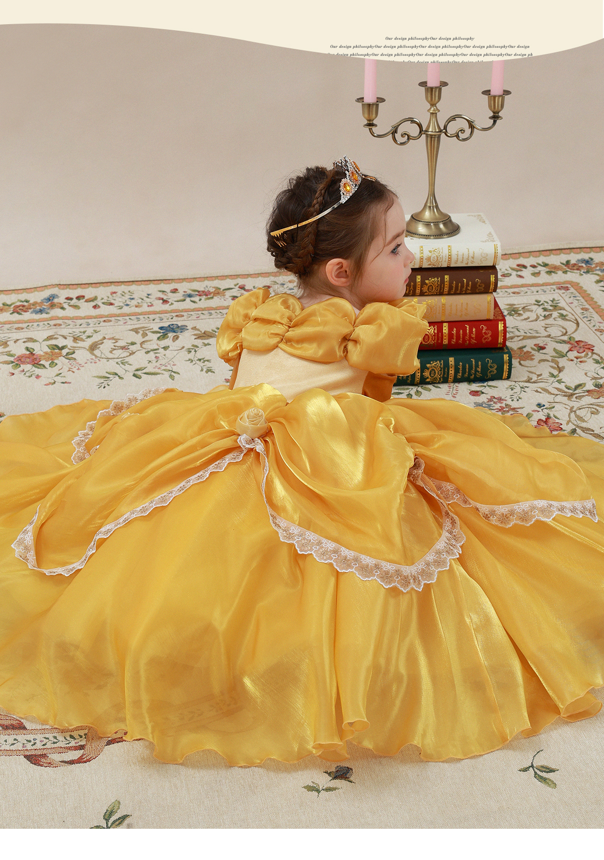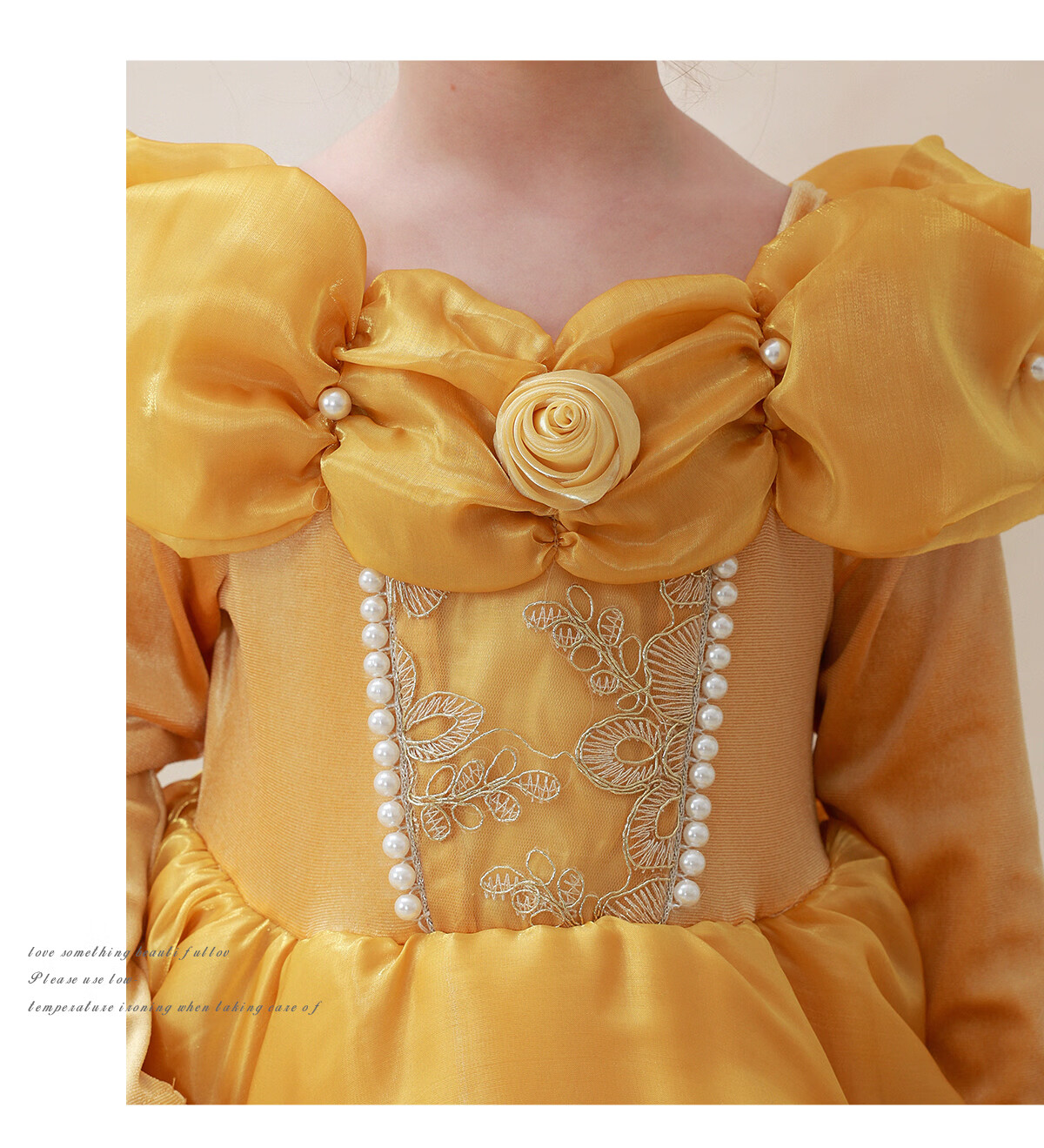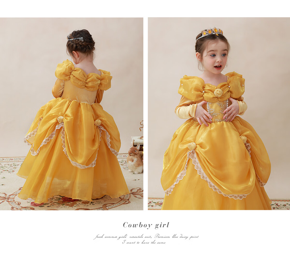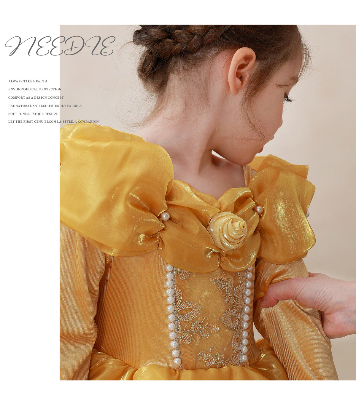 TRURXUYE Chuxu Girls Autumn and Winter Retro Embroidery Palace Style Belle Princess Dress Puff Sleeve Birthday Dress Performance Dress Playful Belle Princess Dress 100 Sizes