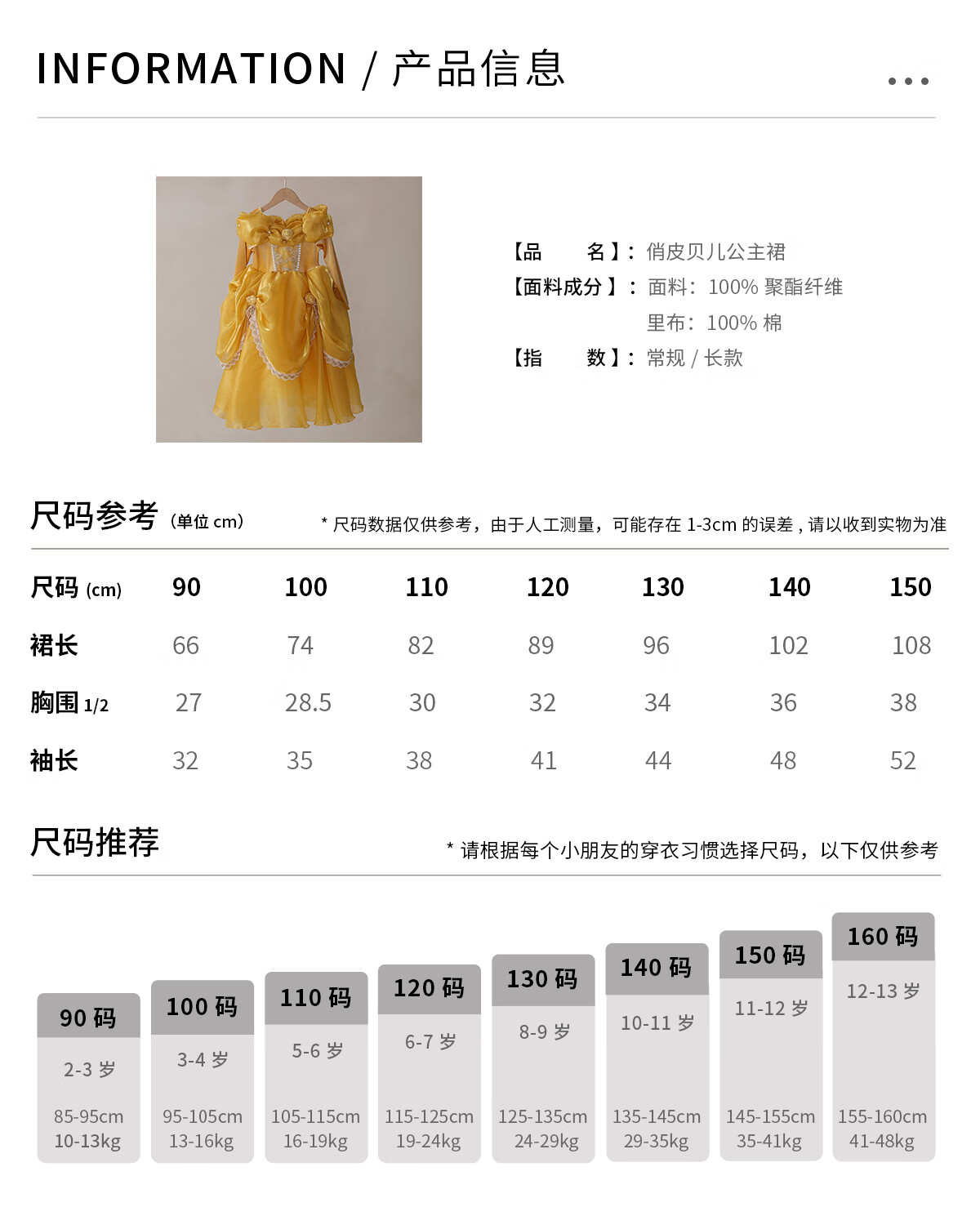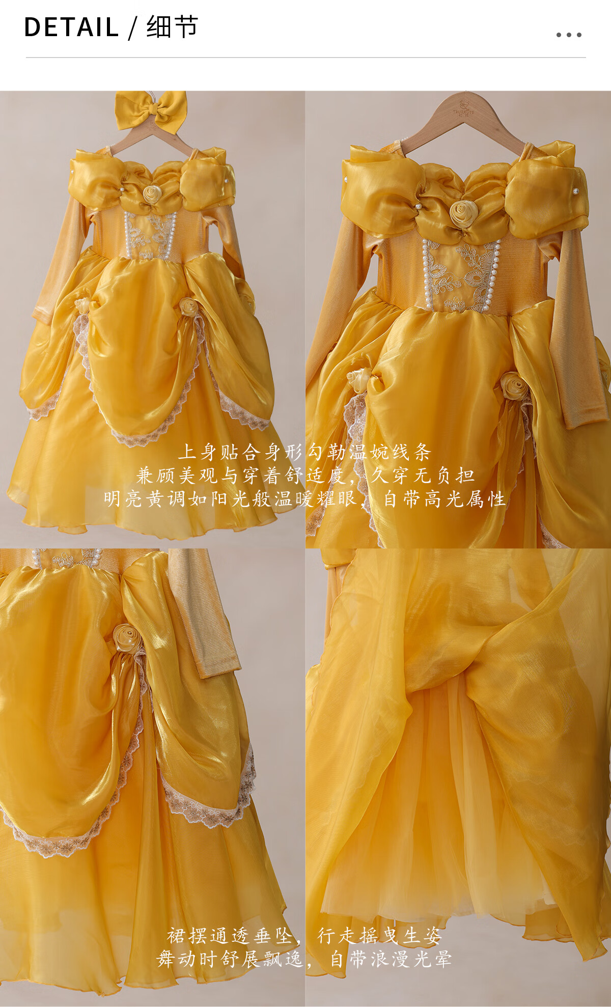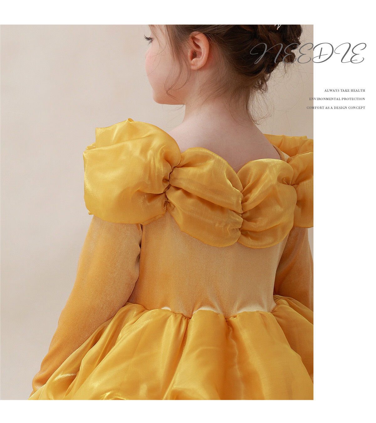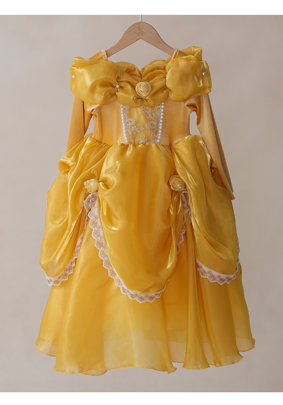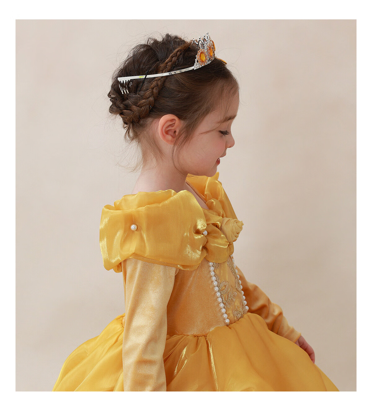 TRURXUYE Chuxu Girls Autumn and Winter Retro Embroidery Palace Style Belle Princess Dress Puff Sleeve Birthday Dress Performance Dress Playful Belle Princess Dress 100 Sizes