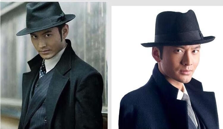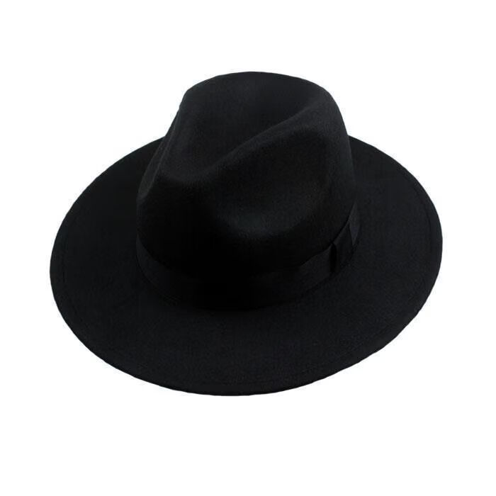 Blooming Qing Shanghai Xu Wenqiang's same style hat, men's British retro jazz hat, big brim top hat, Jackson stage performance, Xu Wenqiang style - black, adult size 58CM