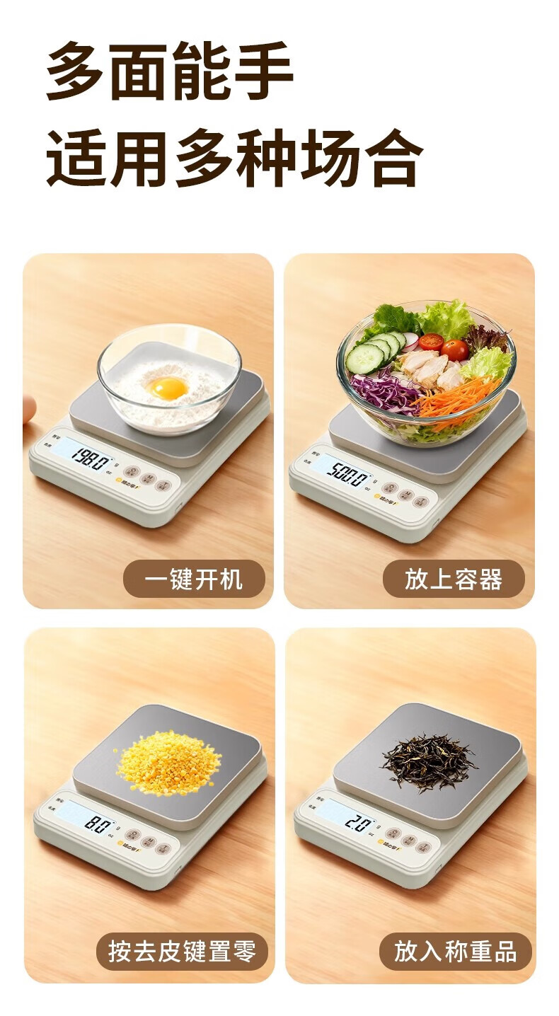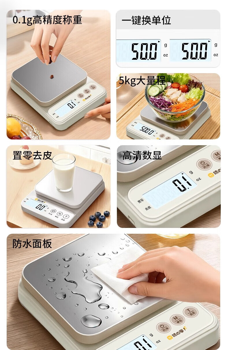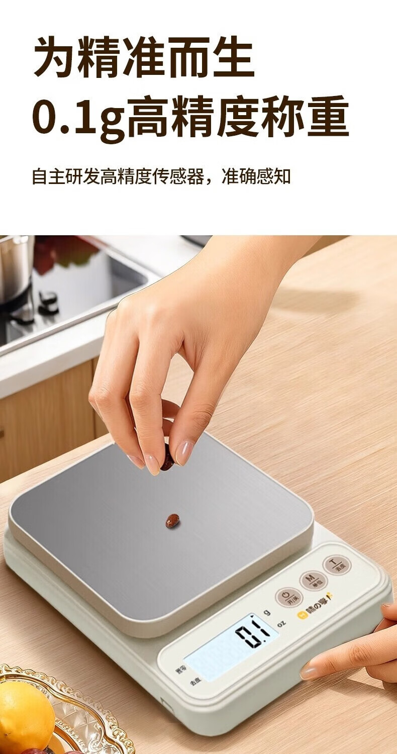 Small electronic scale weighing high-precision kitchen scale baking precision household commercial food scale 2025 new model 10kg/0.1g small white battery model backlight