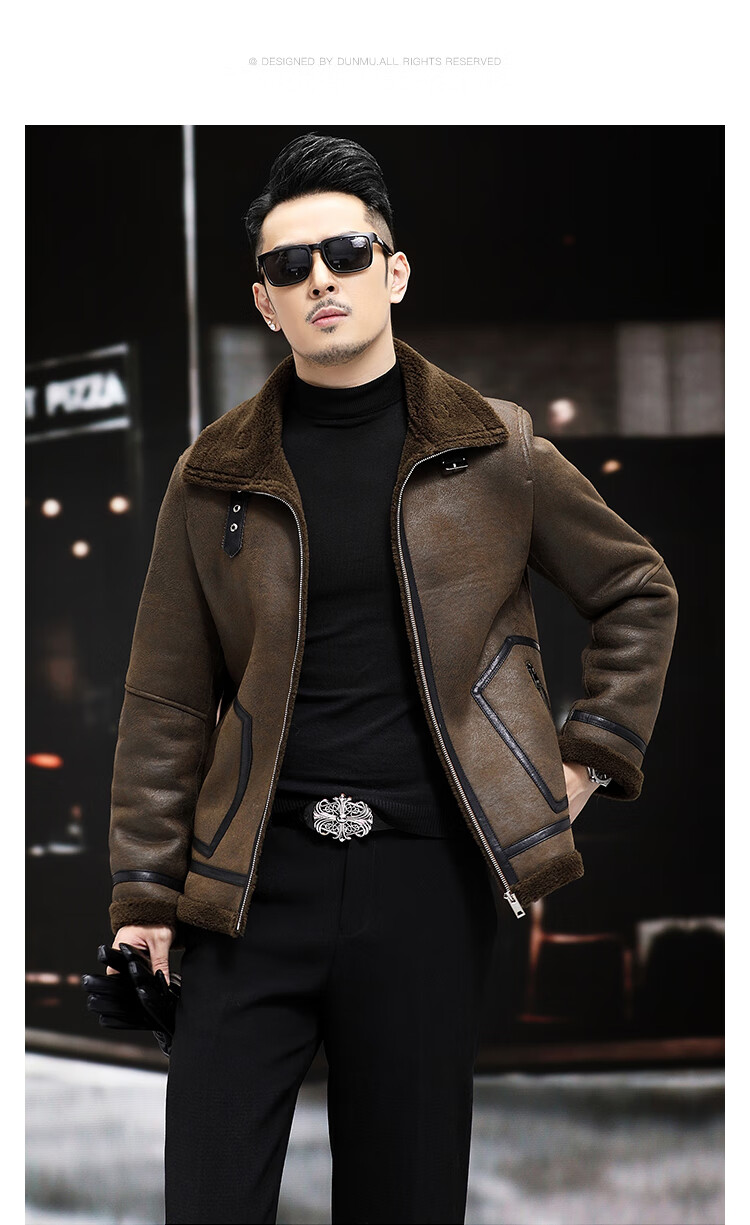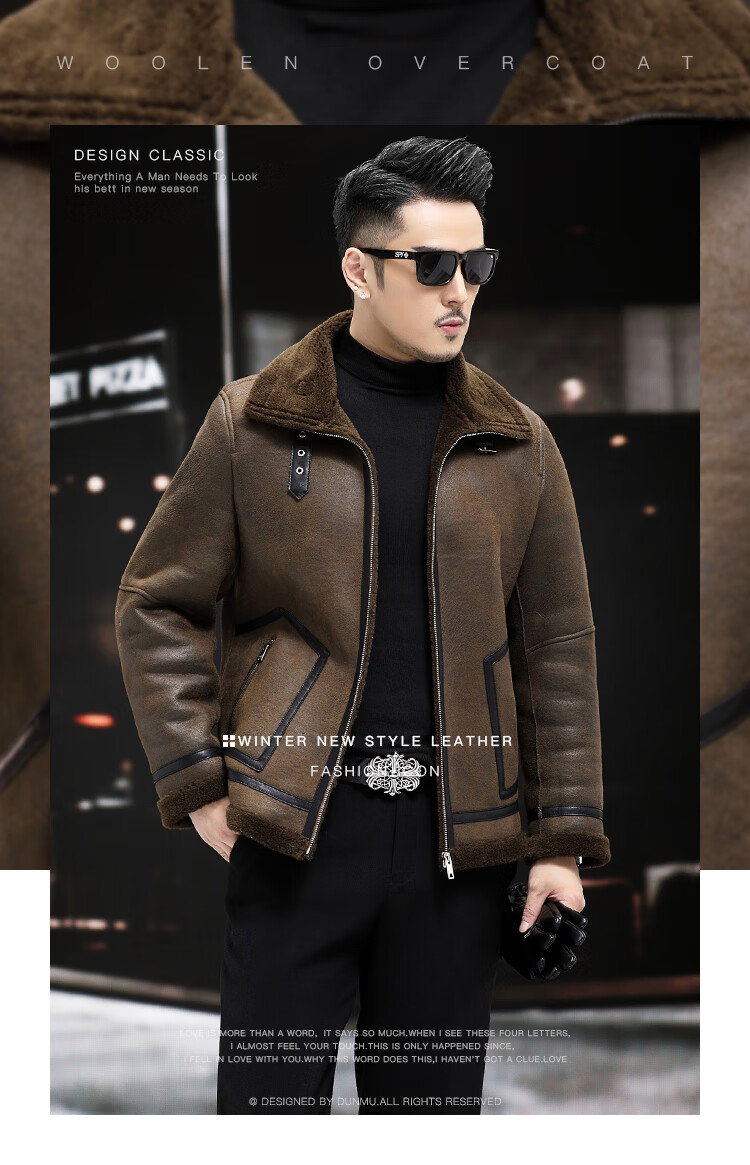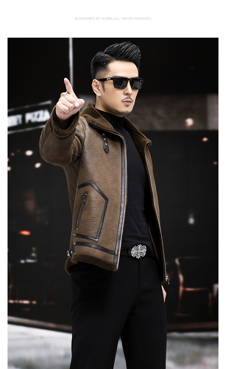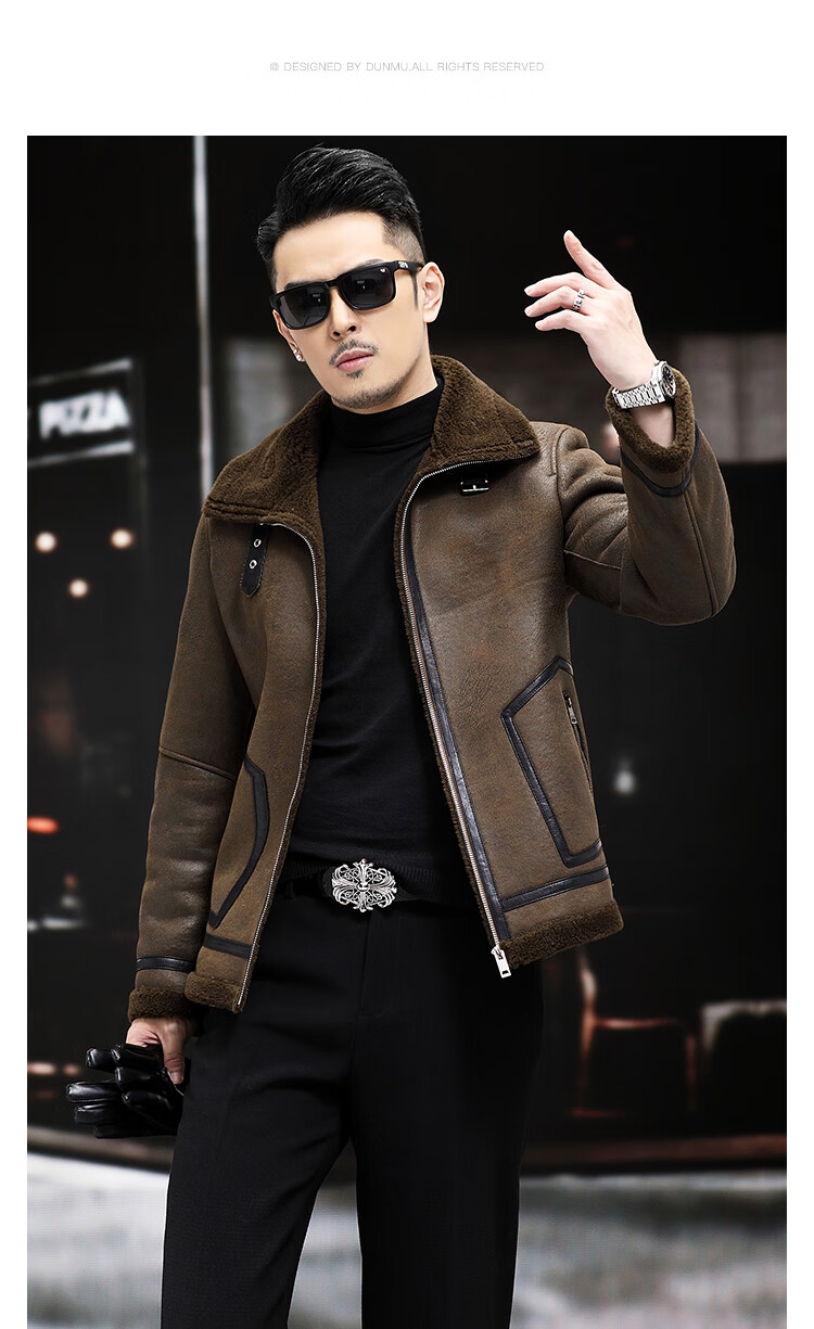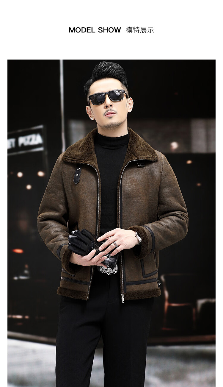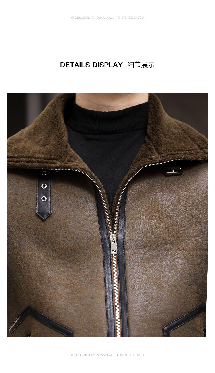 GOLDLION G+金利来羊剪男士毛皮外套新羔羊天鹅绒胶囊羊毛外套冬季皮夹克短 军咖 L 建议体重:110斤-125斤