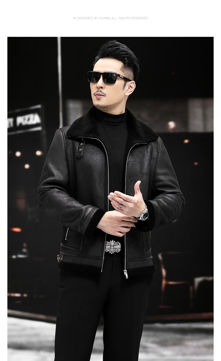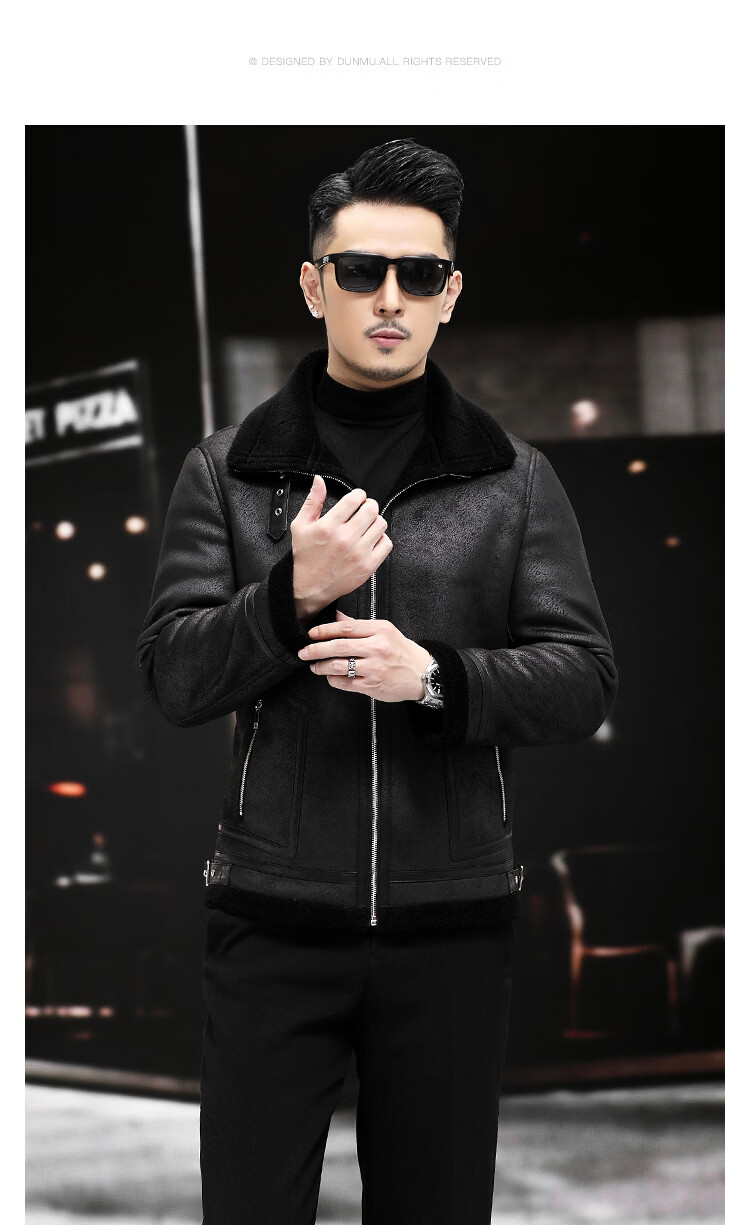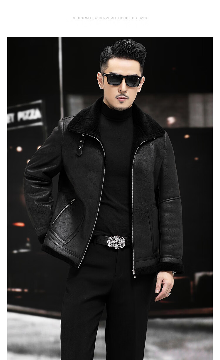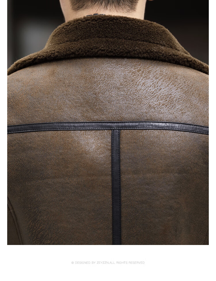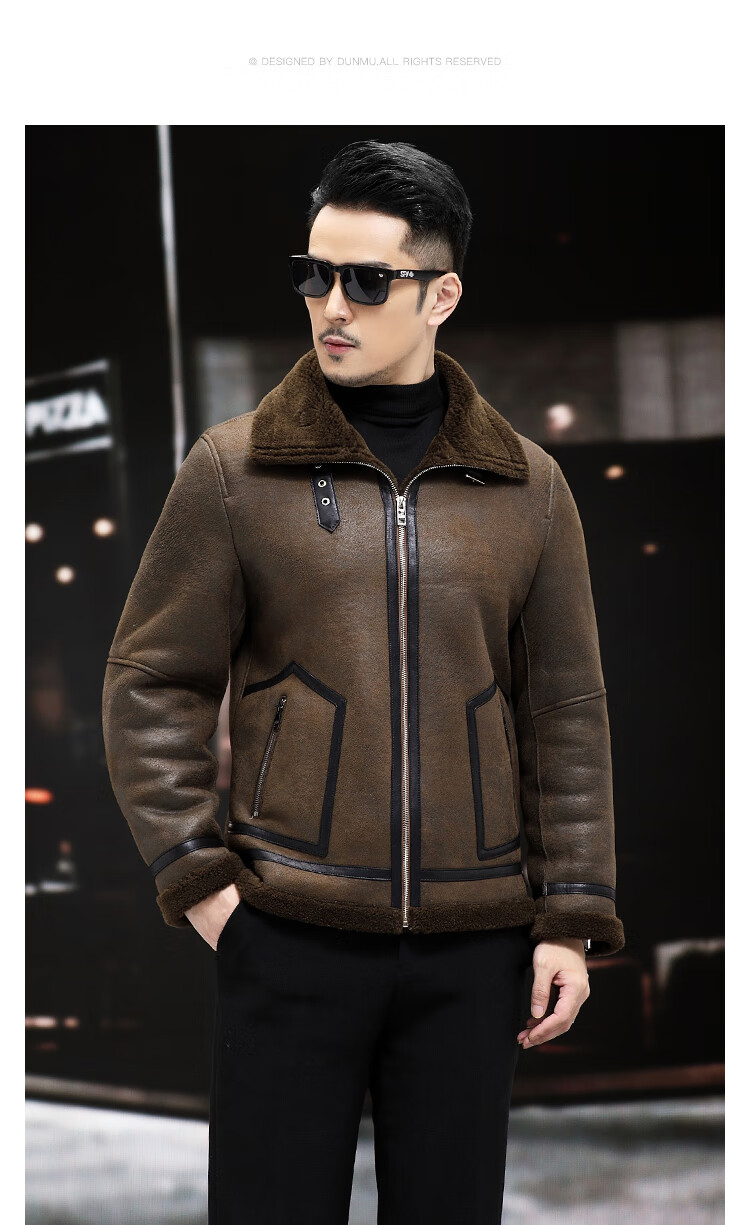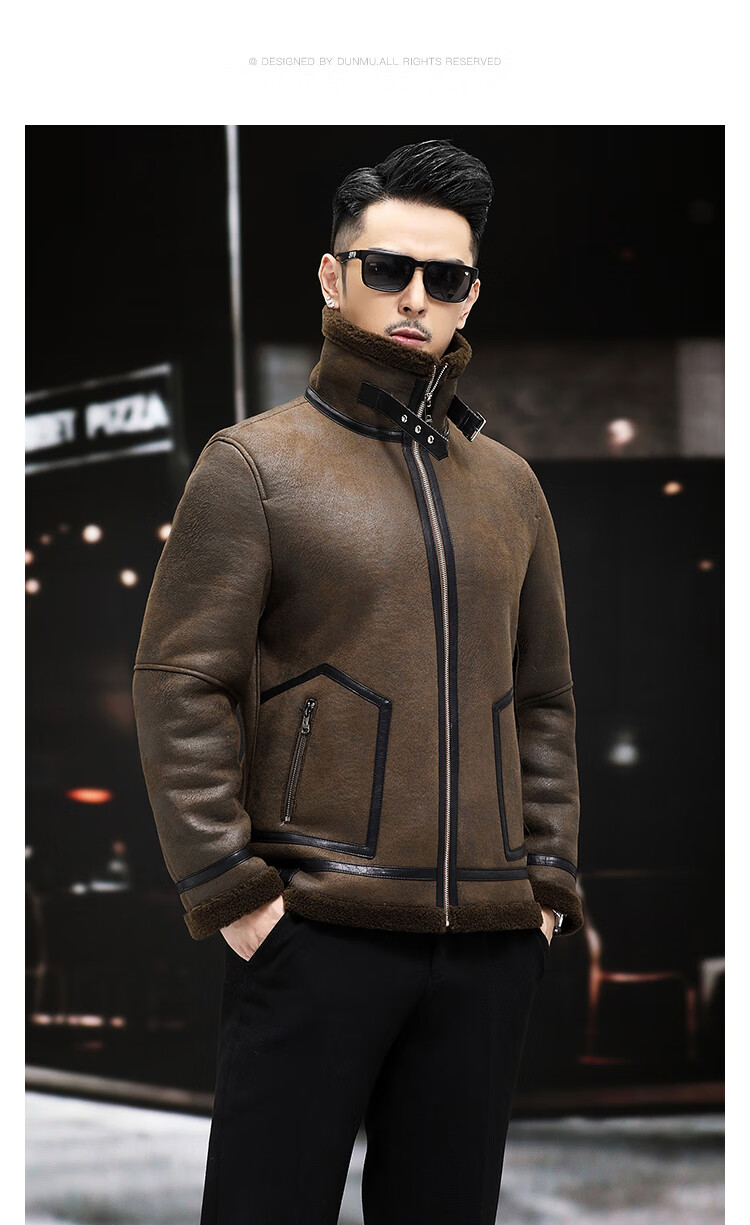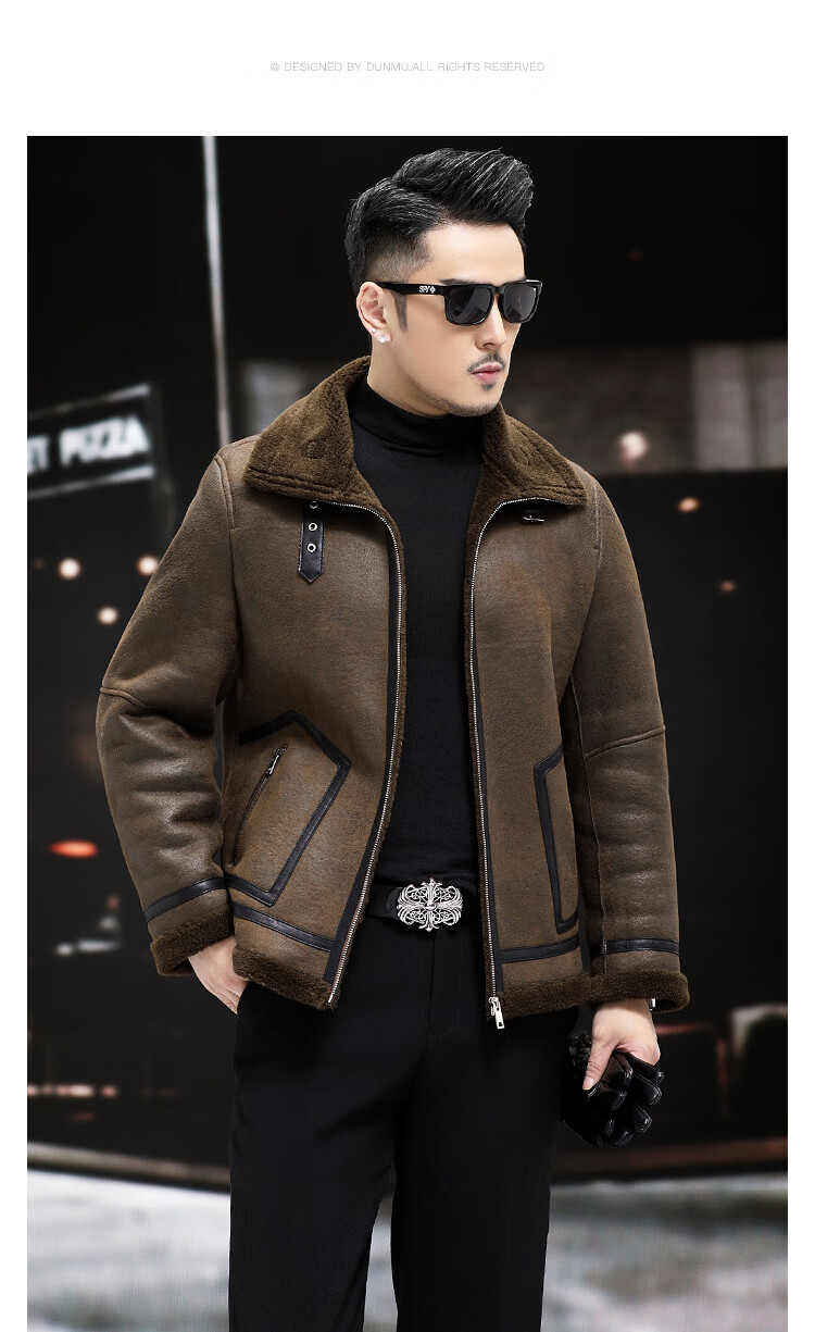 GOLDLION G+金利来羊剪男士毛皮外套新羔羊天鹅绒胶囊羊毛外套冬季皮夹克短 军咖 L 建议体重:110斤-125斤