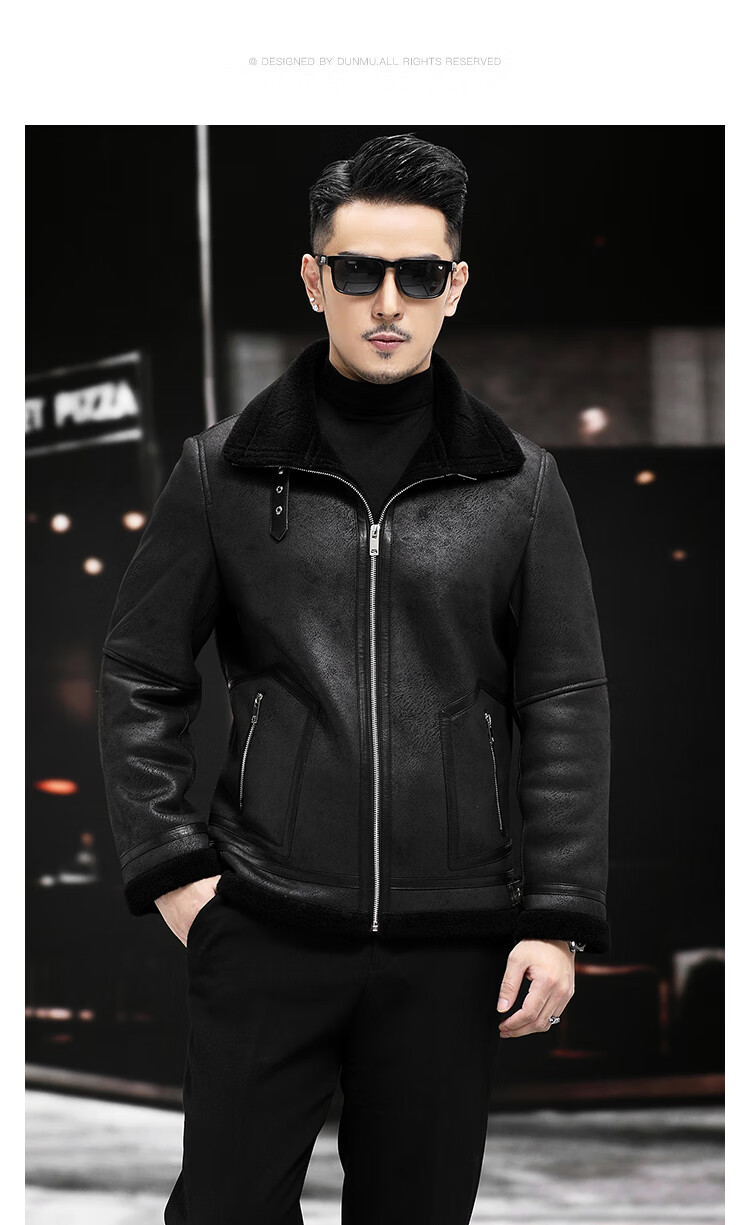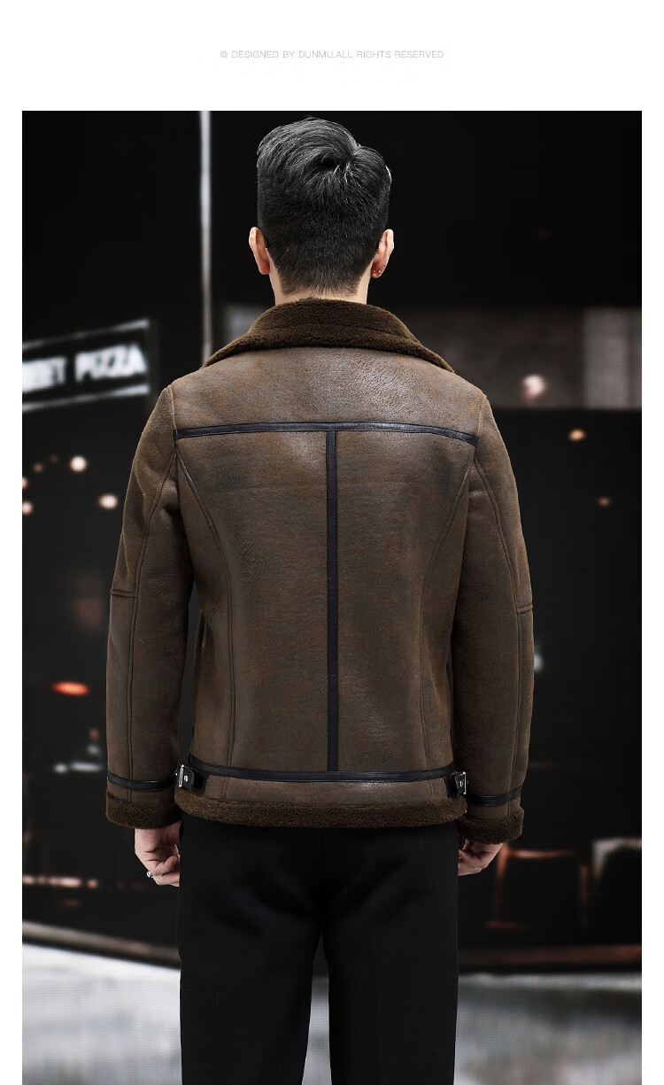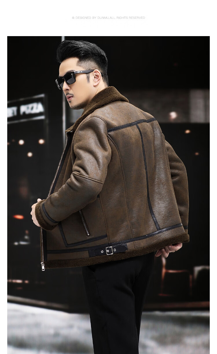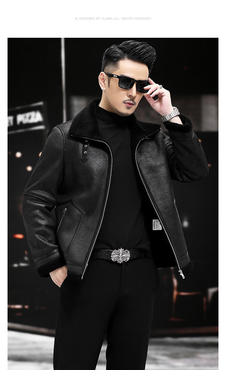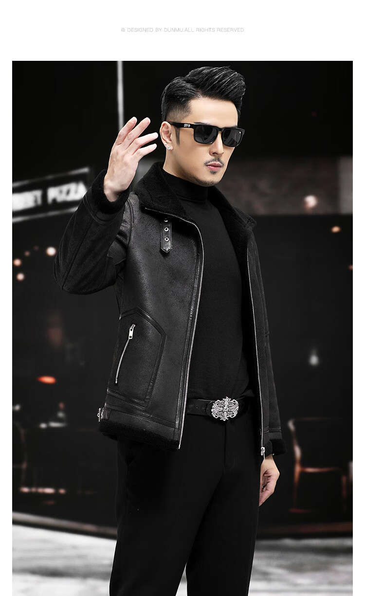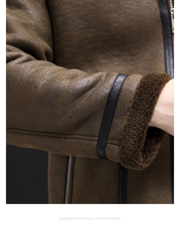 GOLDLION G+金利来羊剪男士毛皮外套新羔羊天鹅绒胶囊羊毛外套冬季皮夹克短 军咖 L 建议体重:110斤-125斤