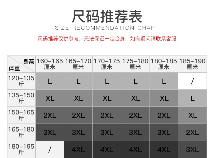 China (cm) 165 / 88-90 170 / 96-98 175 / 108-110 180 / 118-122 185 / 126-130