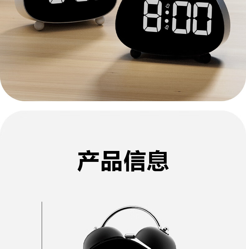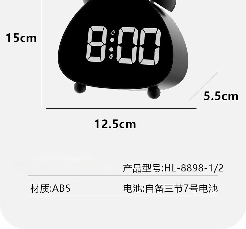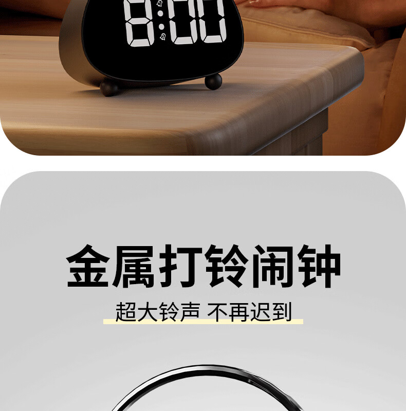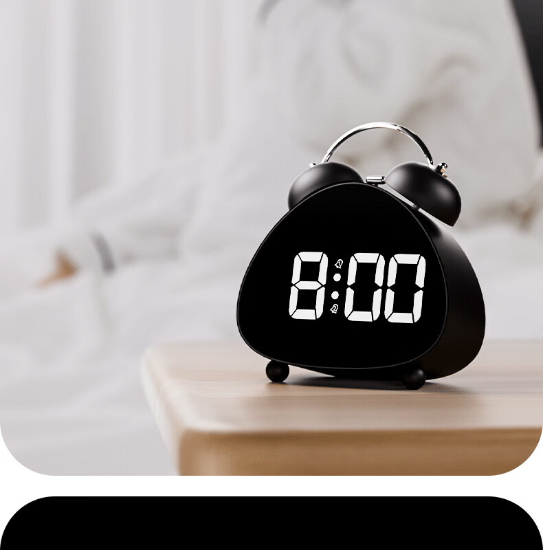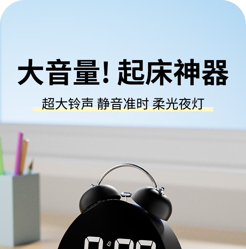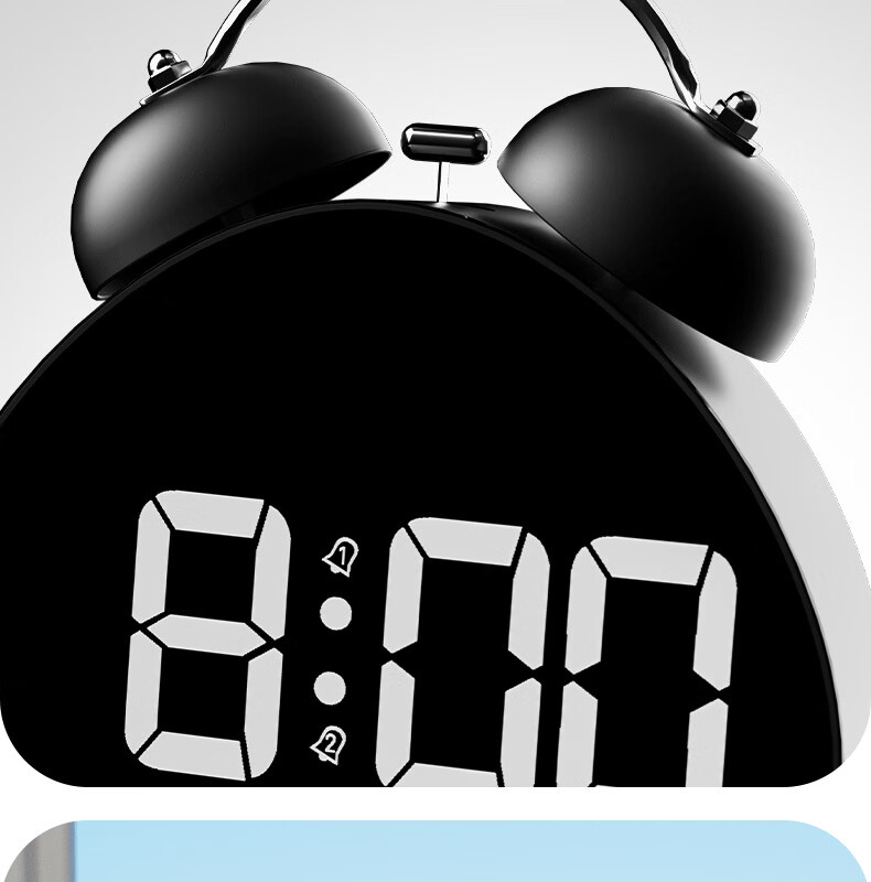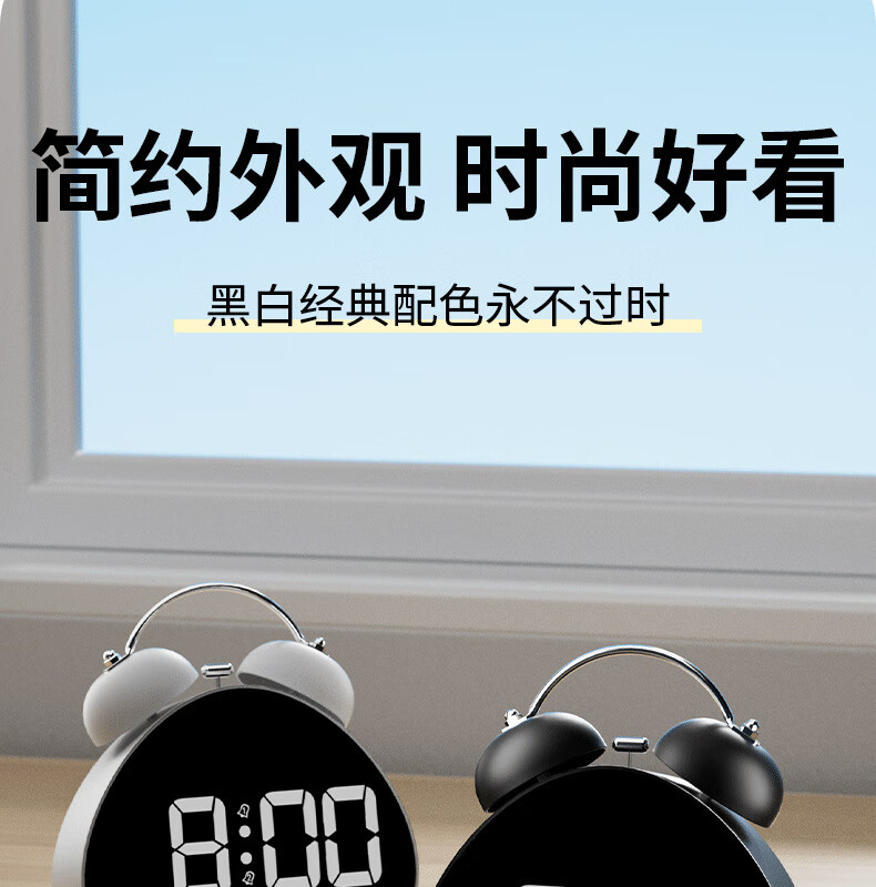 Perfect alarm clock, powerful wake-up tool for students, LED electronic display, mechanical ringing, super loud sound alarm, black