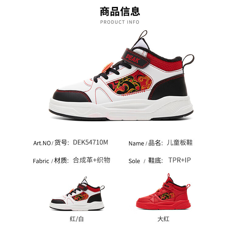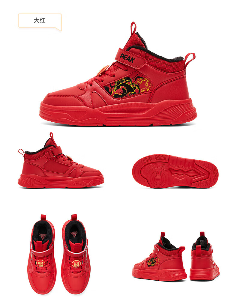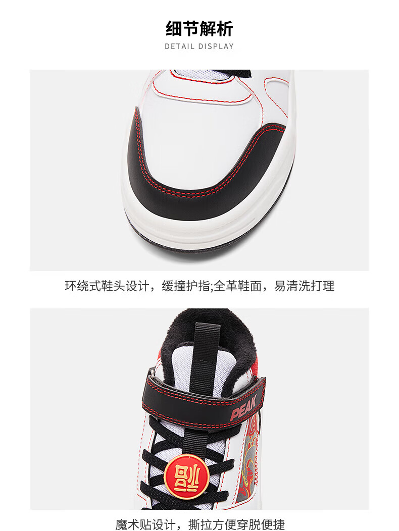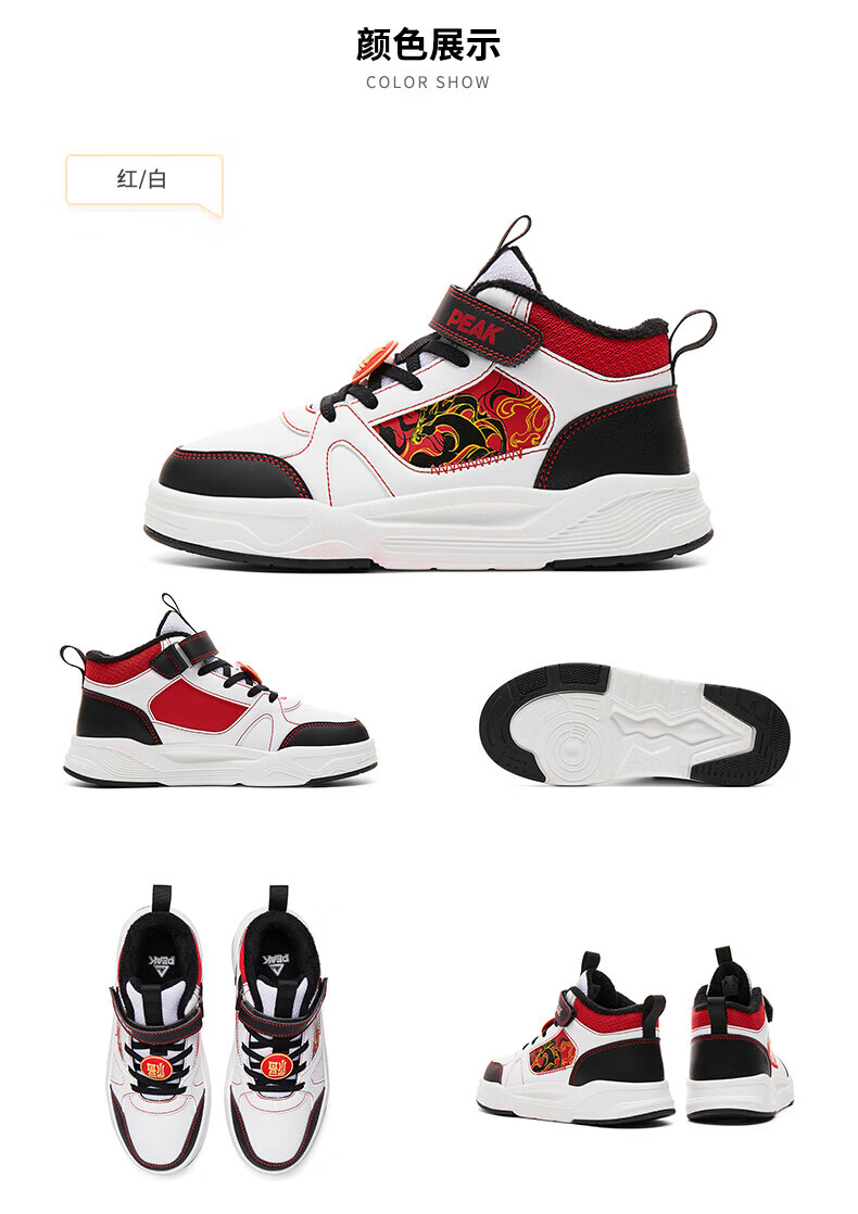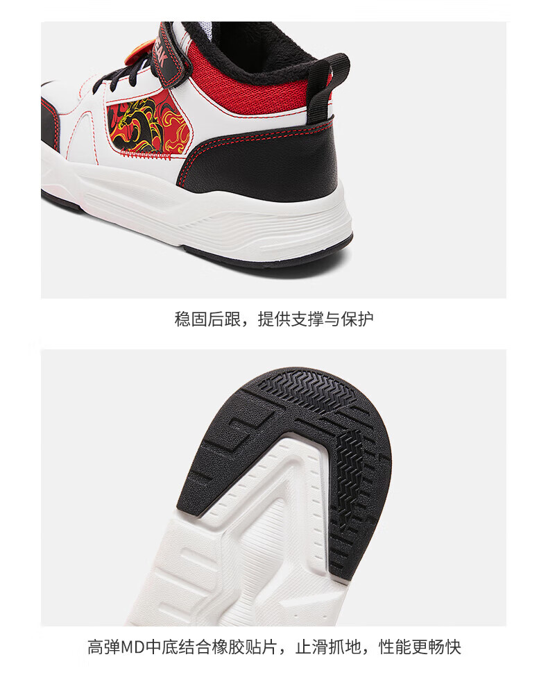 PEAK children's cotton shoes 2025 new Spring Festival plus velvet shoes, medium and large children's sports shoes, outdoor shoes to prevent cold and keep warm, red/white 33